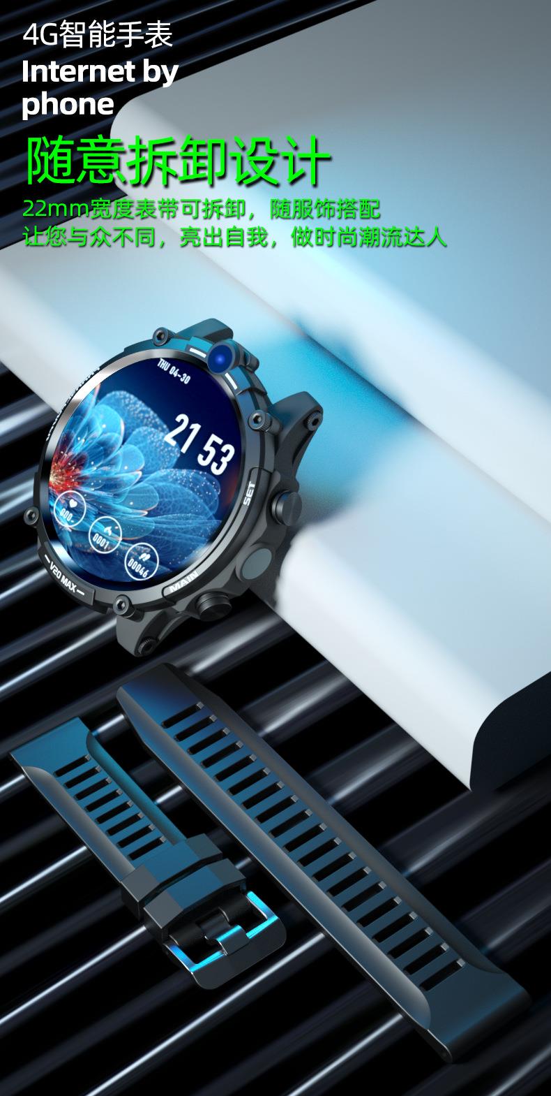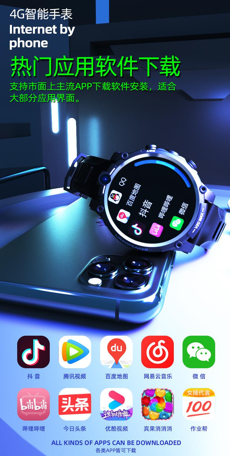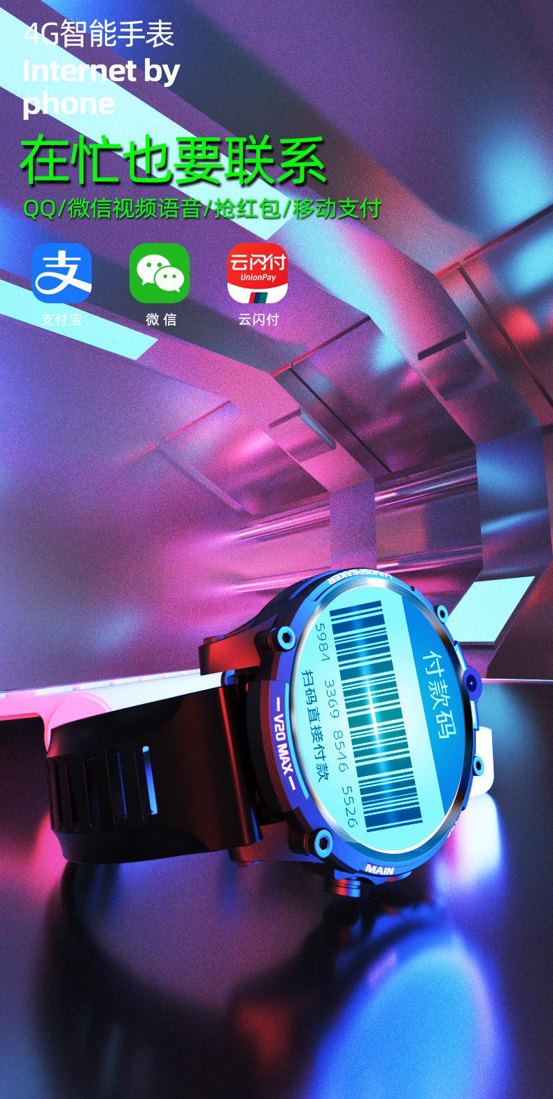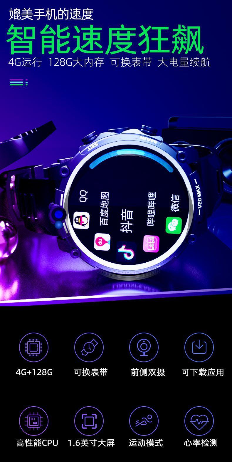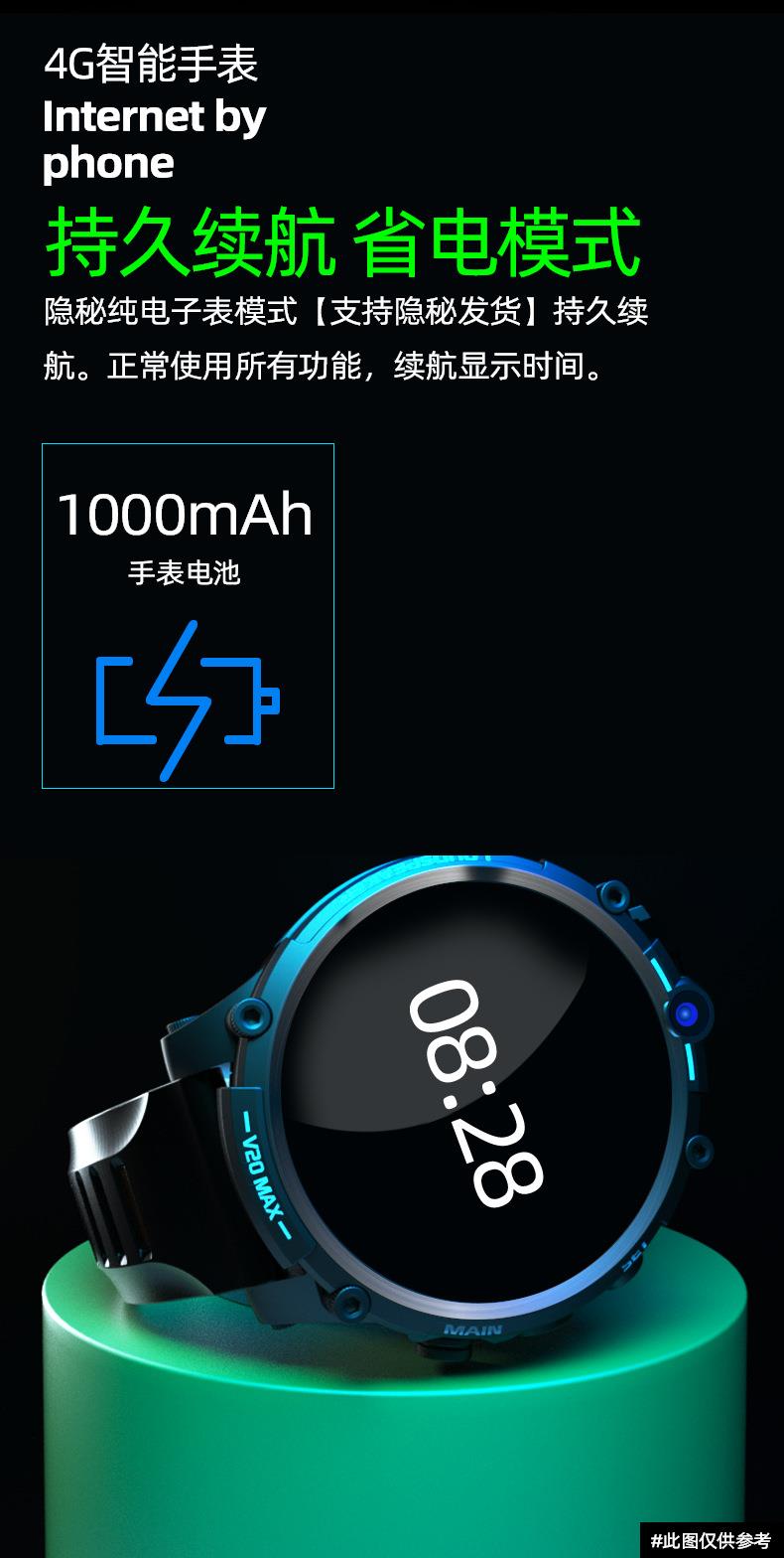 V20成人智能手表4G全网通插卡电话 4G+128G 双摄像头wifi上网定位
