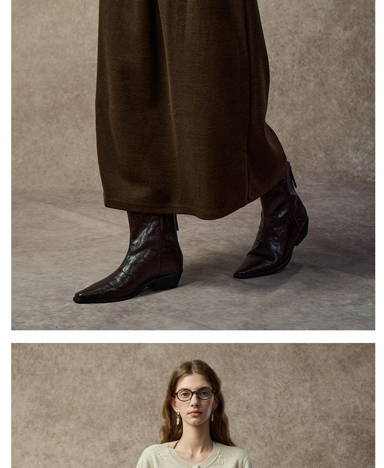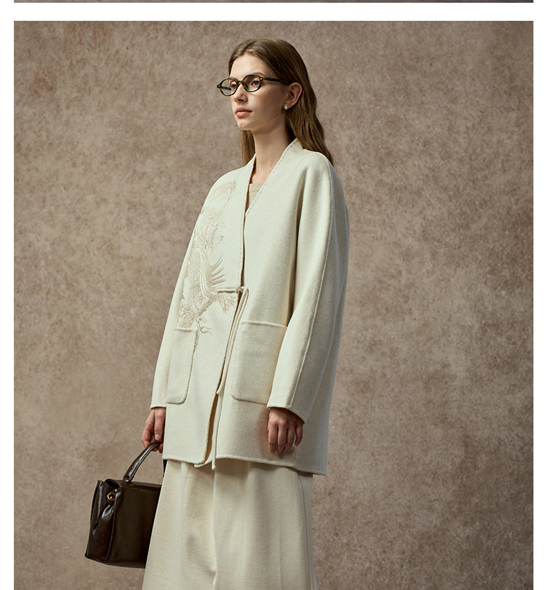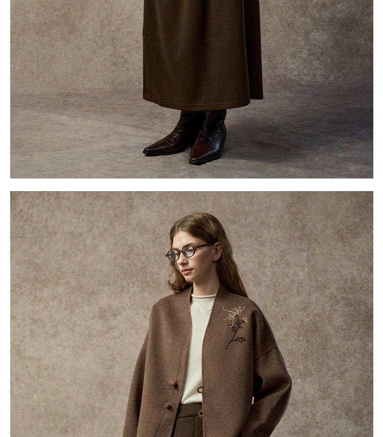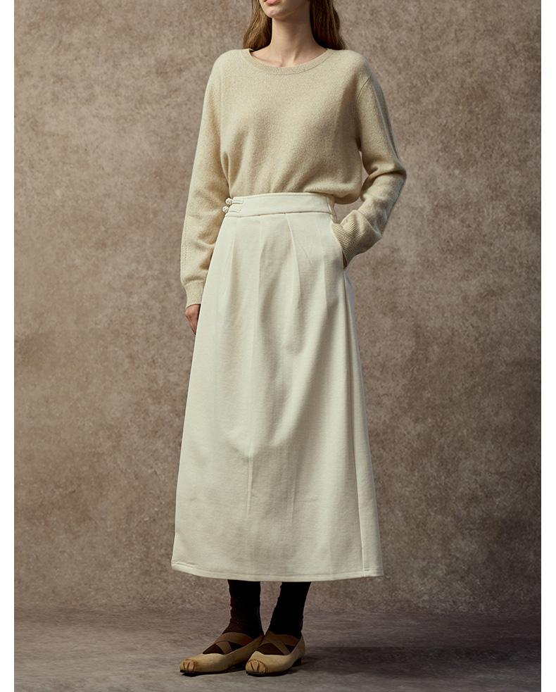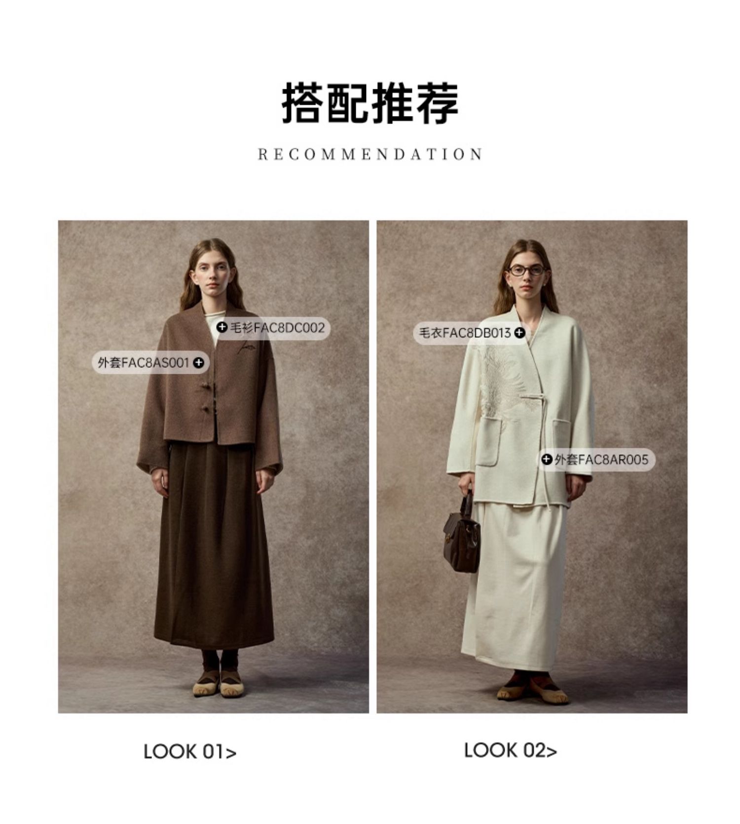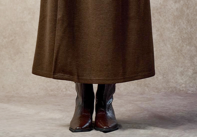 Famecoco新中式改良盘扣显瘦压褶A字毛呢高级感半身裙FAC8HA022