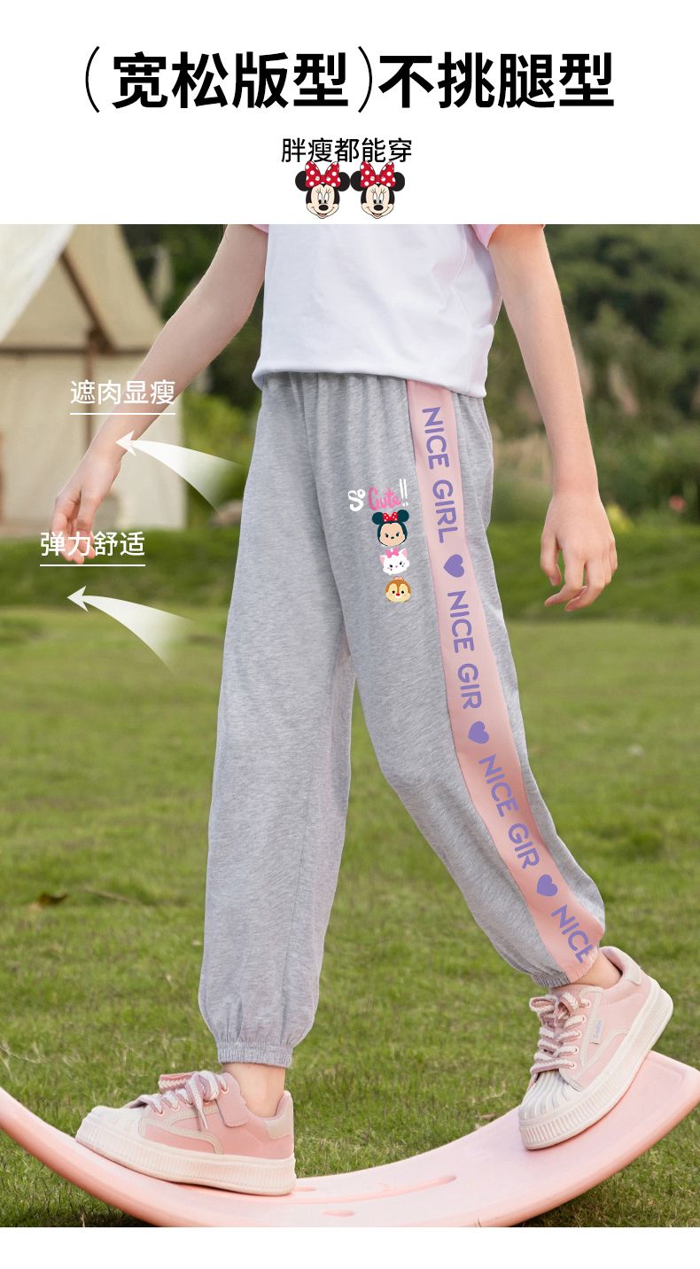 【Disney迪士尼】女童裤子夏季薄款2025新款儿童运动裤夏装休闲裤
