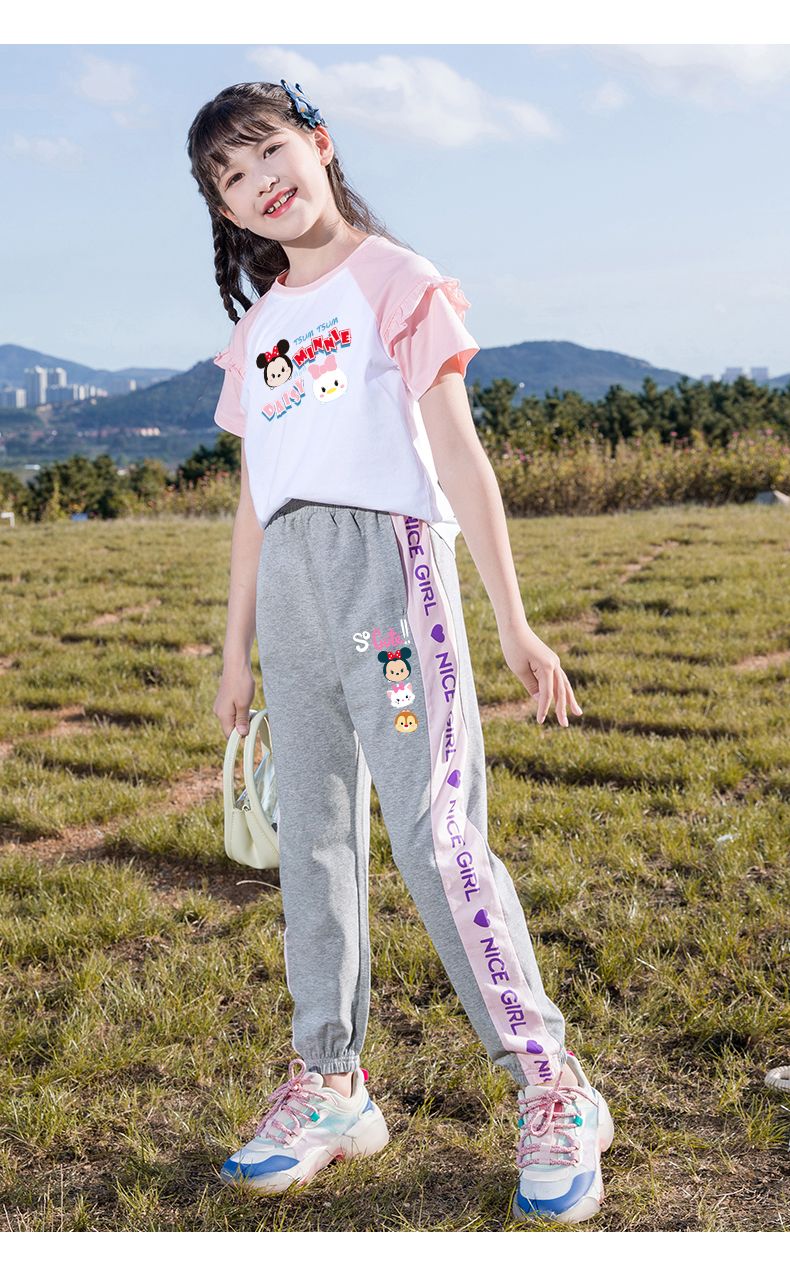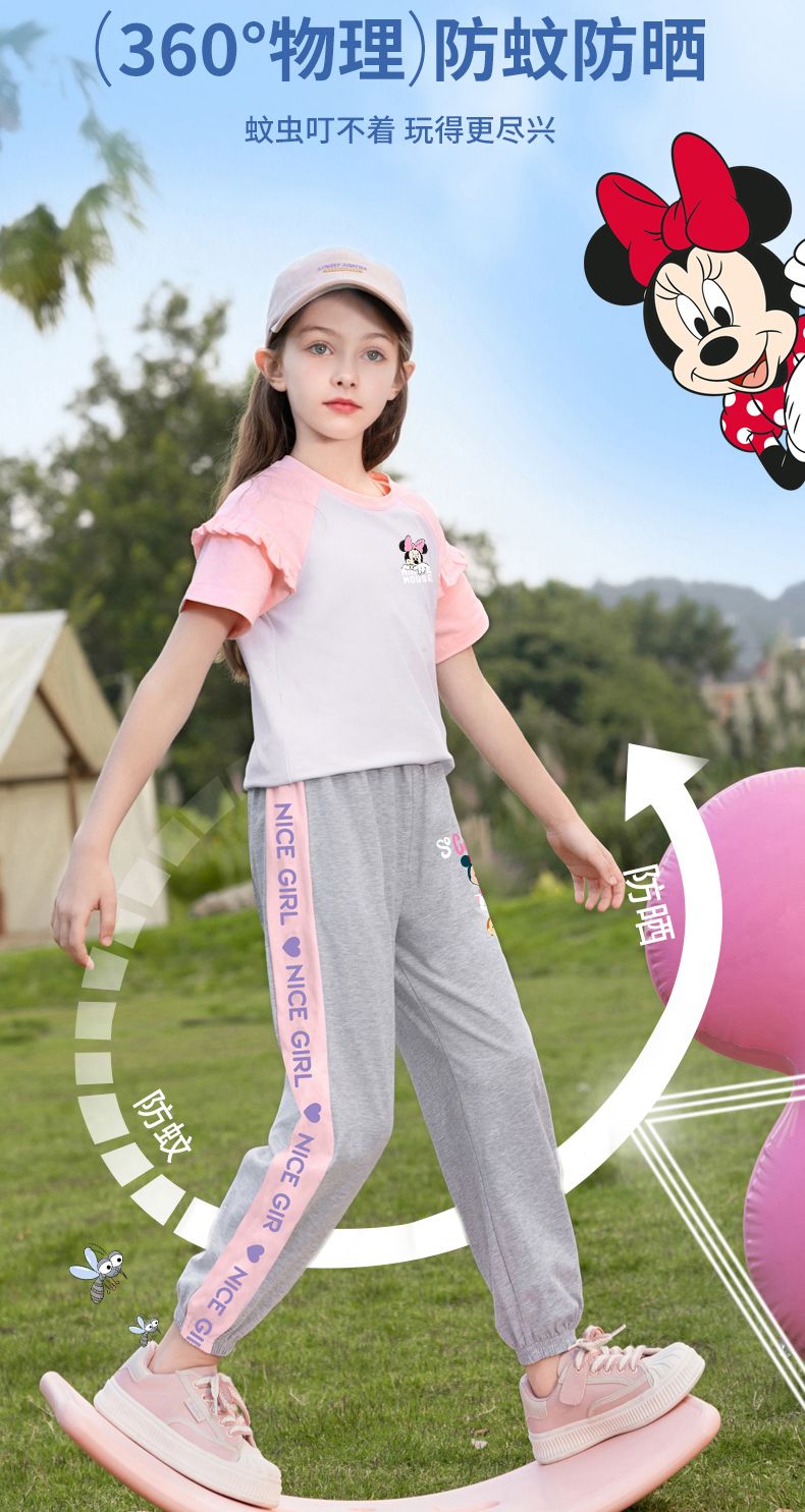 【Disney/迪士尼】女童夏季防蚊梭织裤套装2023新款儿童装短袖长裤