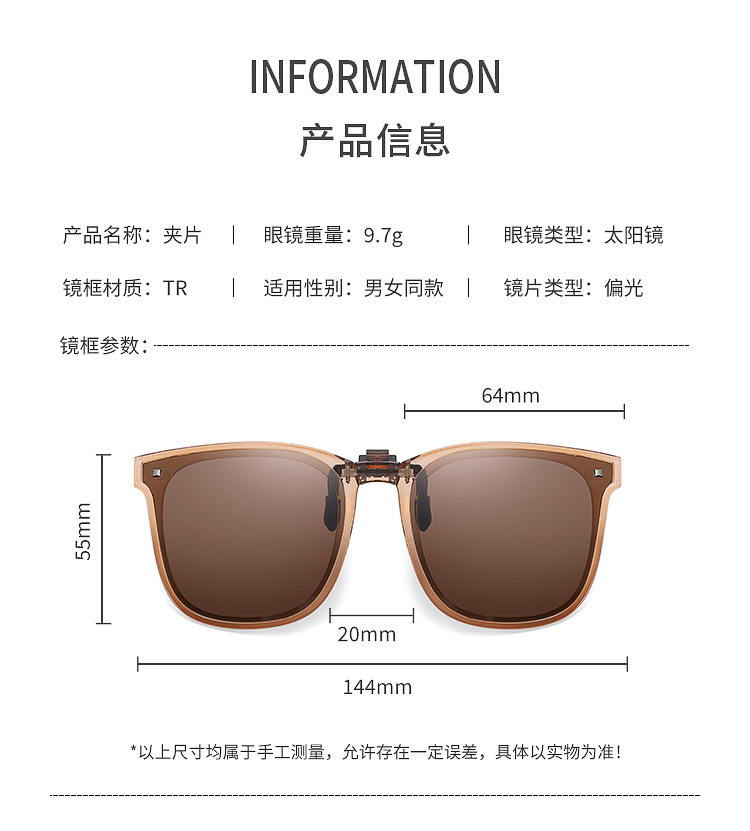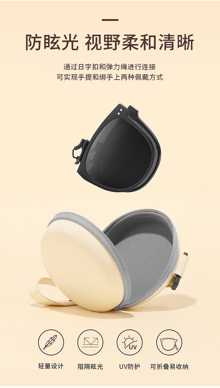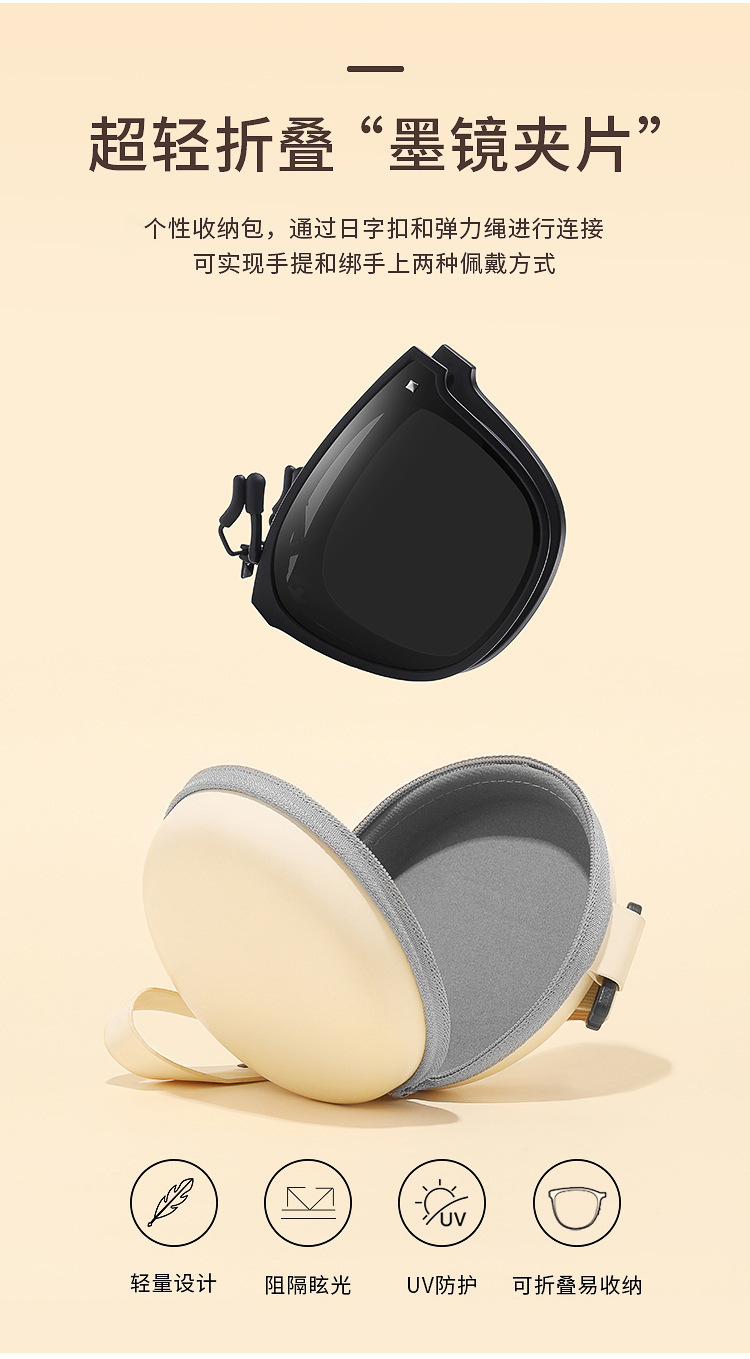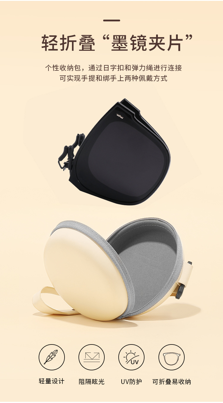 赠送盒子【轻折叠“墨镜夹片”】可折叠偏光墨镜夹片防紫外线时尚轻便折叠太阳镜夹片显瘦折叠夹片,个性收纳包,通过日字扣和弹力绳进行连接 可实现手提和绑手上两种佩戴方式。ry