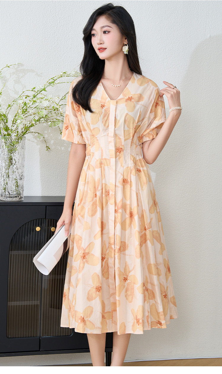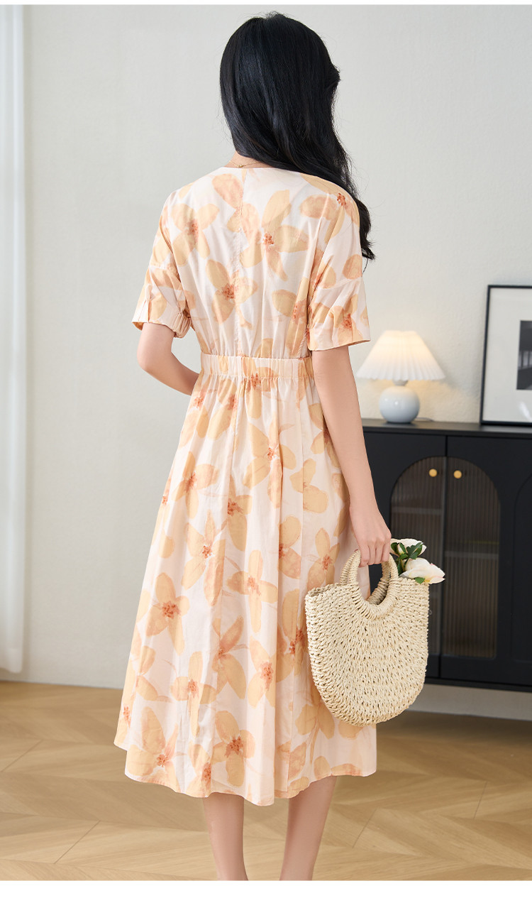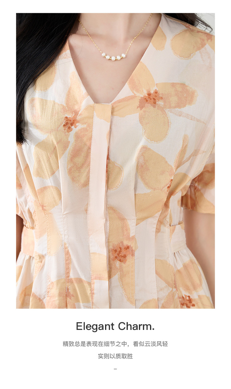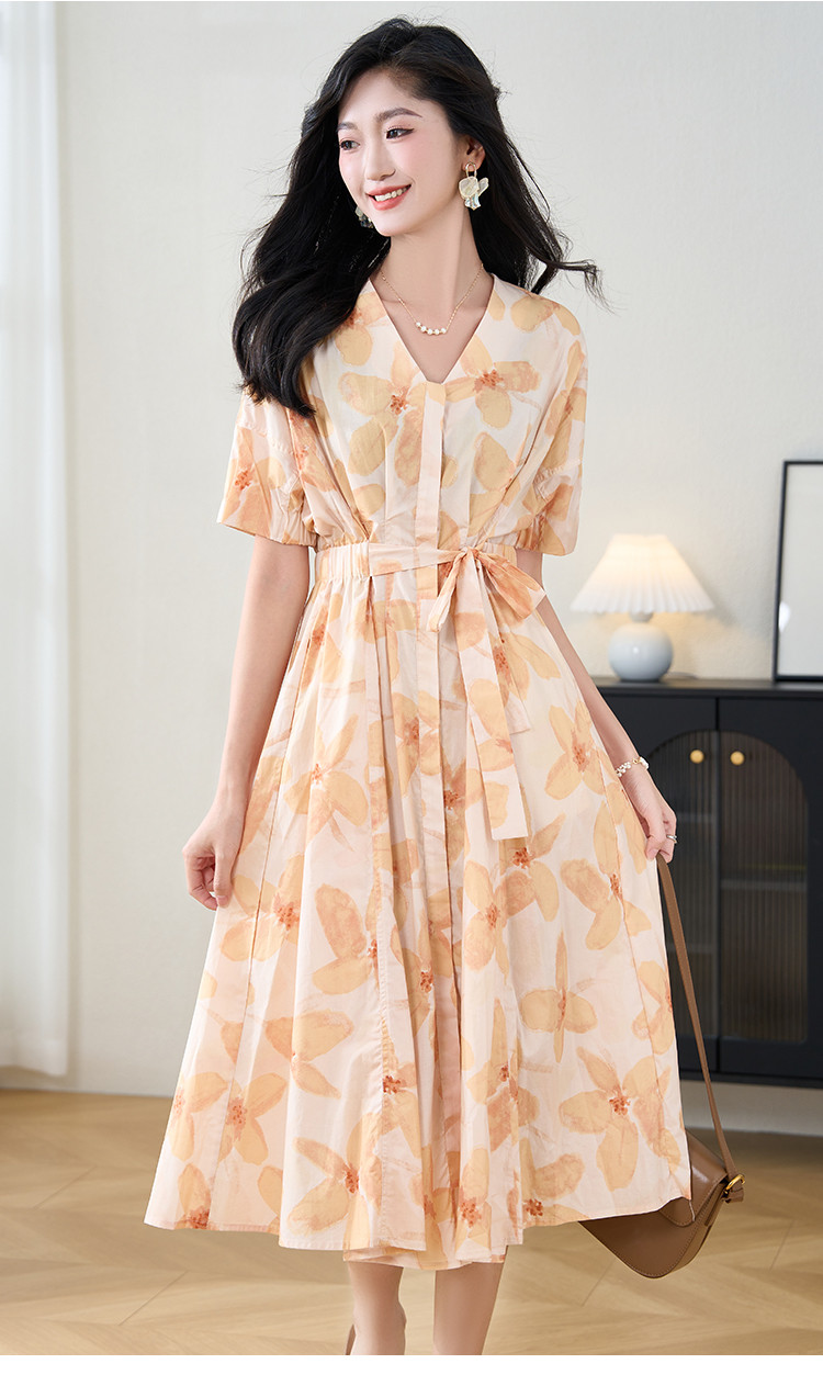 剩S/M/XL 【度假风连衣裙】2024夏季气质短袖印花中长系带a字裙2317