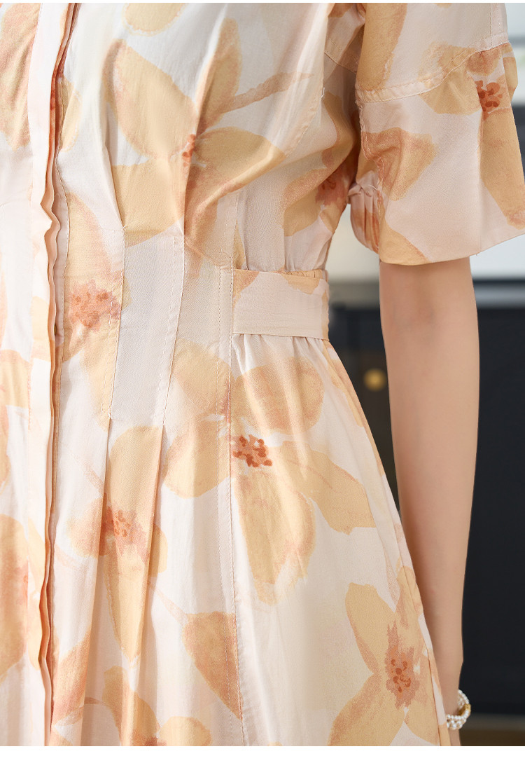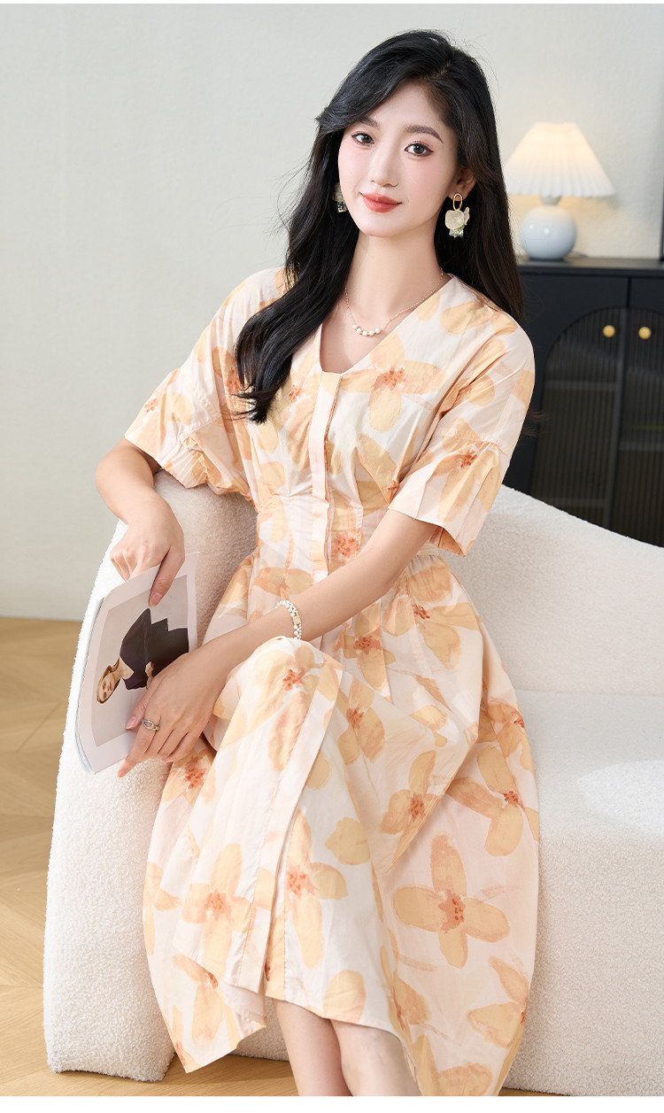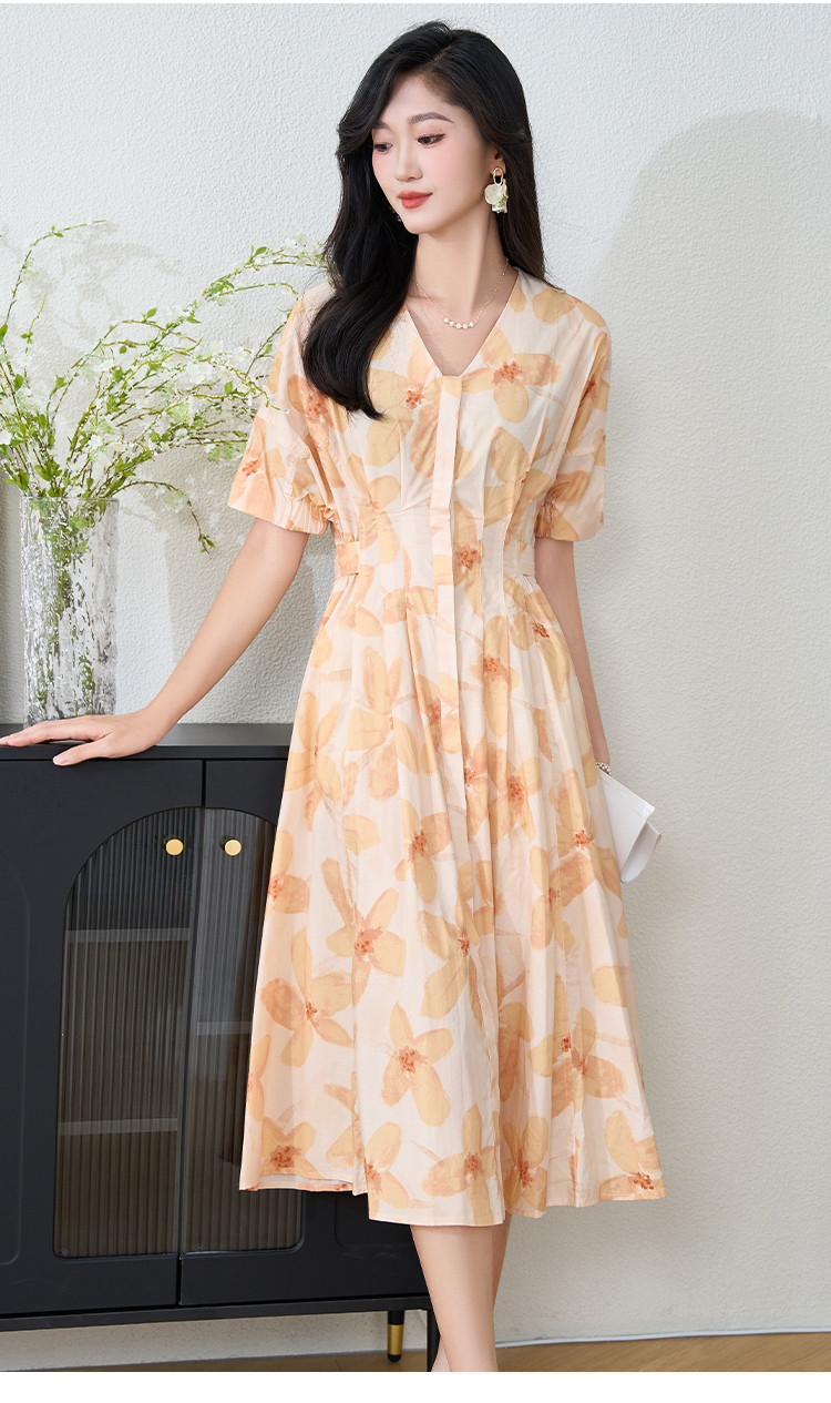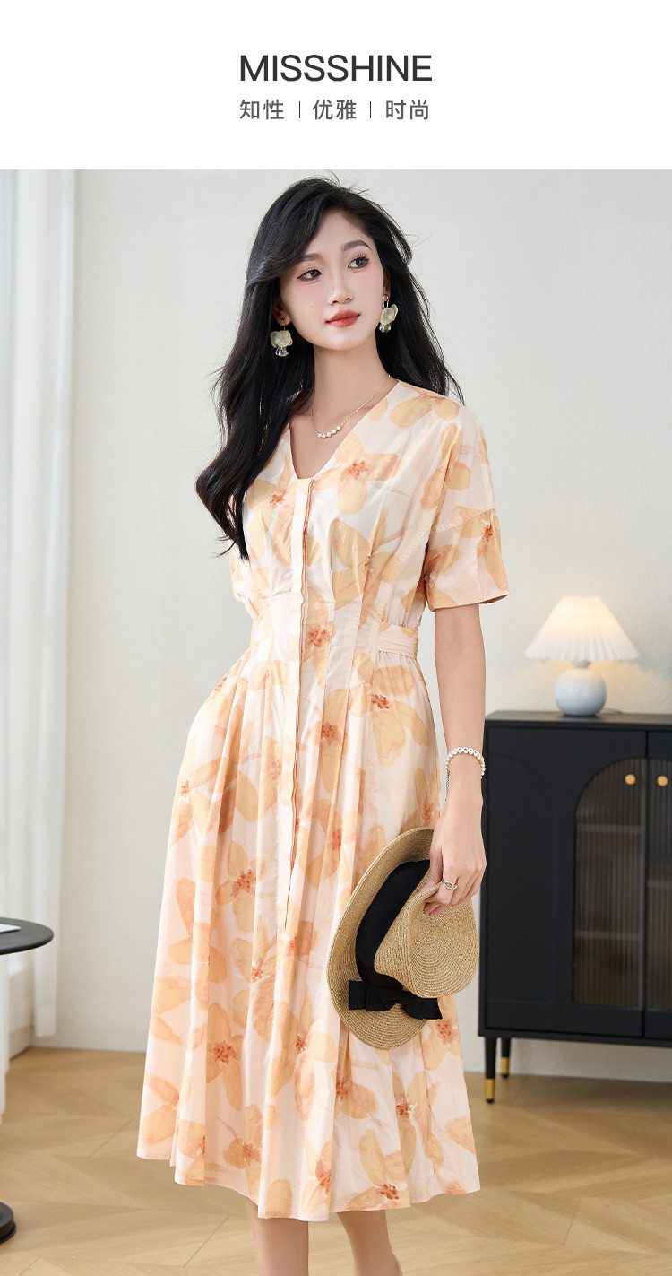 剩S/M/XL 【度假风连衣裙】2024夏季气质短袖印花中长系带a字裙2317