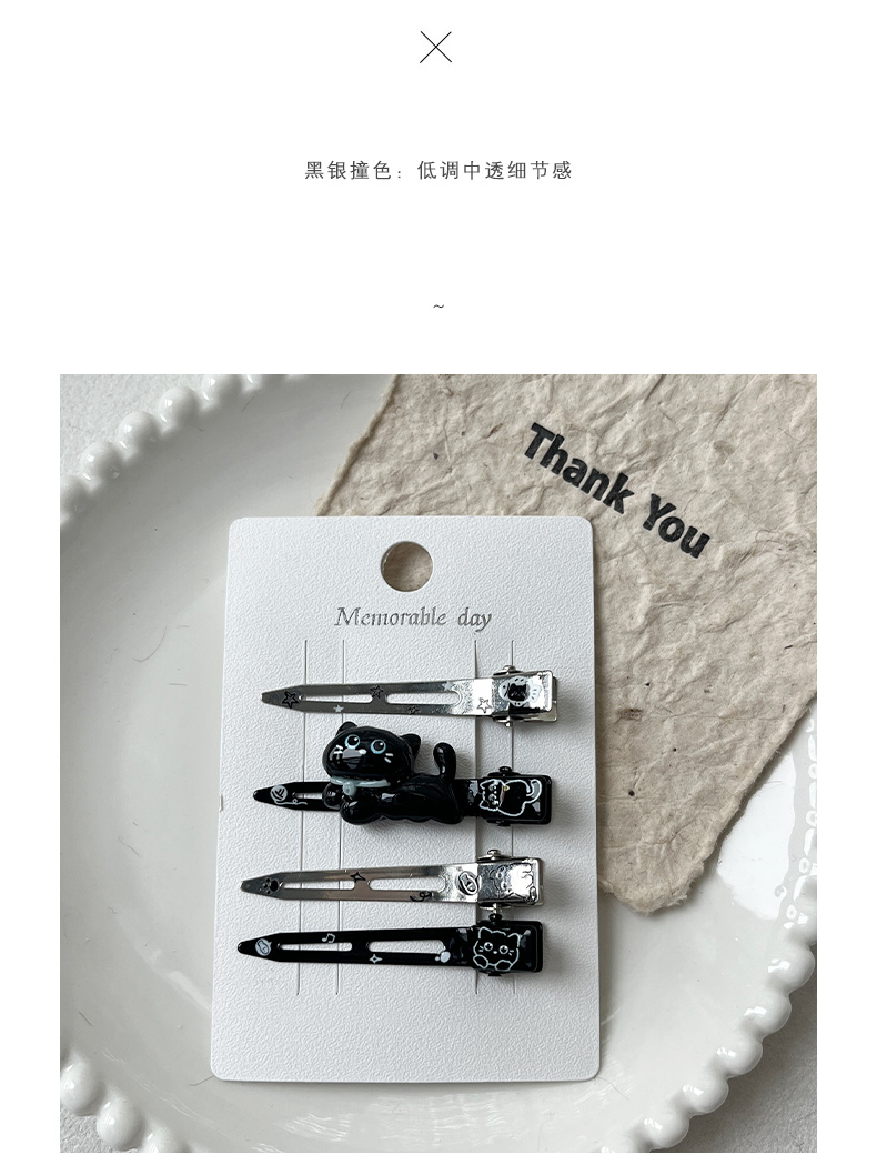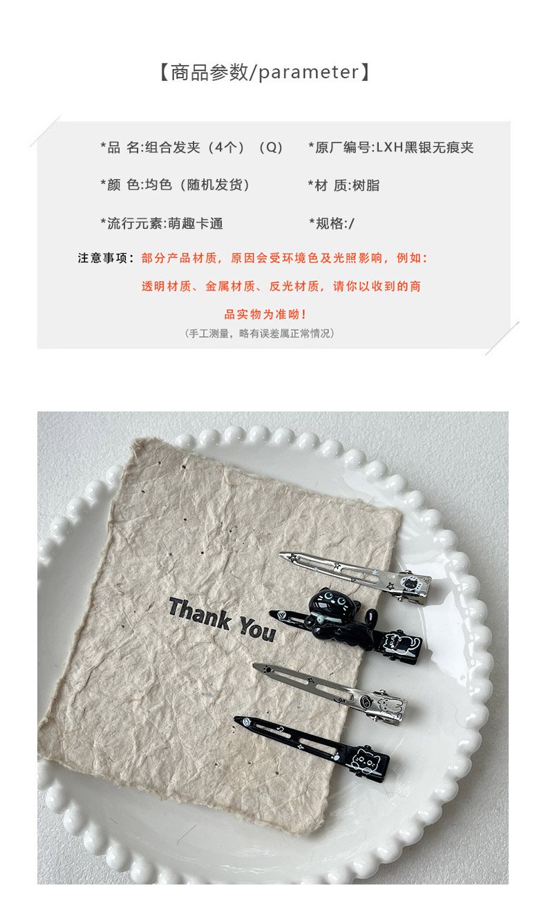 黑银无痕夹组合发夹(4个)-纪念日百货门店同款167997543