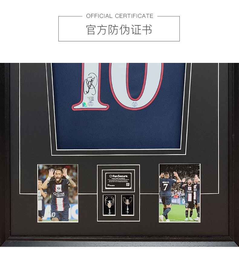 收藏系列 内马尔 大巴黎队10号 亲笔签名球衣