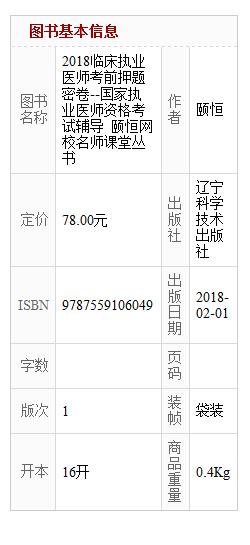 2018临床执业医师考前押题密卷--国家执业医师资格考试辅导 颐恒网校名师课堂丛书