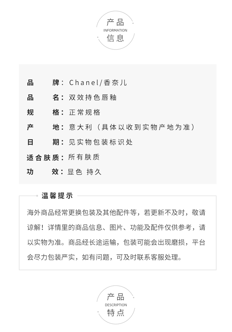 CHANEL 香奈儿双效持色唇釉 #176#154#182#69#40#不易掉色口红【CDF】