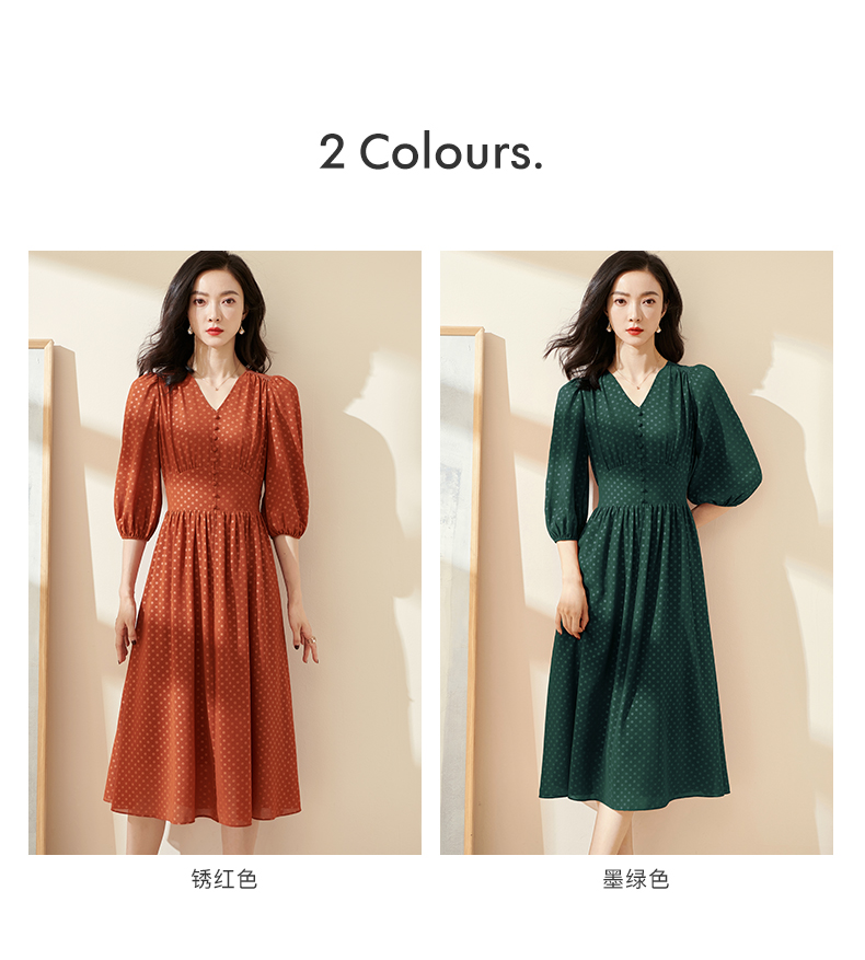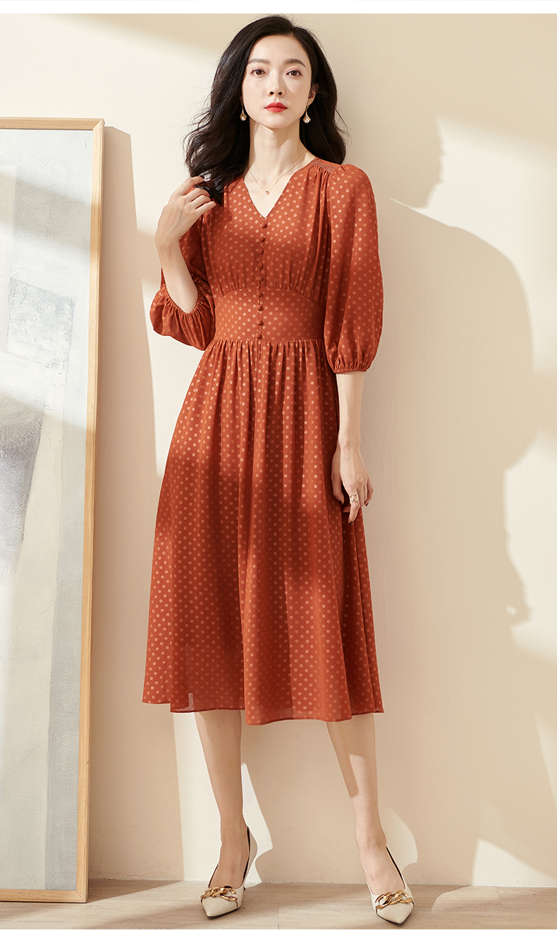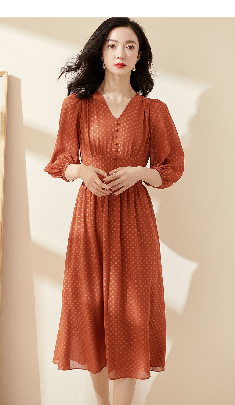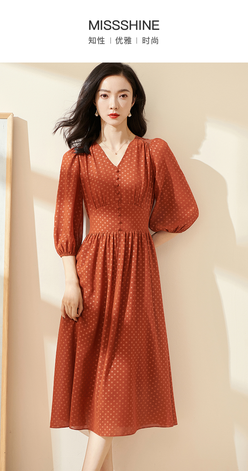 剩XL 米思阳2024春季新款气质淑女波点裙高腰显瘦泡泡袖V领连衣裙0244