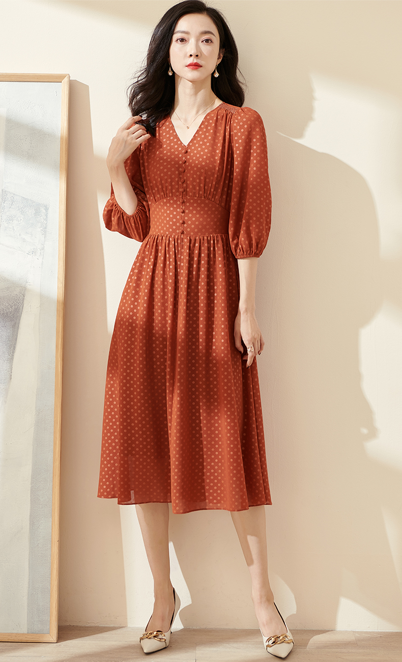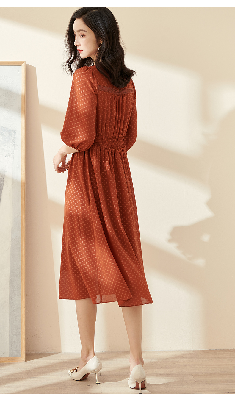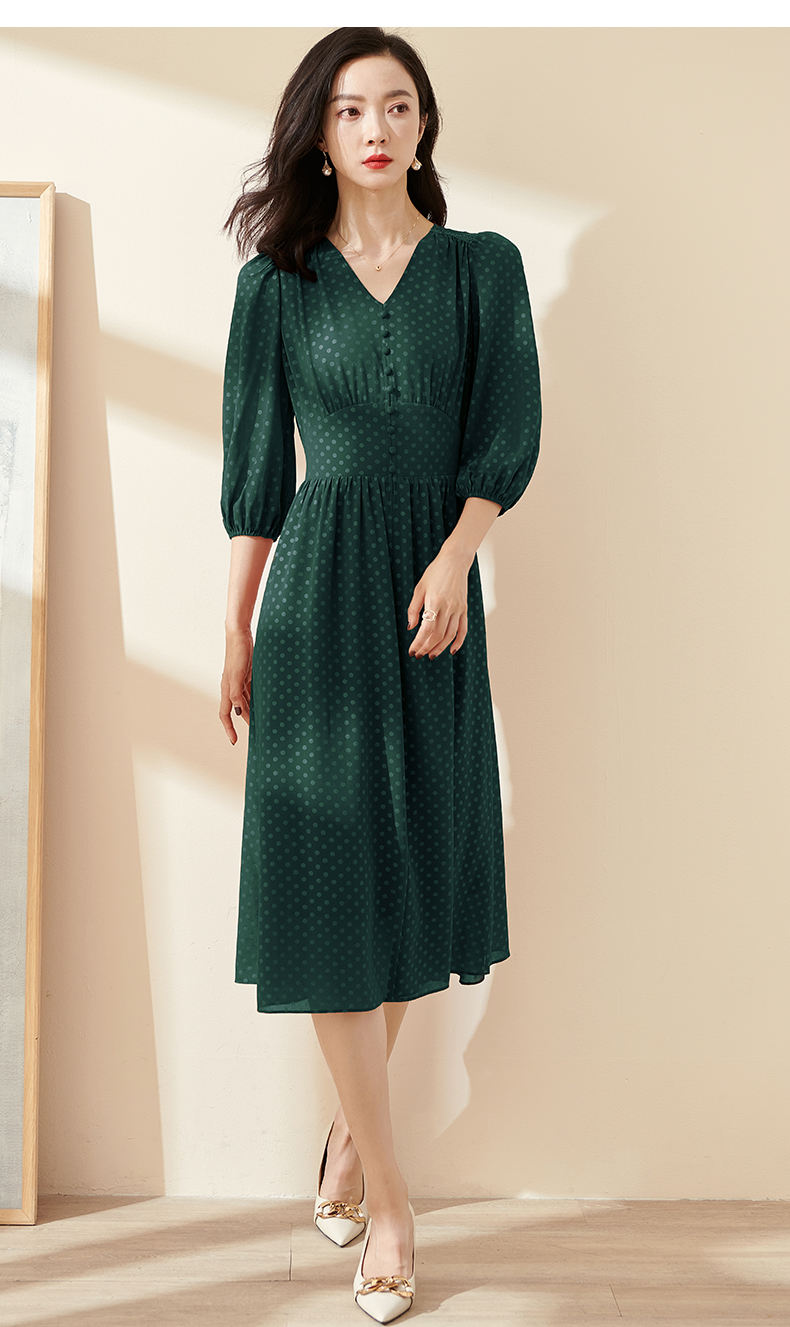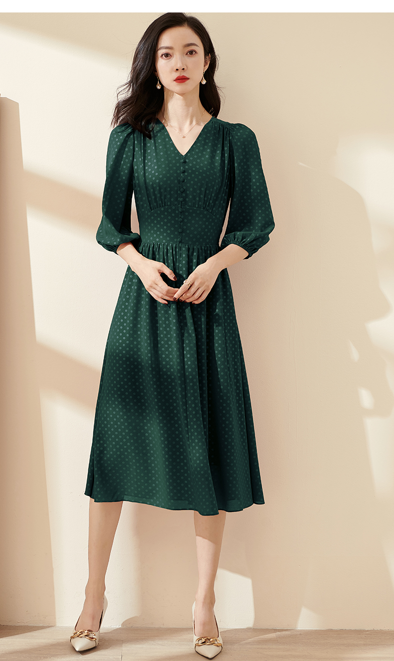 剩XL 米思阳2024春季新款气质淑女波点裙高腰显瘦泡泡袖V领连衣裙0244