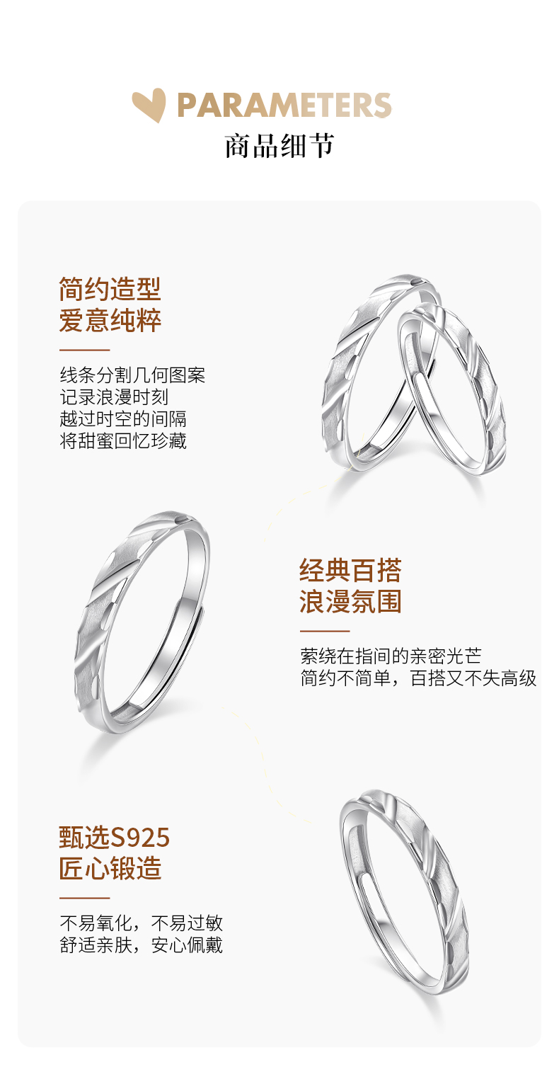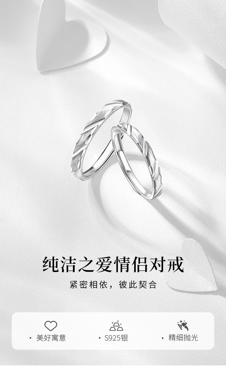 卡蒂罗KADER 纯洁之爱情侣对戒 简约大方情侣对戒男女友钟爱久久小众素圈开口可调节戒小众设计纯粹炙热的爱意