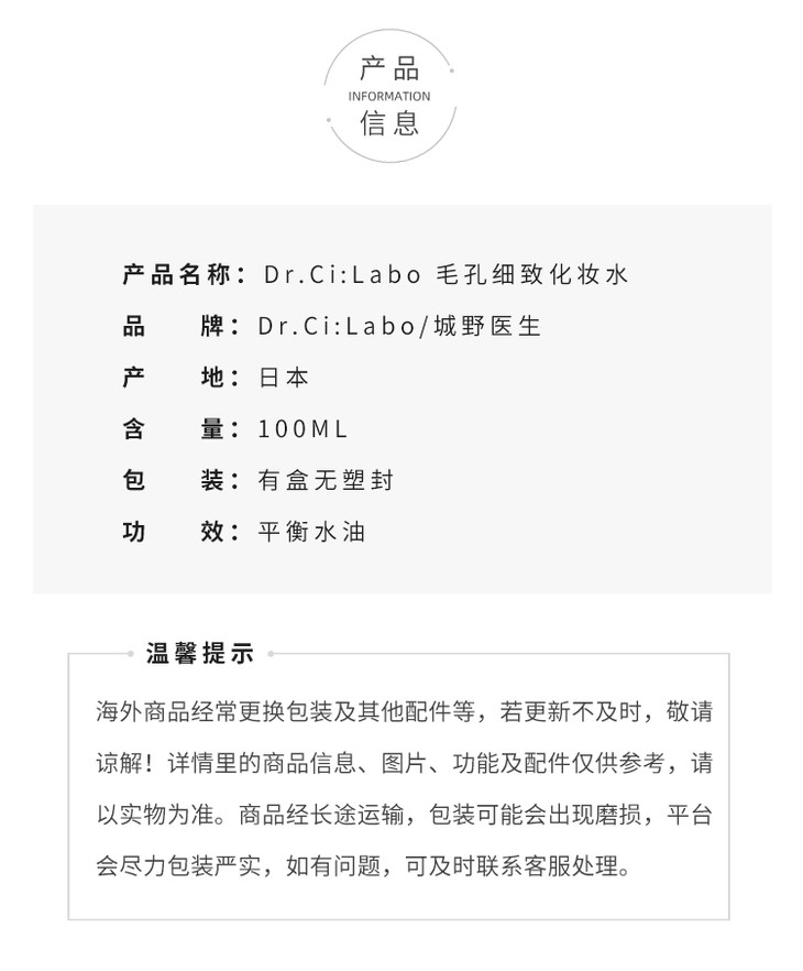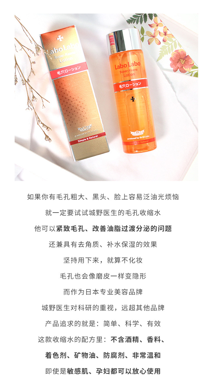城野医生毛孔收敛水 爽肤水100ml 细致毛孔补水保湿