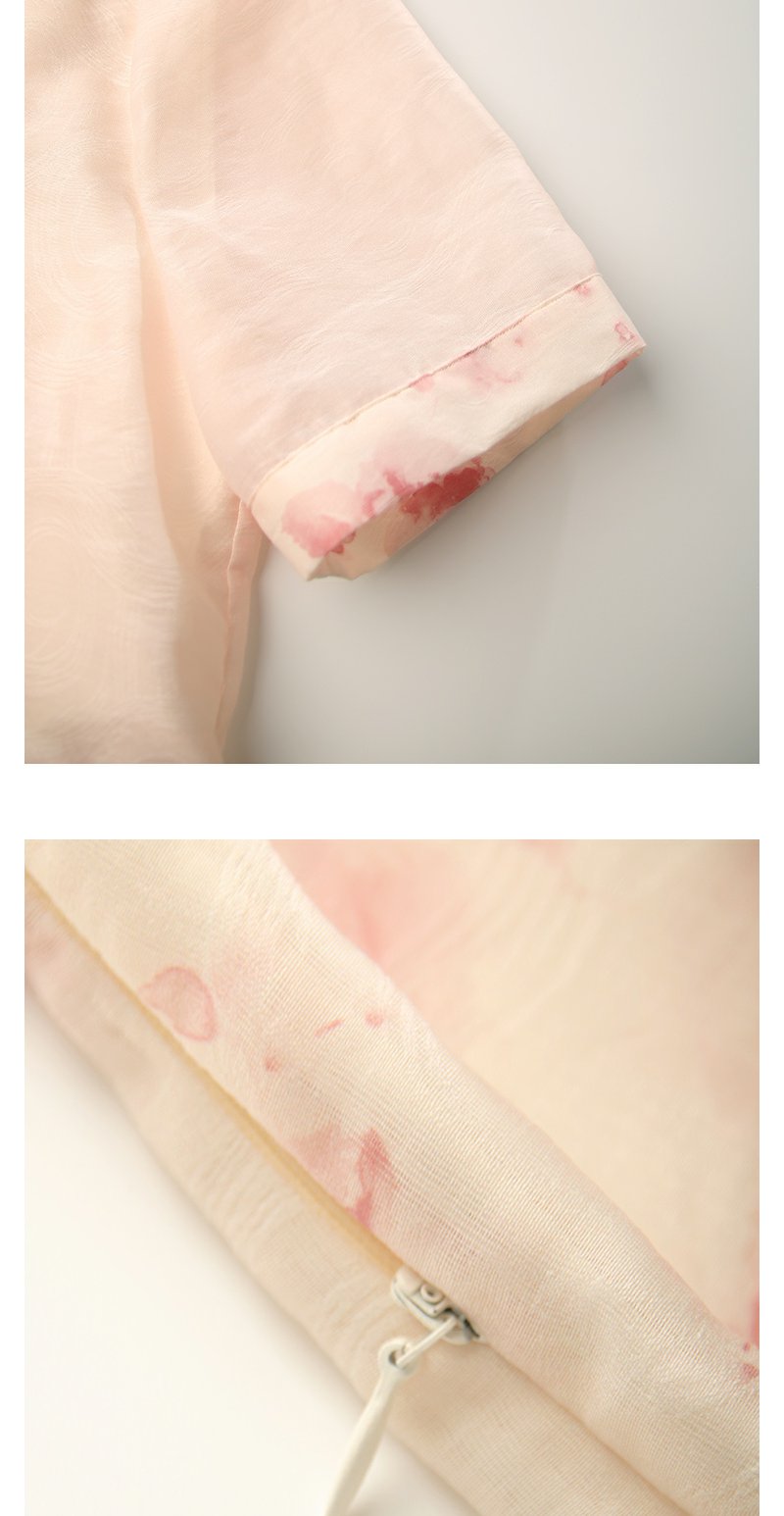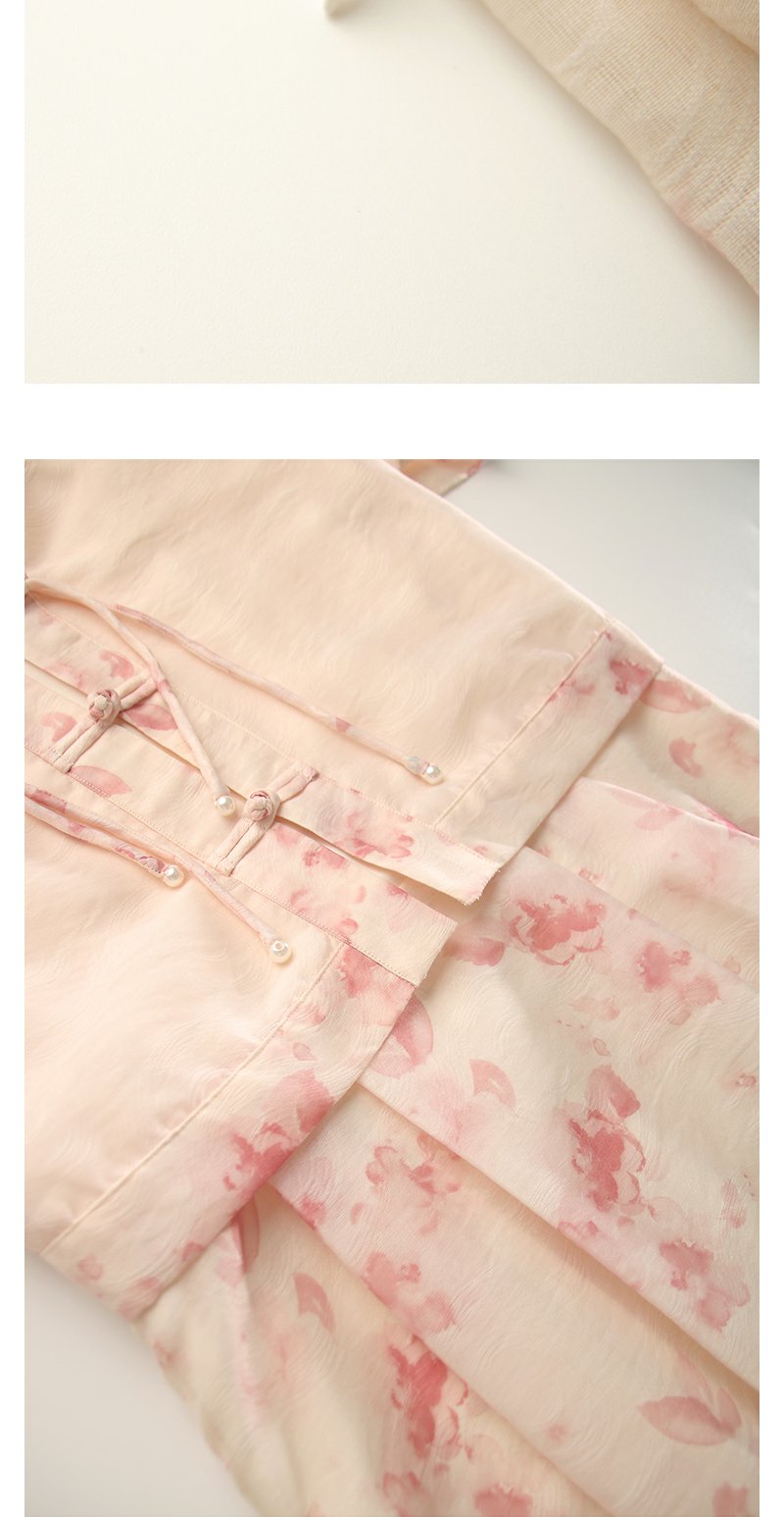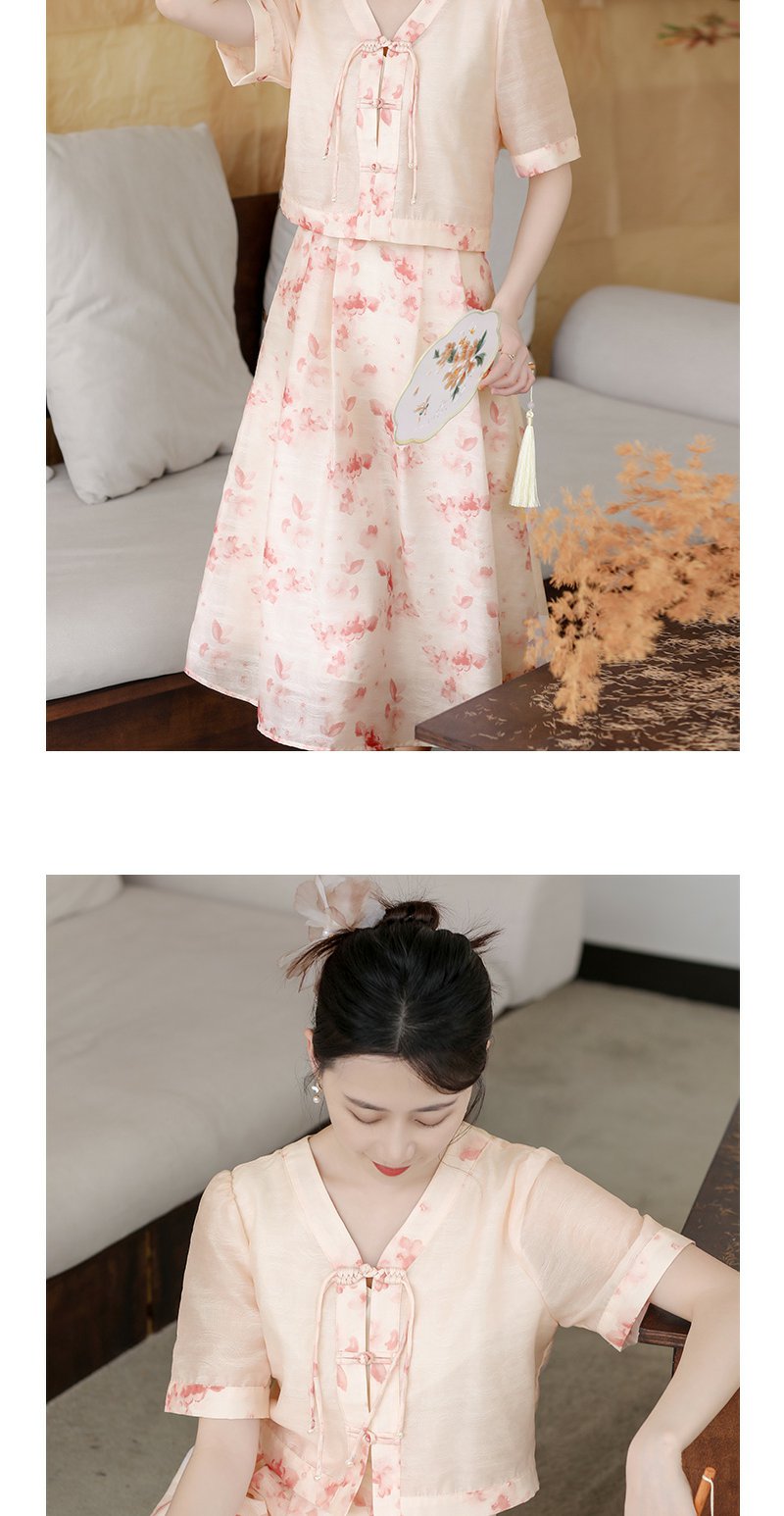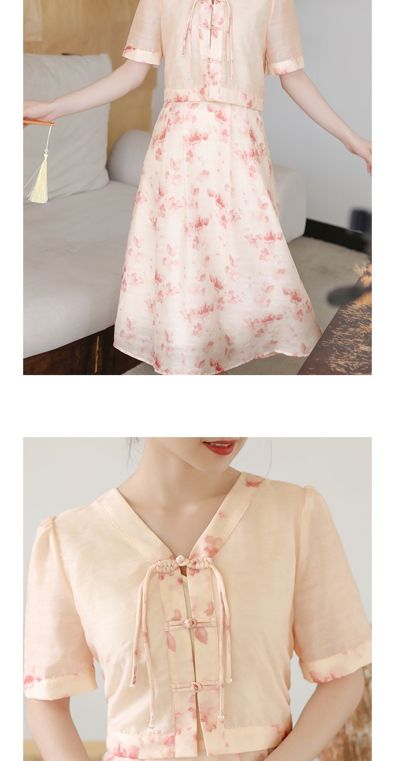 未风粉色显瘦V领连衣裙女夏2025新款夏季高腰新中式国风短袖裙子