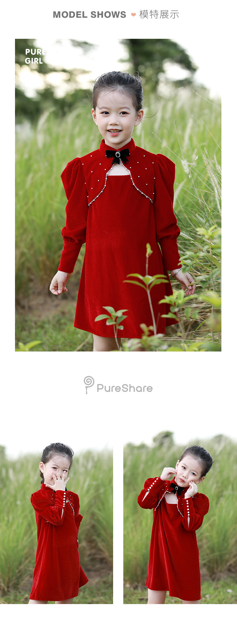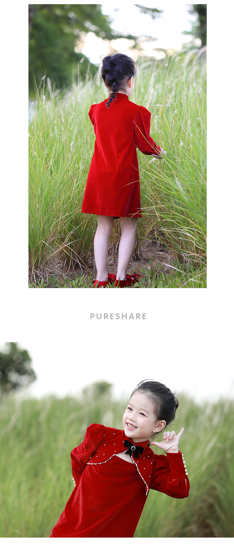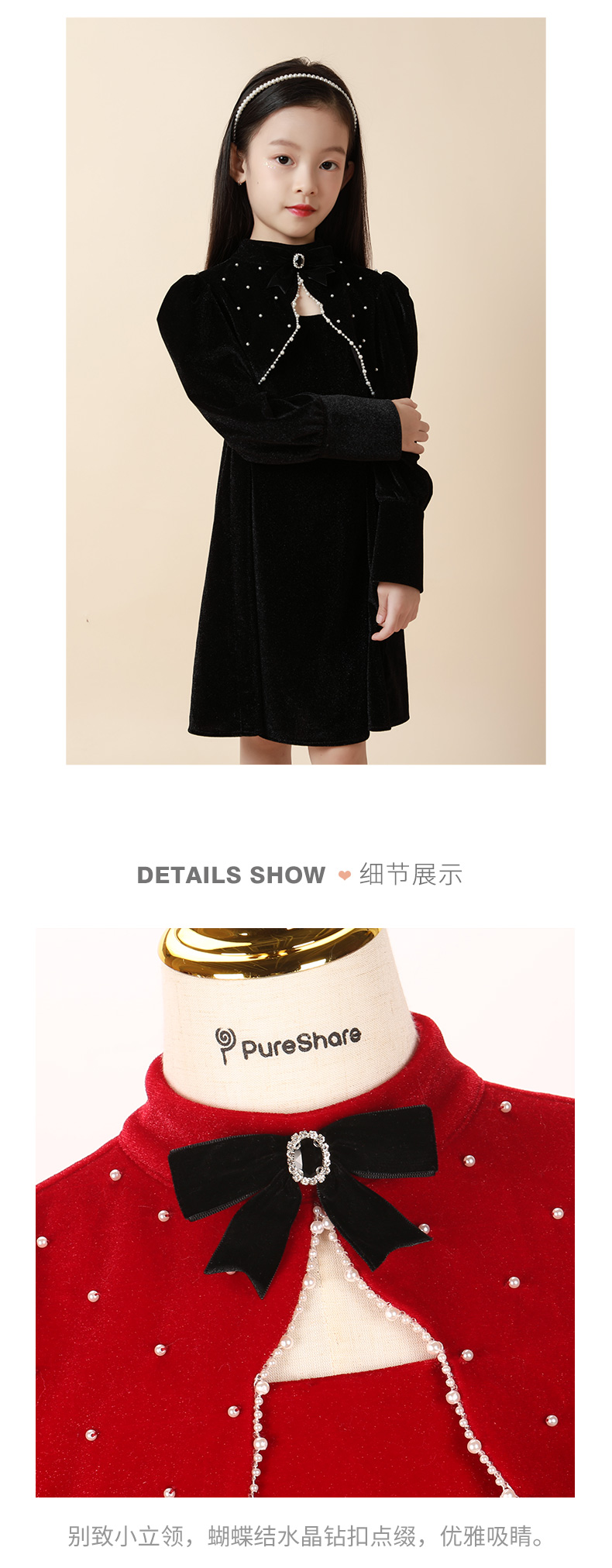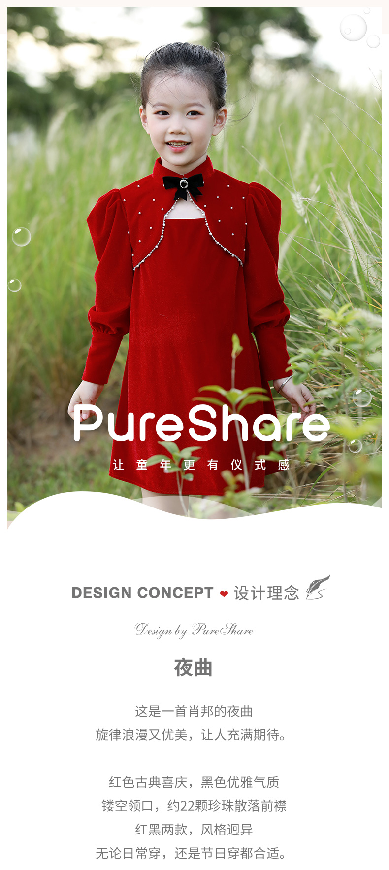 非质量问题不退换~pureshare 女童旗袍秋季新款连衣裙秋冬礼服复古儿童公主裙子-夜曲