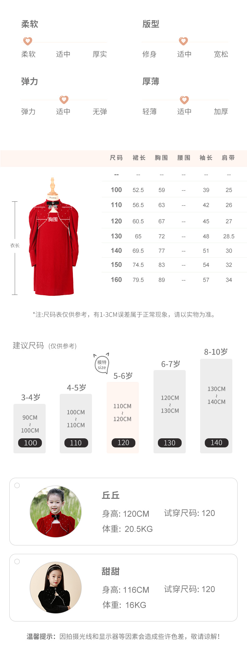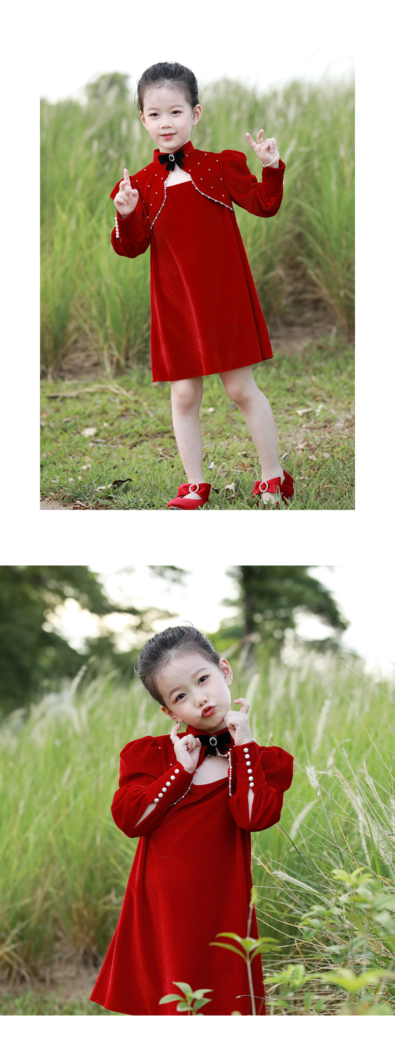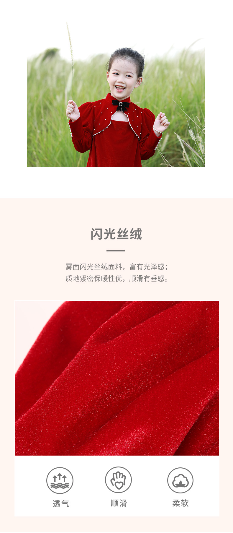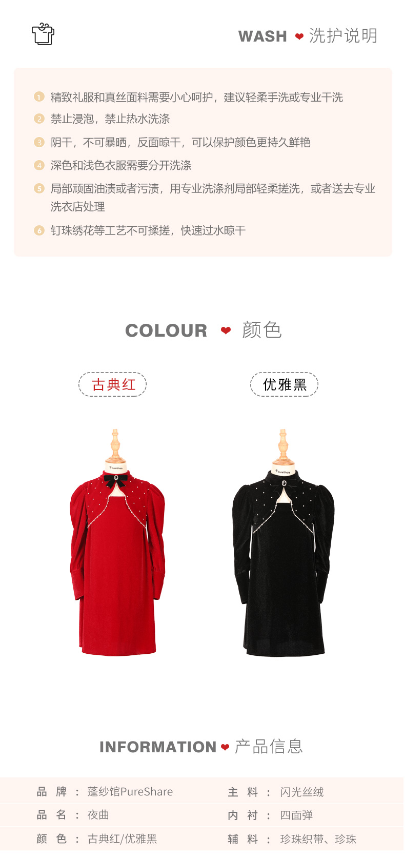非质量问题不退换~pureshare 女童旗袍秋季新款连衣裙秋冬礼服复古儿童公主裙子-夜曲