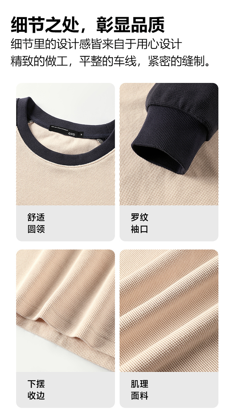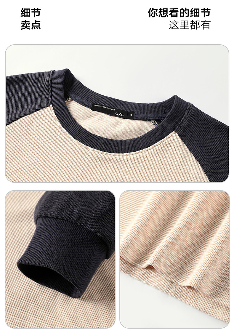 GXG男装25秋季撞色拼接休闲圆领上衣舒适宽松男式长袖T恤K&C
