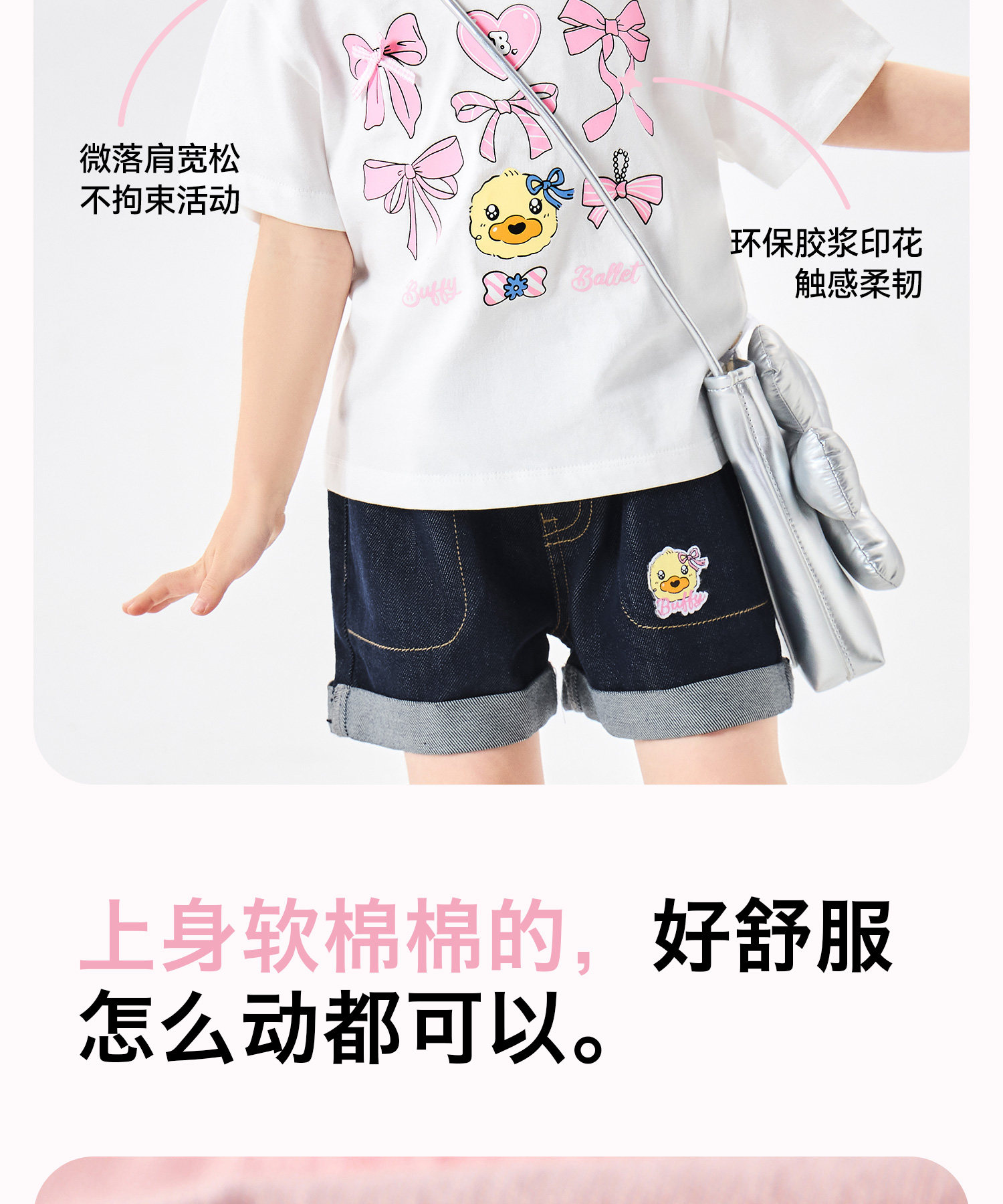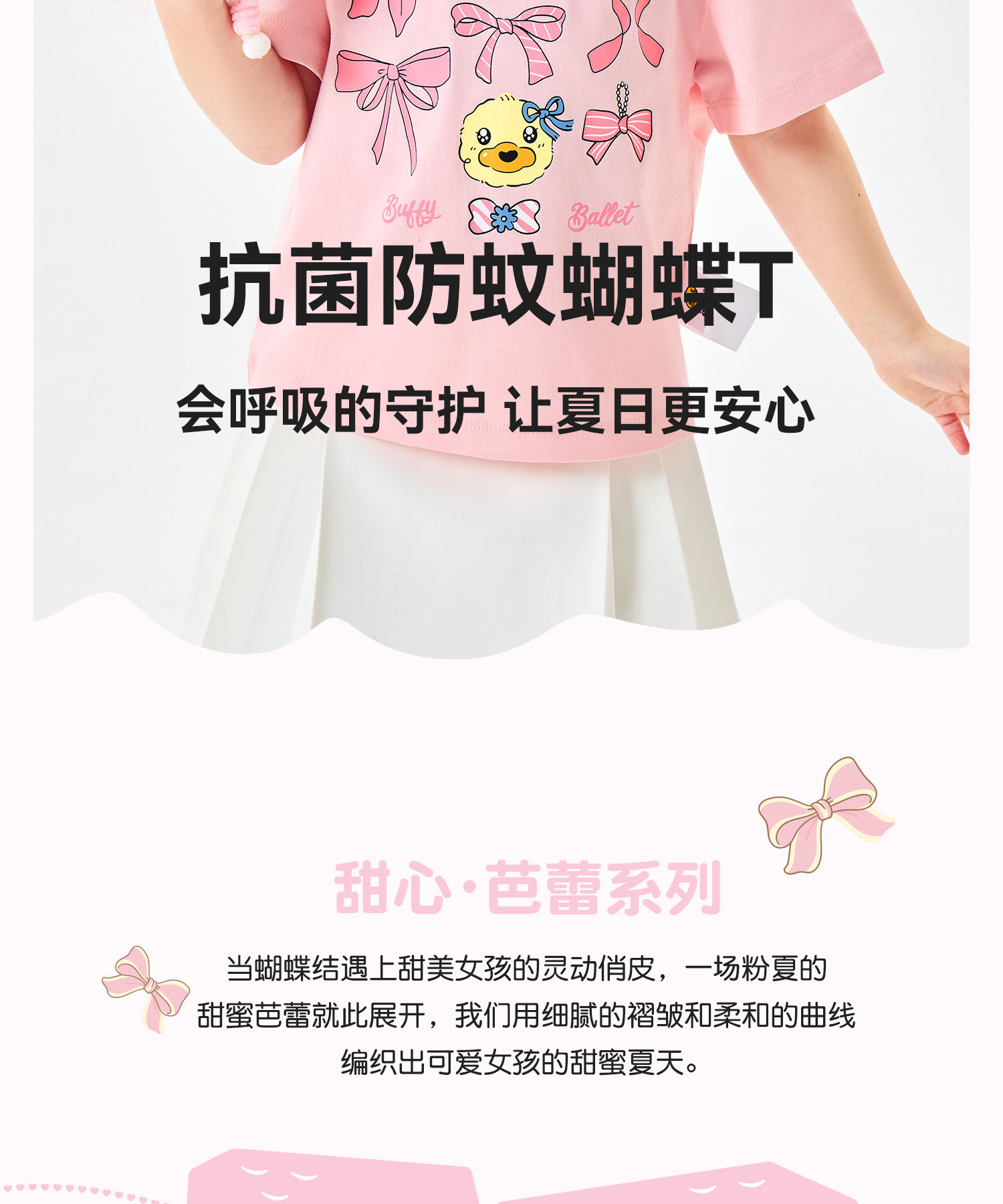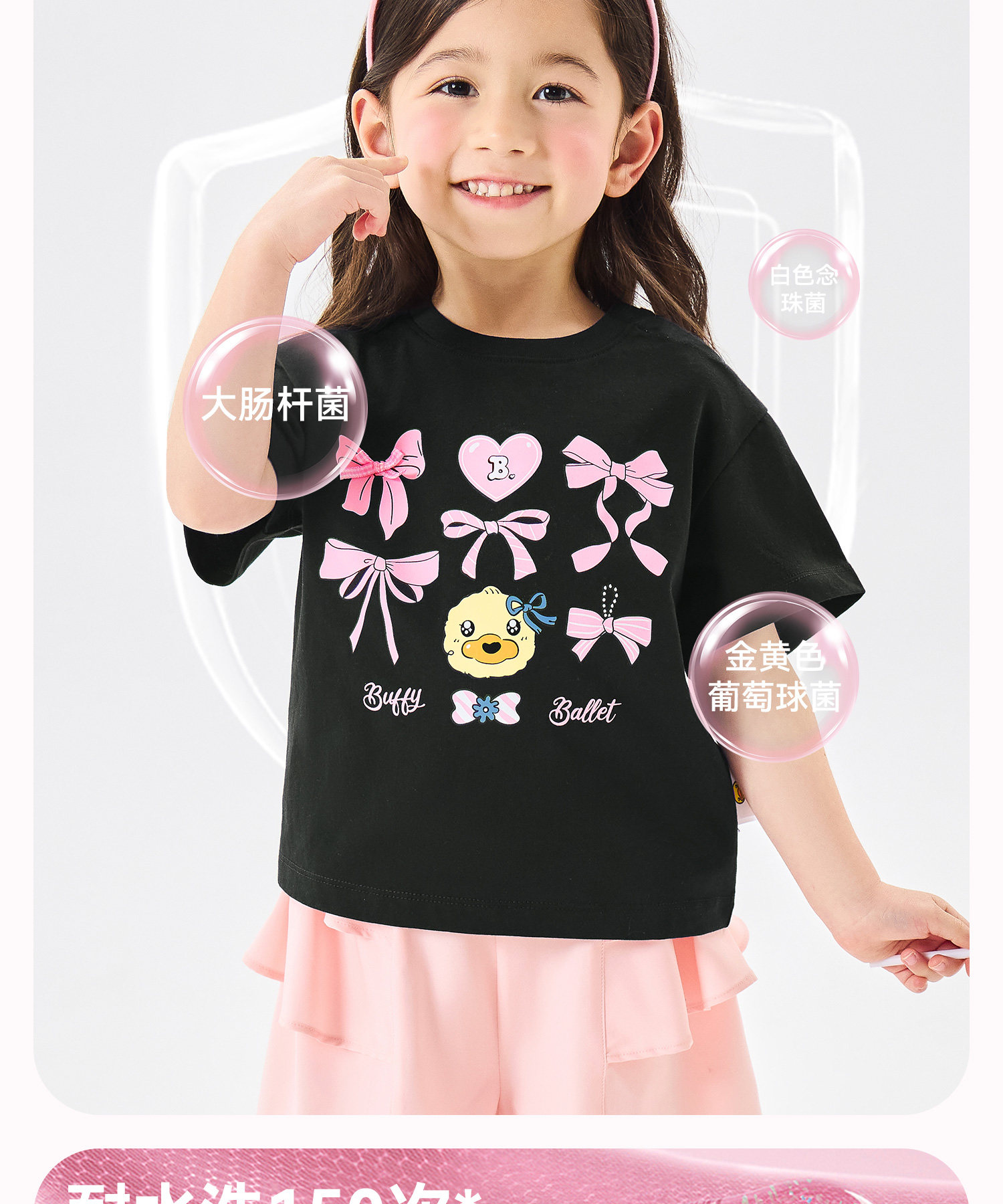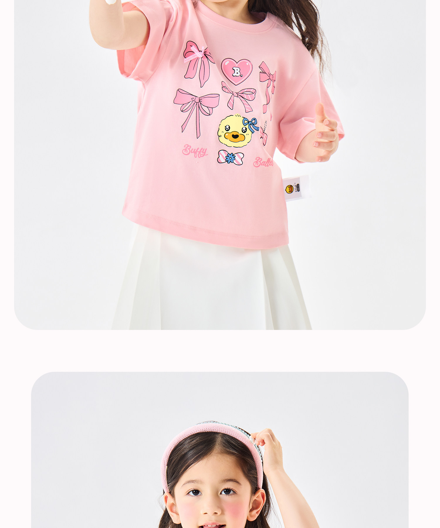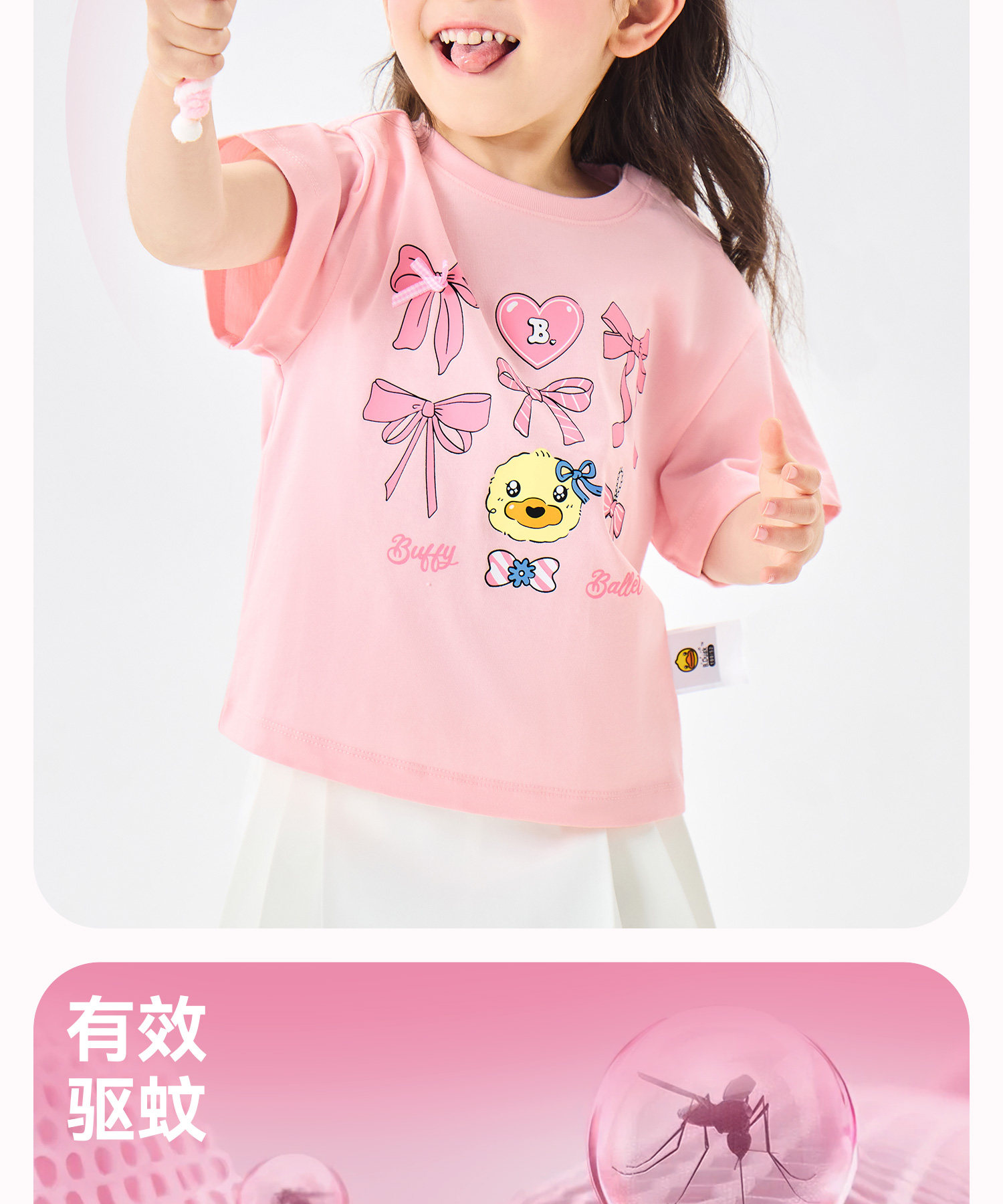 [驱蚊抗菌]bduck小黄鸭童装女童短袖儿童t恤宝宝上衣夏装纯棉体恤90-150 FF2701056