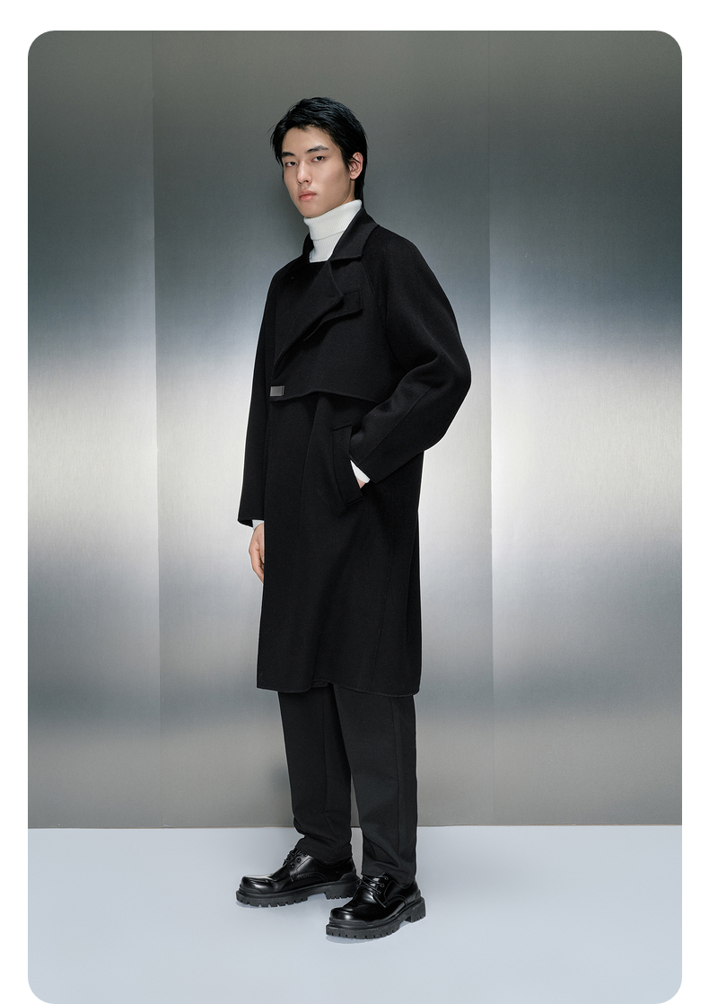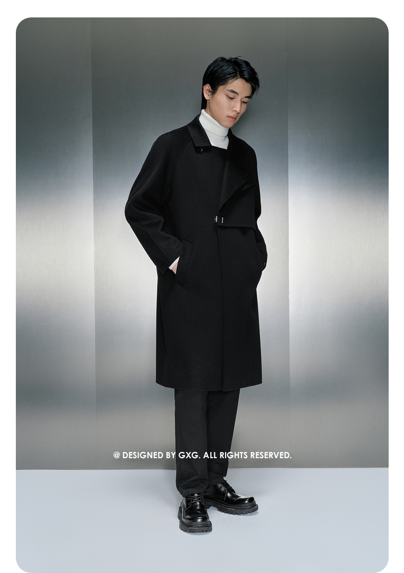 GXG男装 黑色简约长款大衣 冬季热卖长款大衣GEX12627194