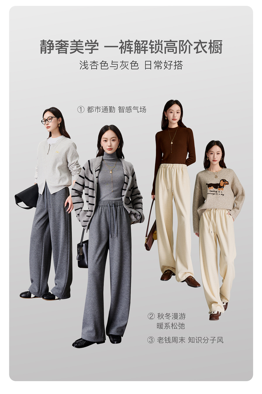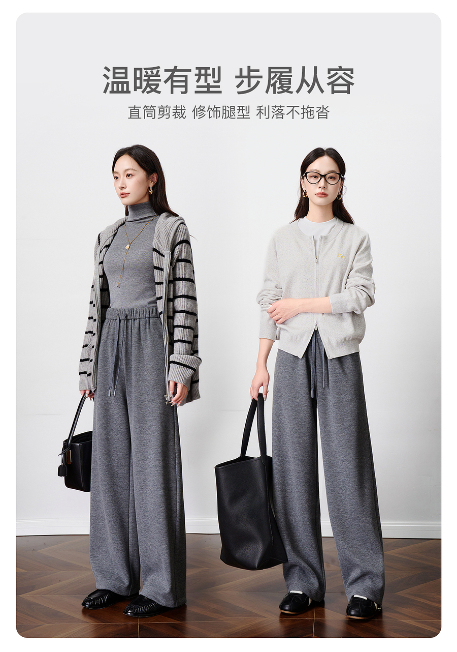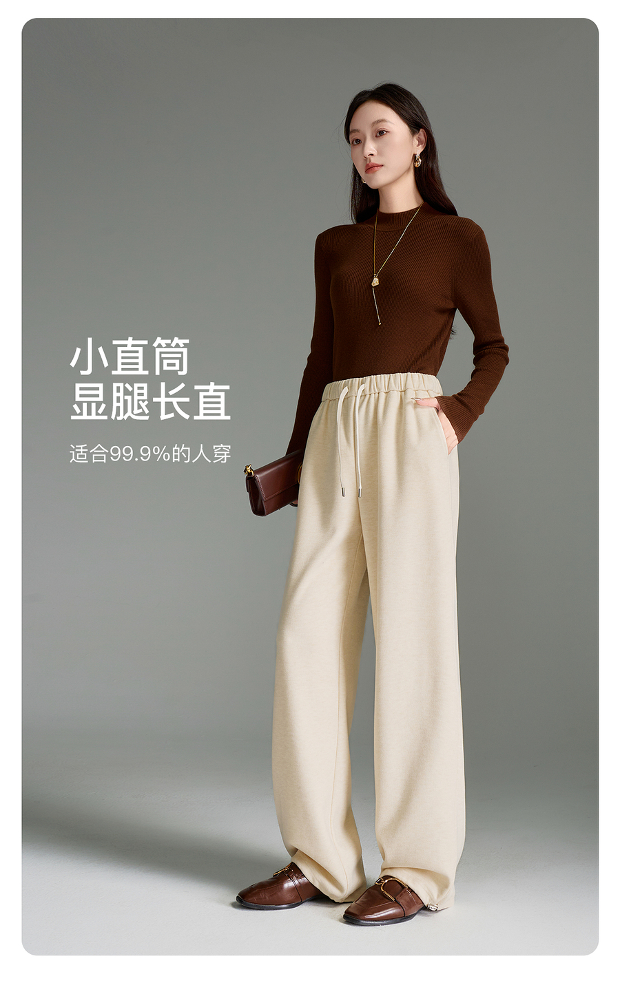 OLrain欧芮儿2025新款女秋季休闲针织宽松直筒裤松弛感裤子长裤