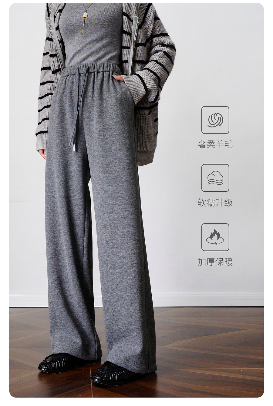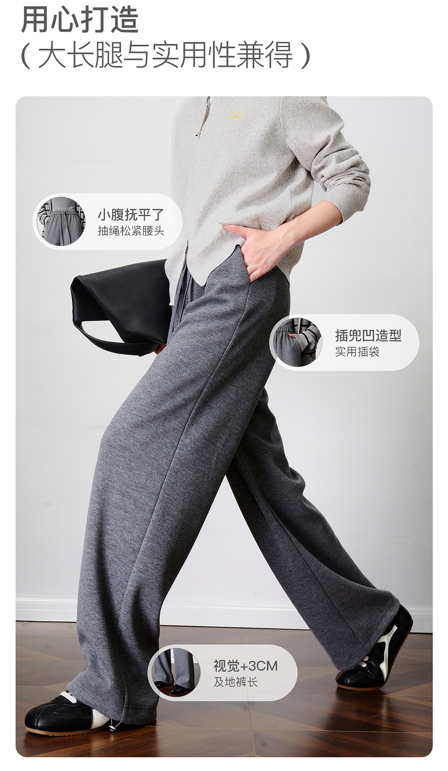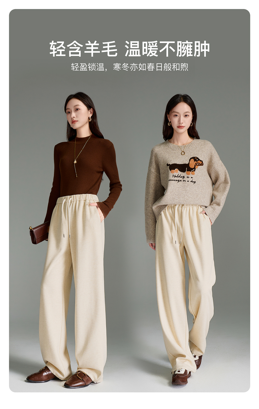OLrain欧芮儿2025新款女秋季休闲针织宽松直筒裤松弛感裤子长裤