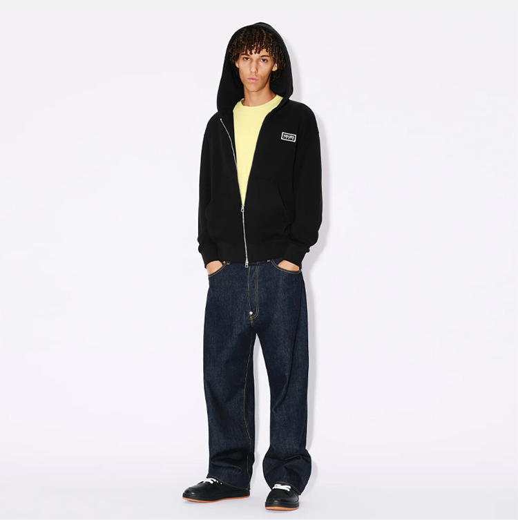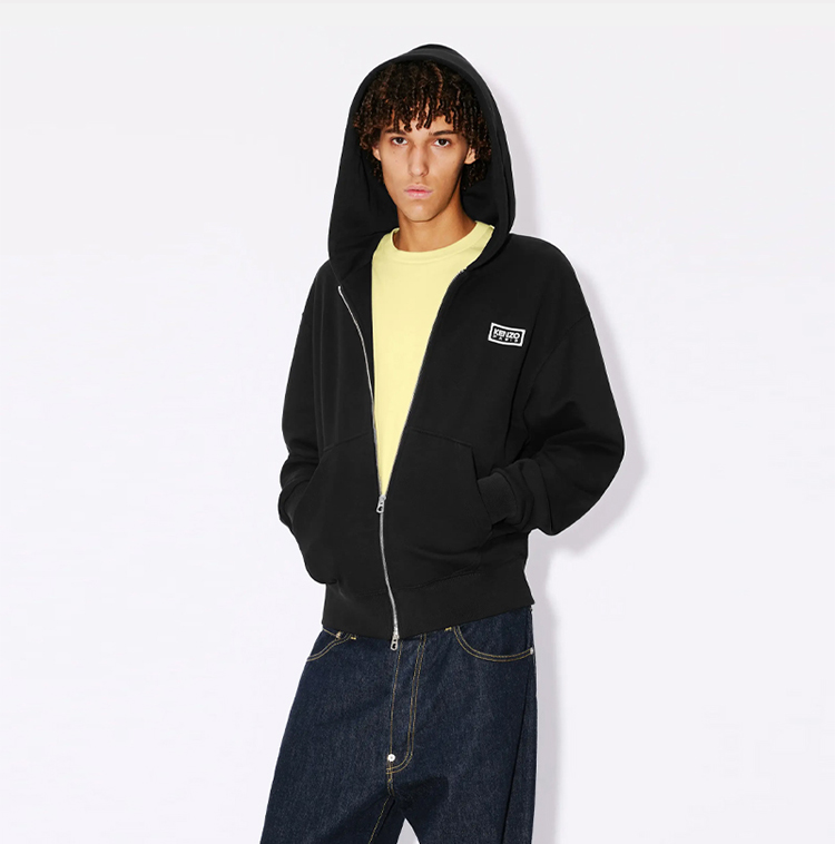 KENZO 高田贤三 男士字母徽标刺绣棉质连帽卫衣 黑色 FE55 SW183 4MG 99J