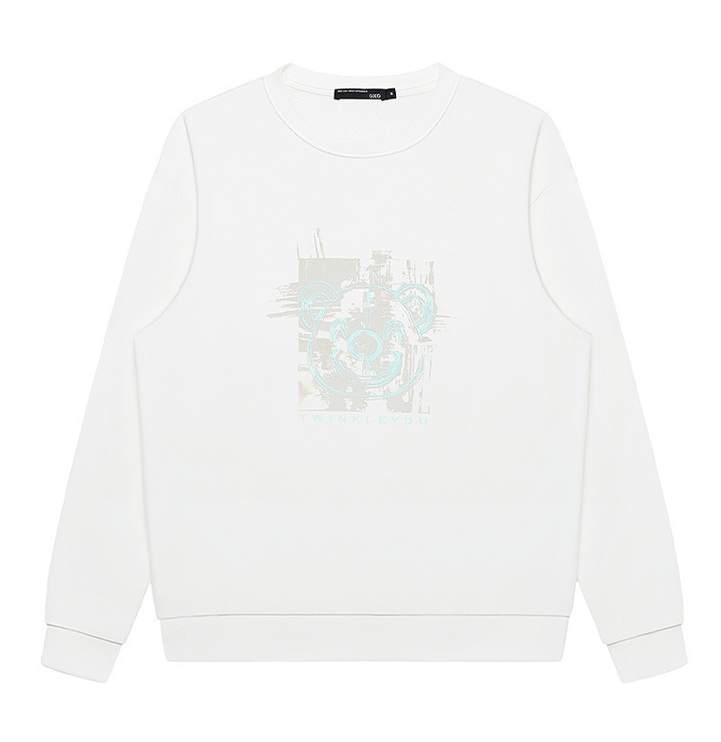 GXG男装【笑脸小熊】25春季卡通图案男女情侣款舒适纯棉圆领卫衣K&C