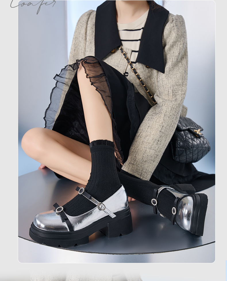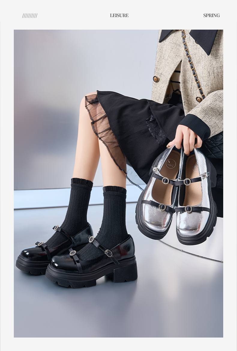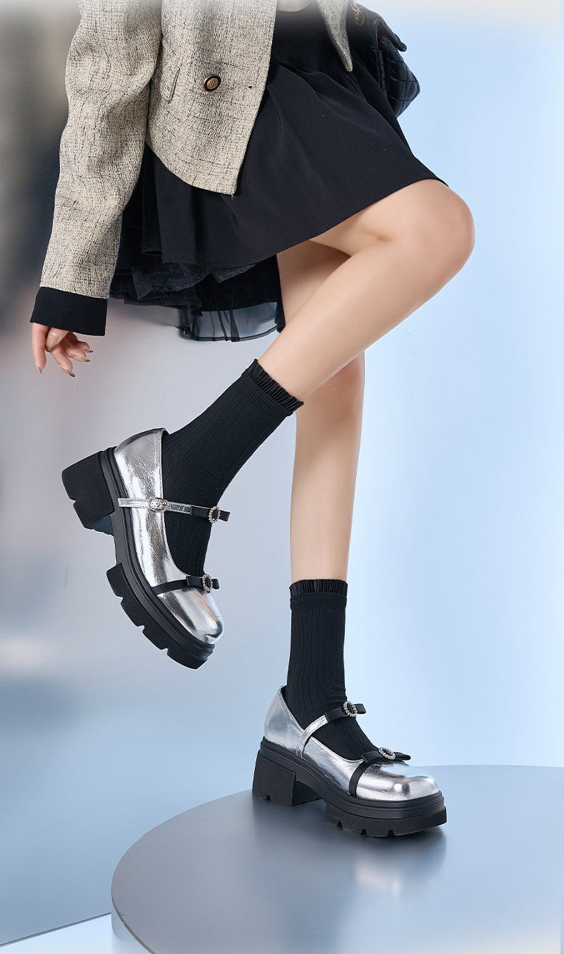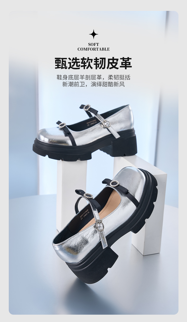 预售10天发|甜酷厚底蝴蝶结亮面一字带玛丽珍小皮鞋SFD1111020