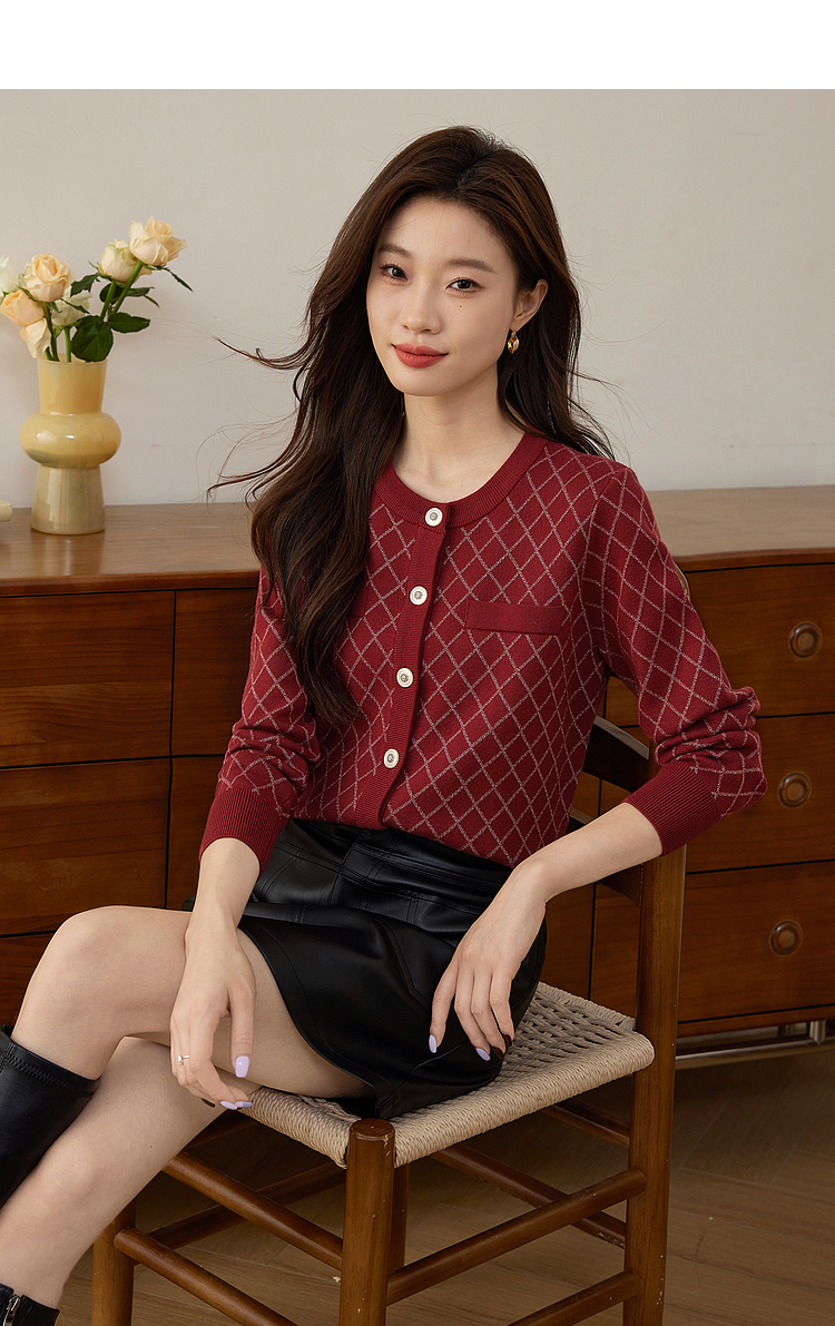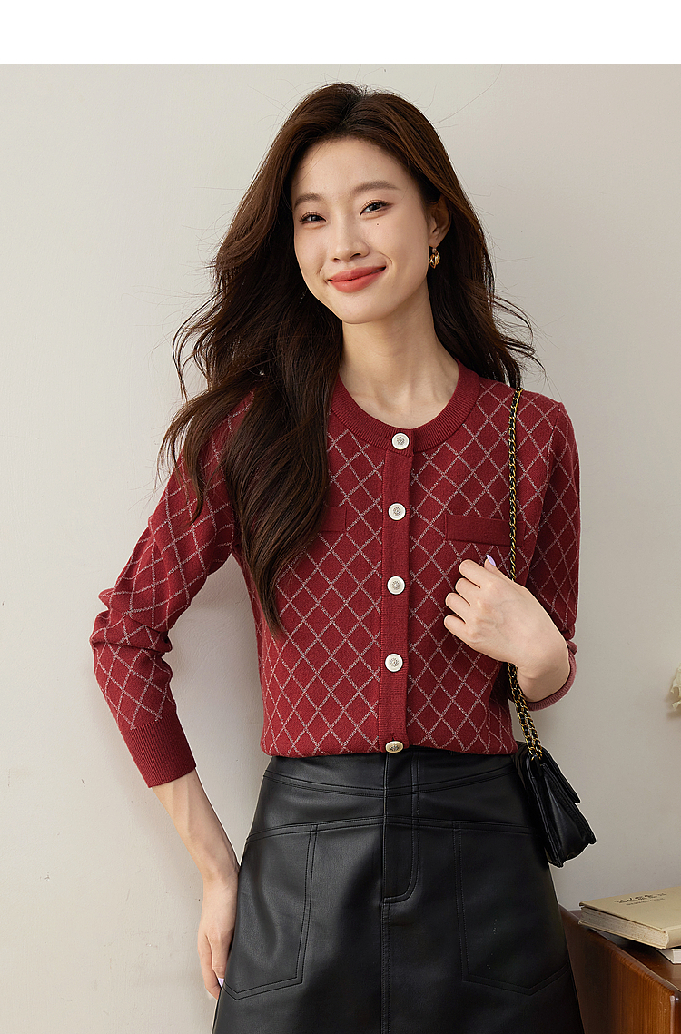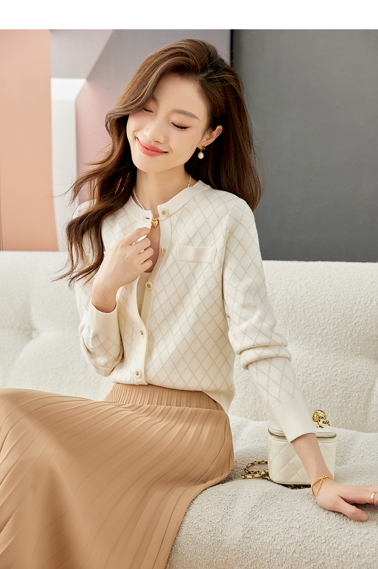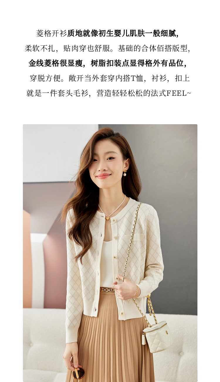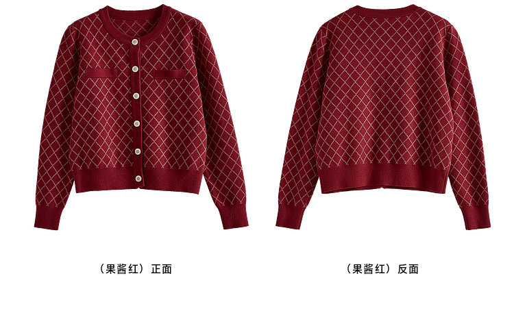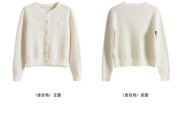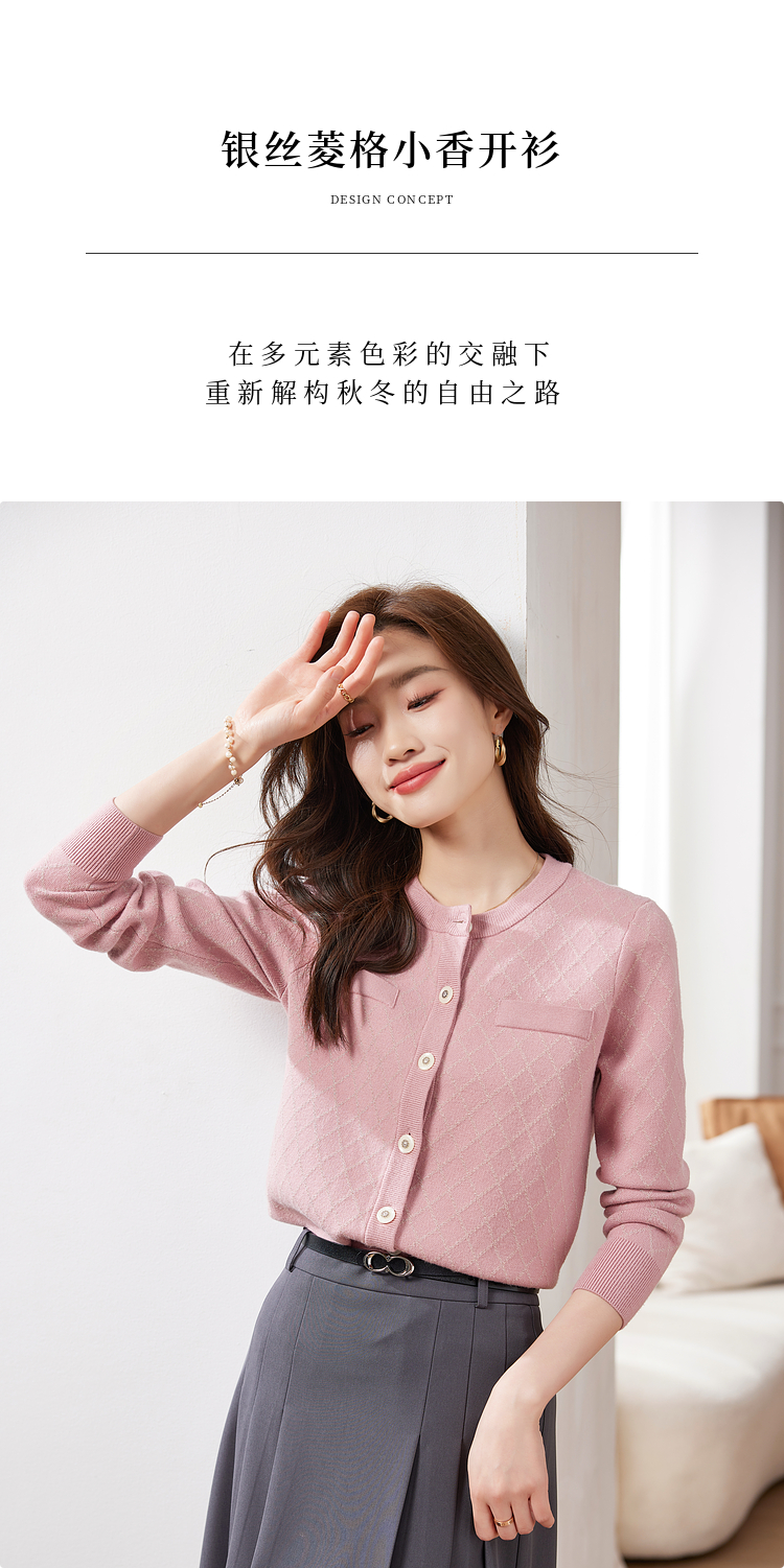 【五折购】熙世界气质小香风菱格针织短外套女2025秋季新款圆领软糯开衫上衣