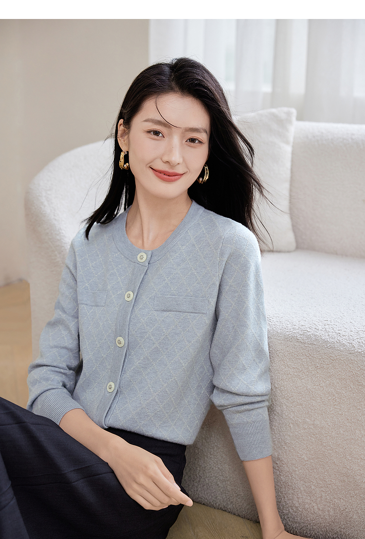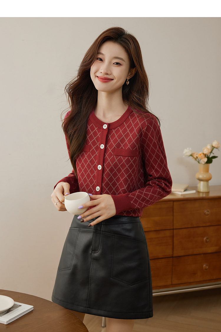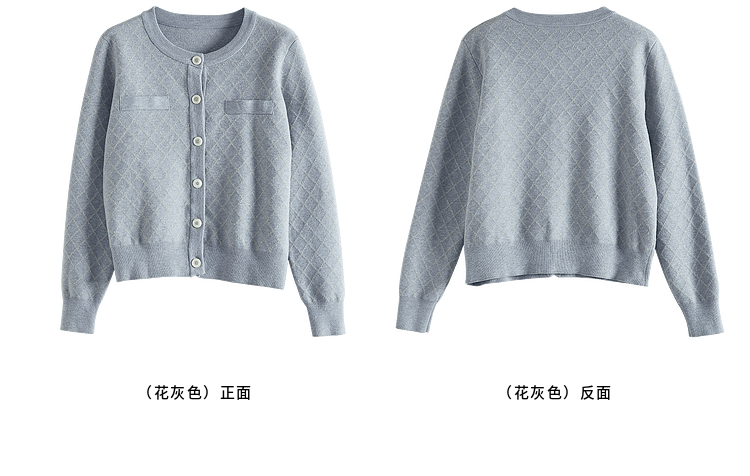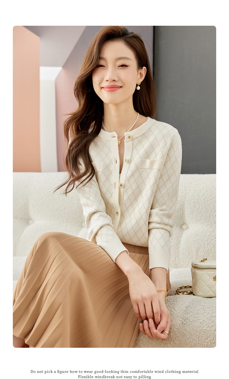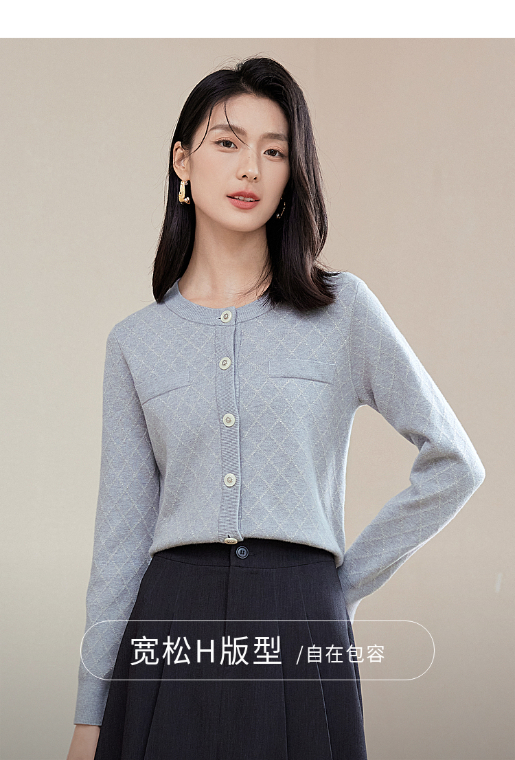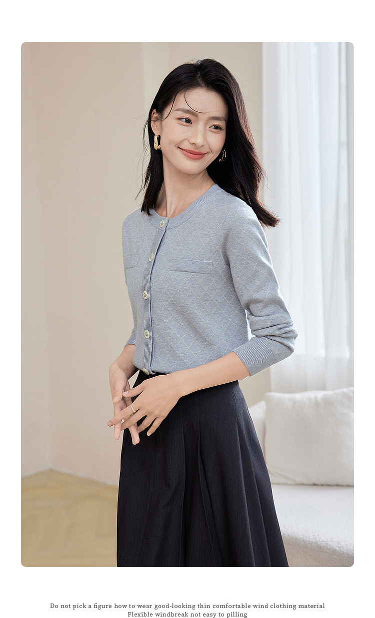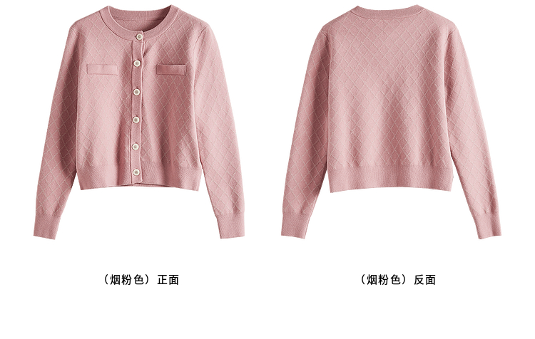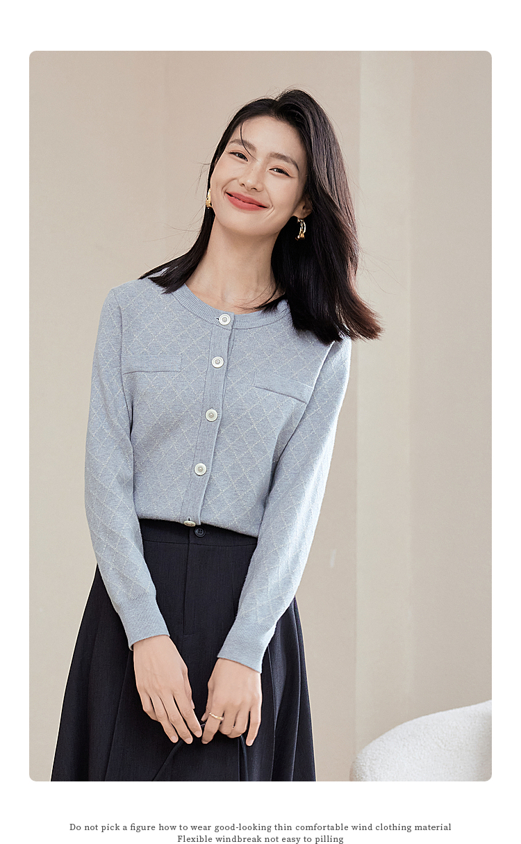 【五折购】熙世界气质小香风菱格针织短外套女2025秋季新款圆领软糯开衫上衣