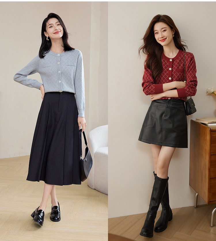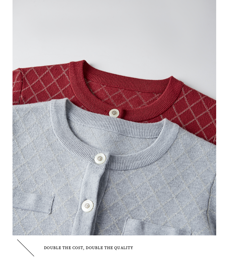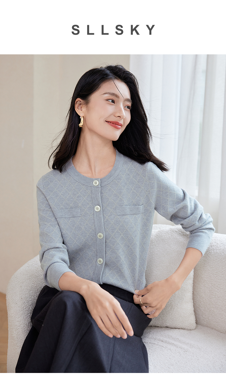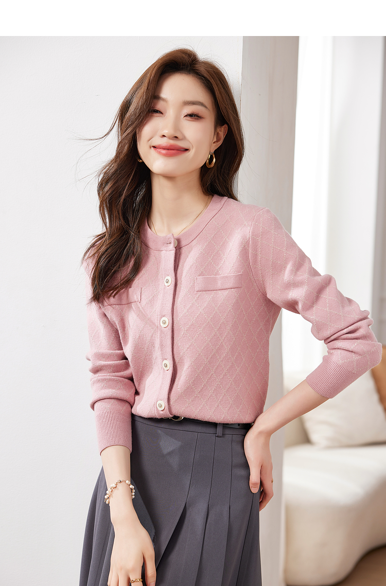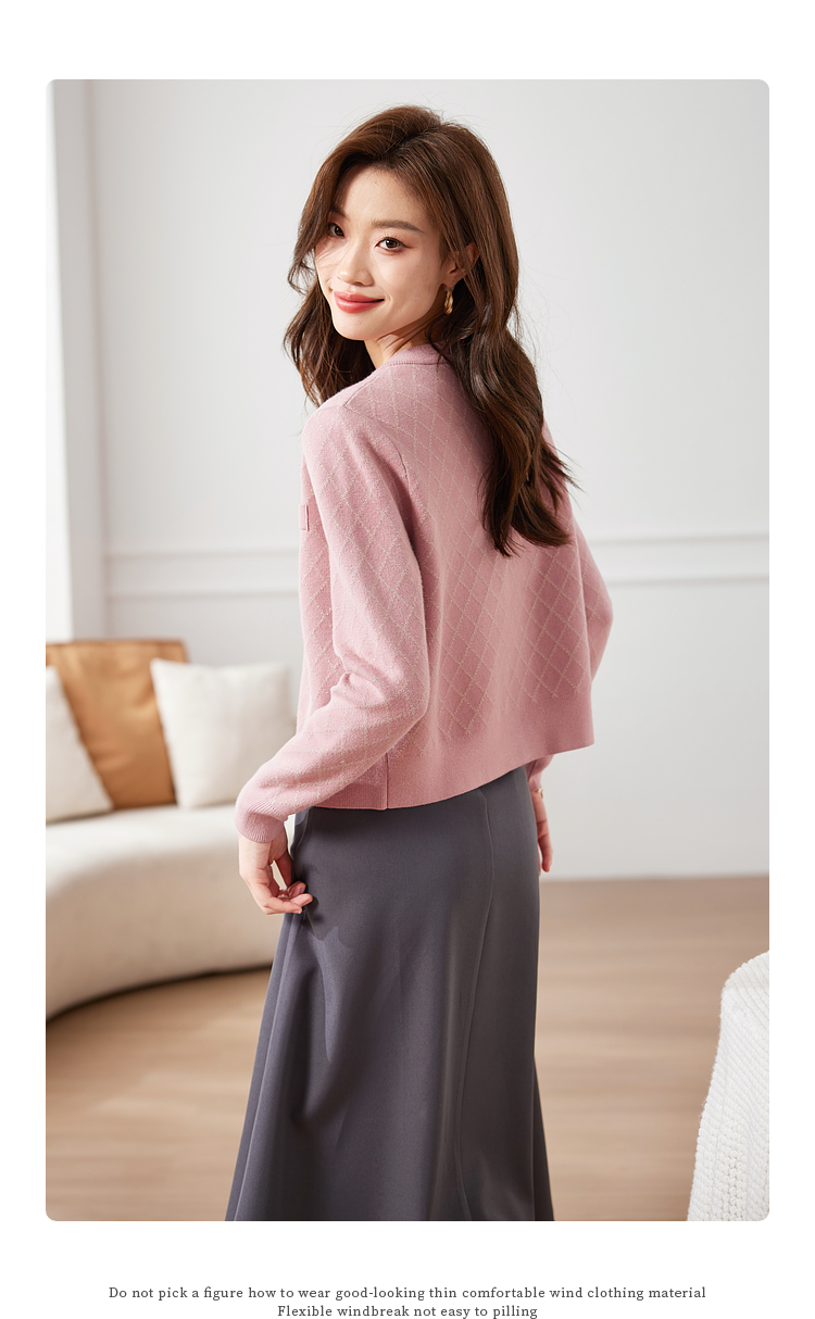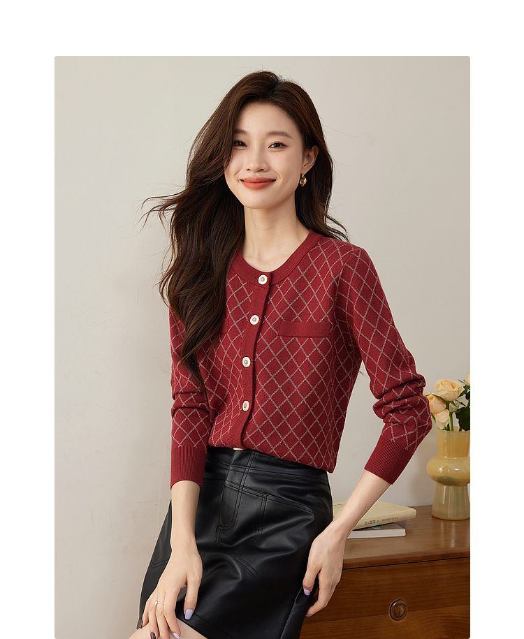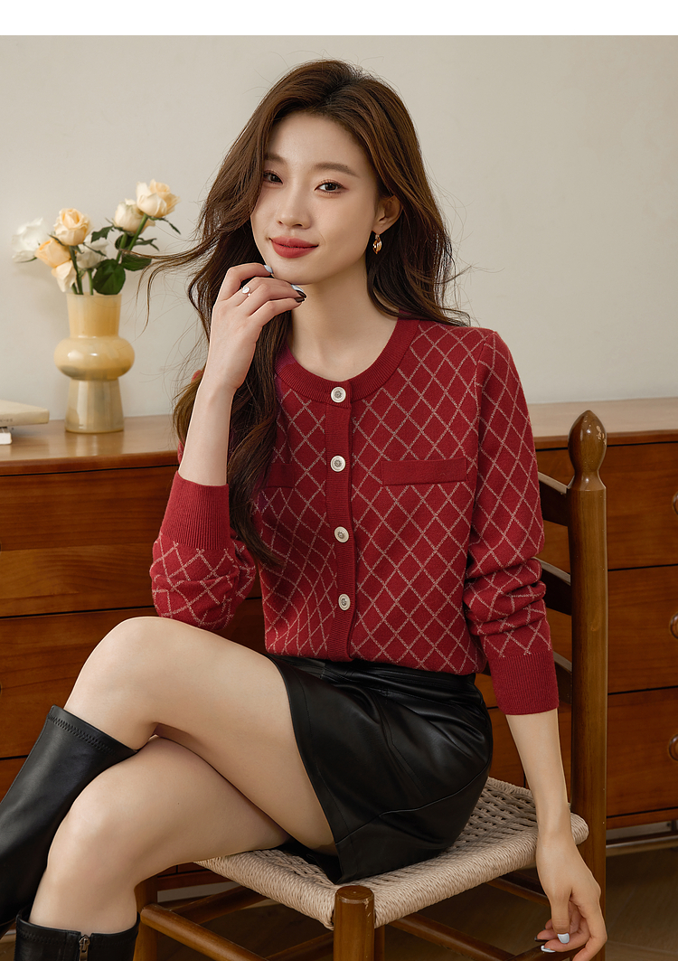 【五折购】熙世界气质小香风菱格针织短外套女2025秋季新款圆领软糯开衫上衣