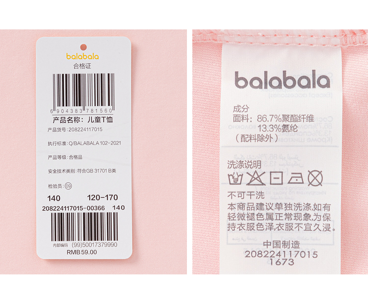 巴拉巴拉童装t恤新款儿童女童夏装短袖大童运动速干上衣甜美
