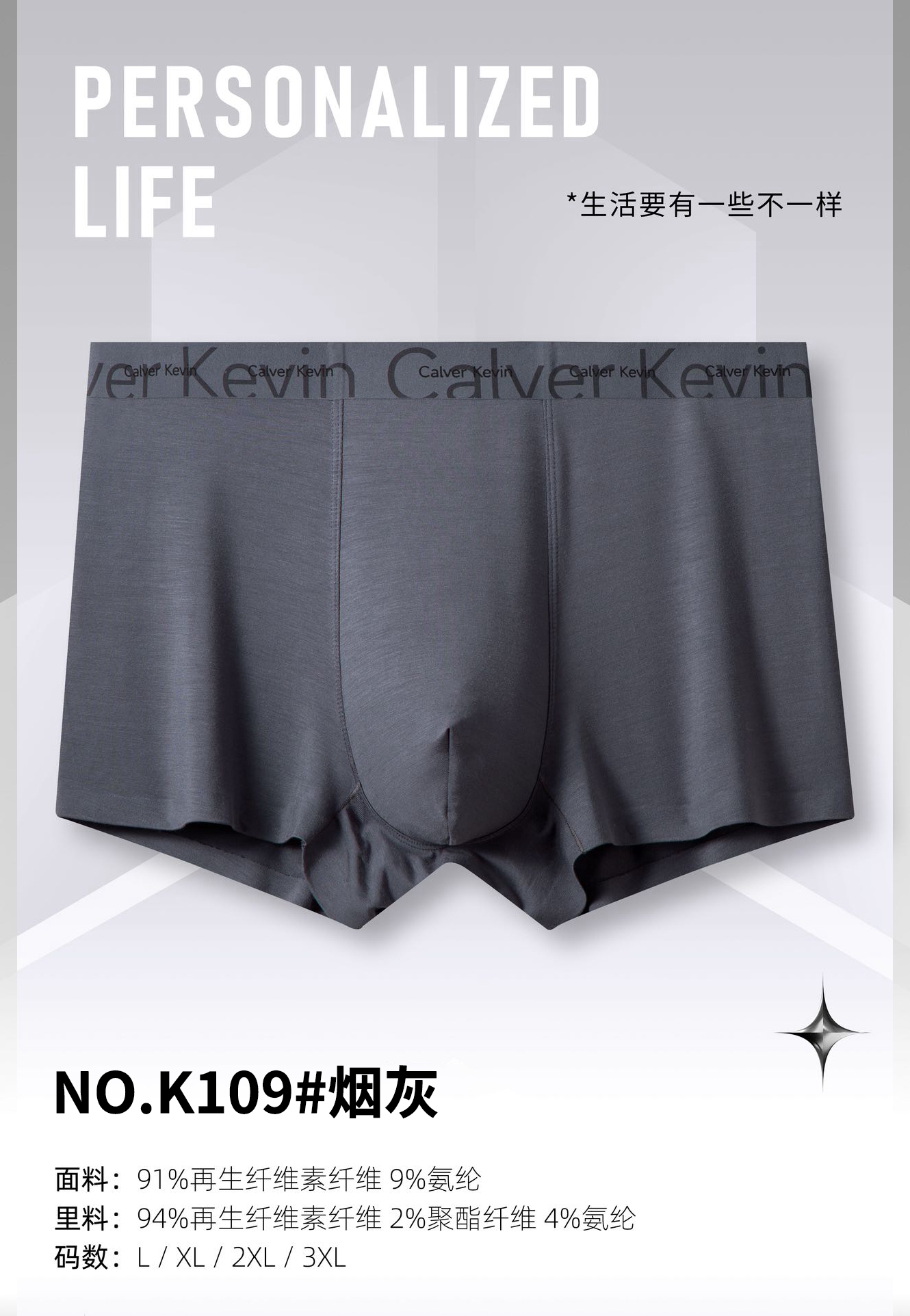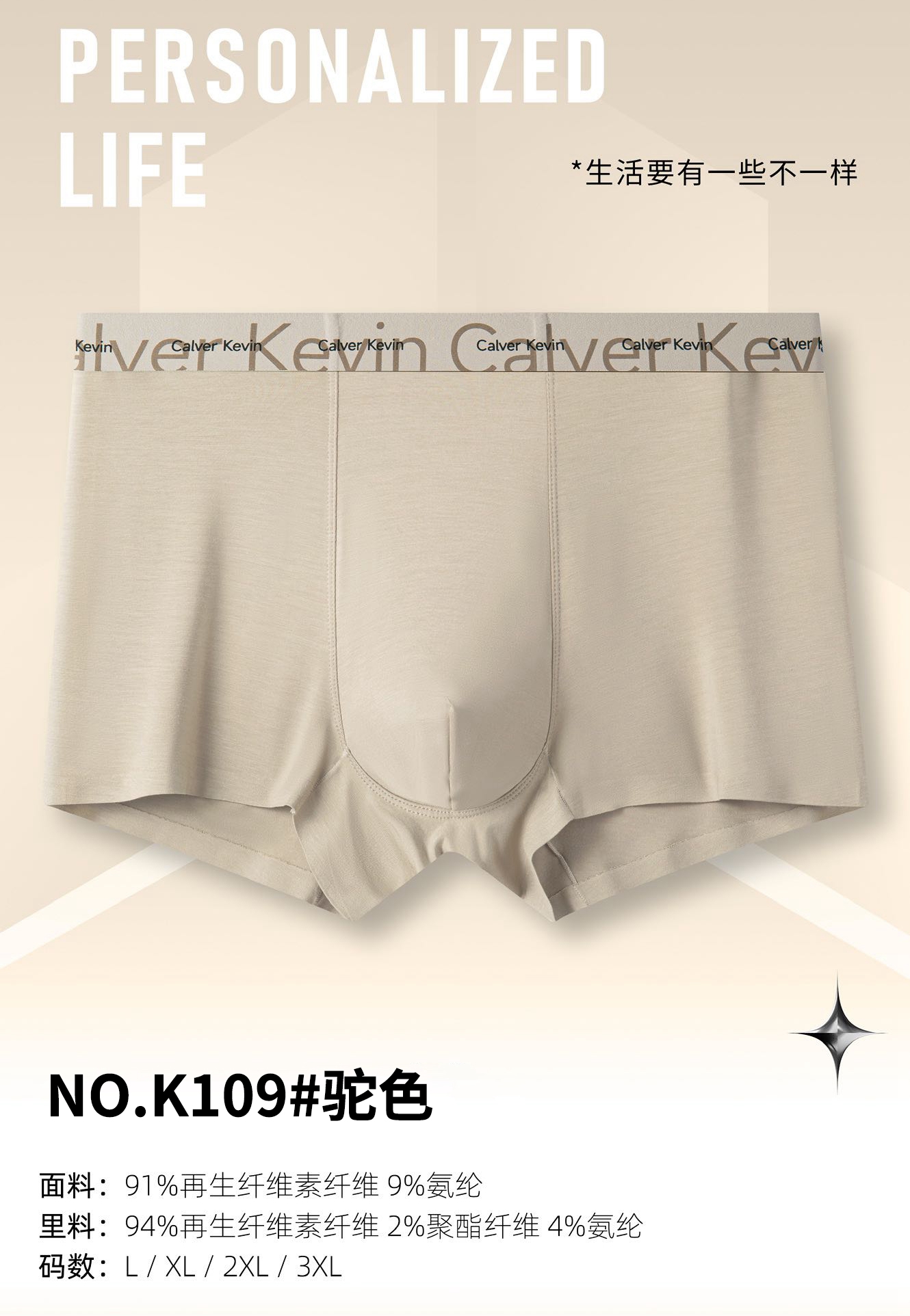 男士50支莫代尔兰精腰头印花无痕平角内裤K109