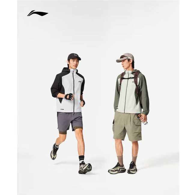 李宁男子2025春秋防泼水休闲连帽运动夹克外套AFYV001-4