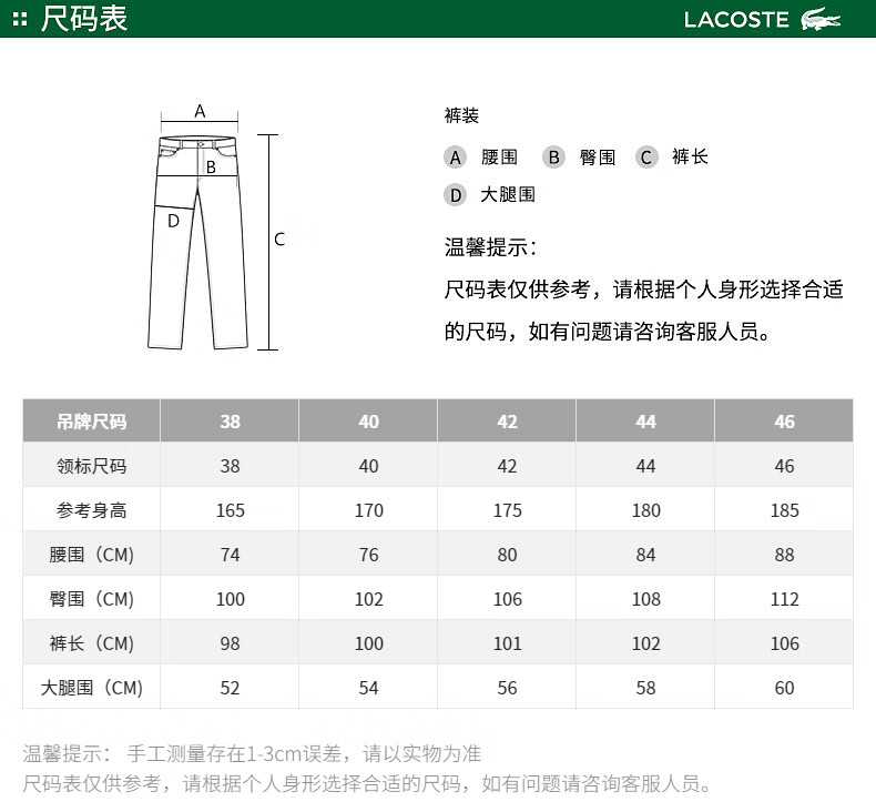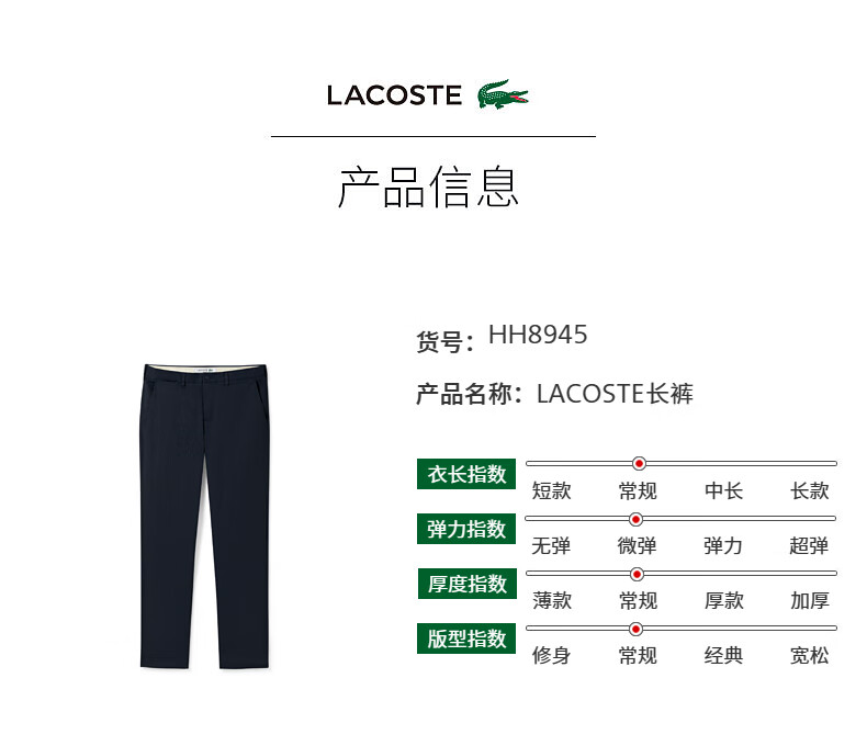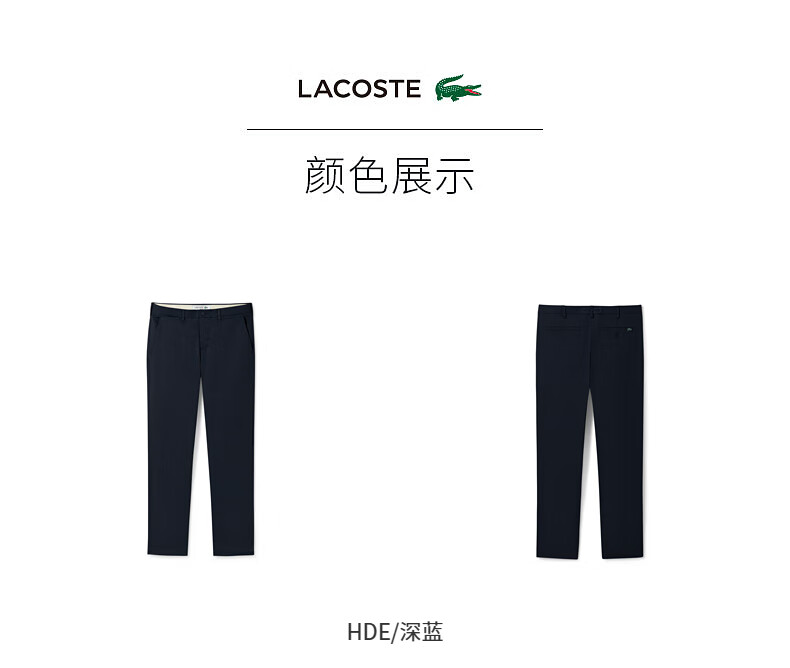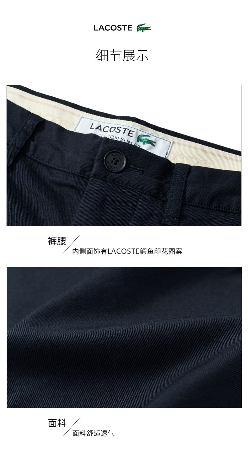 Lacoste法国鳄鱼男装新款简约通勤纯色直筒裤休闲裤HH8945-98