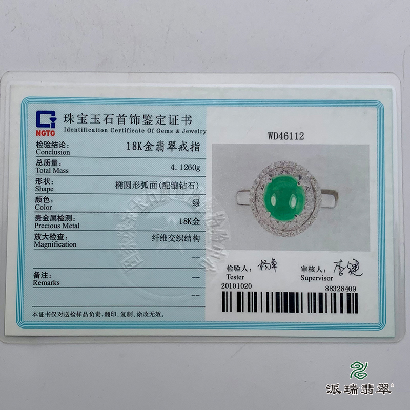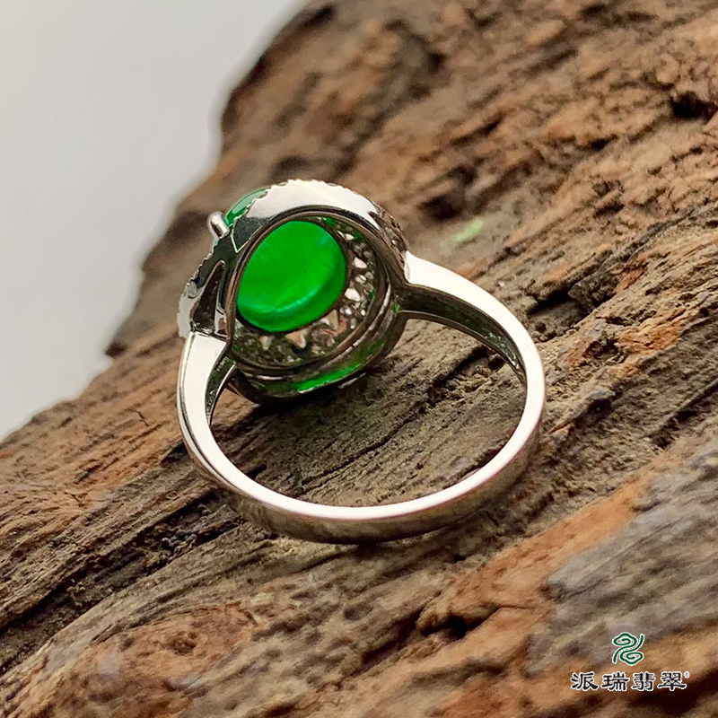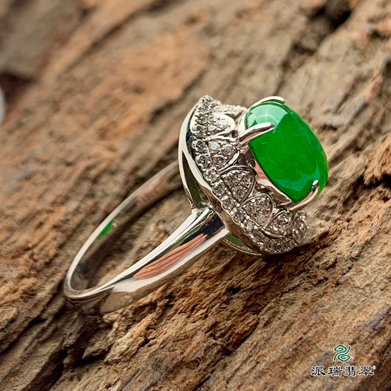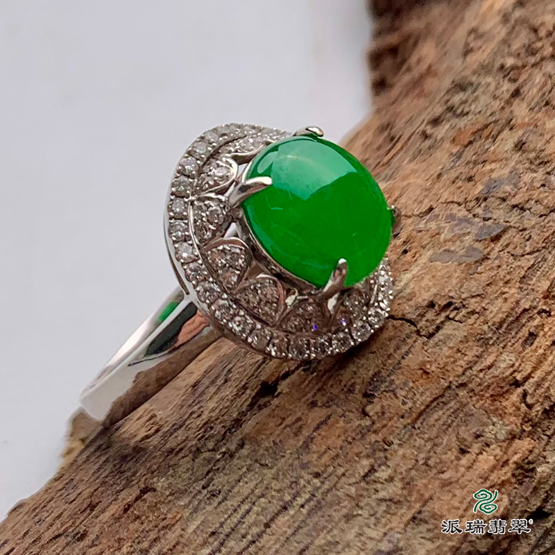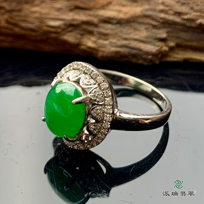 派瑞翡翠 18k金翡翠戒指 糯种 阳绿色