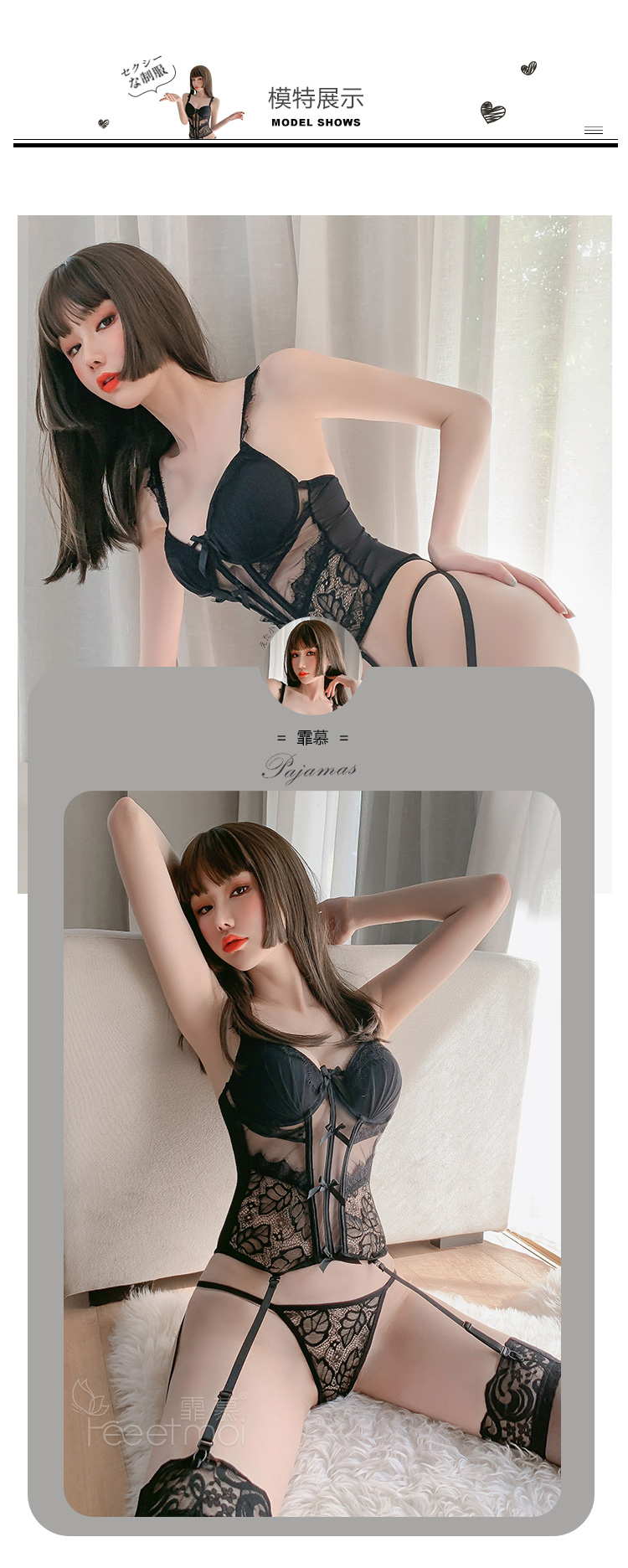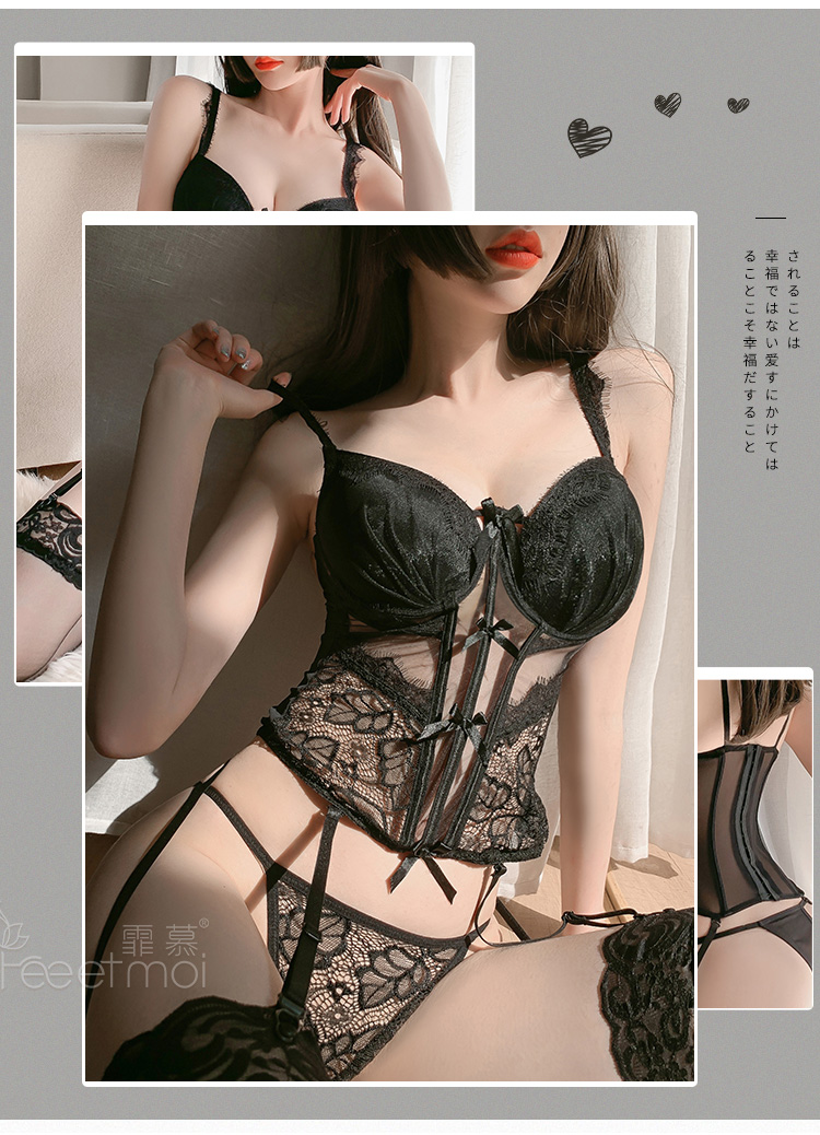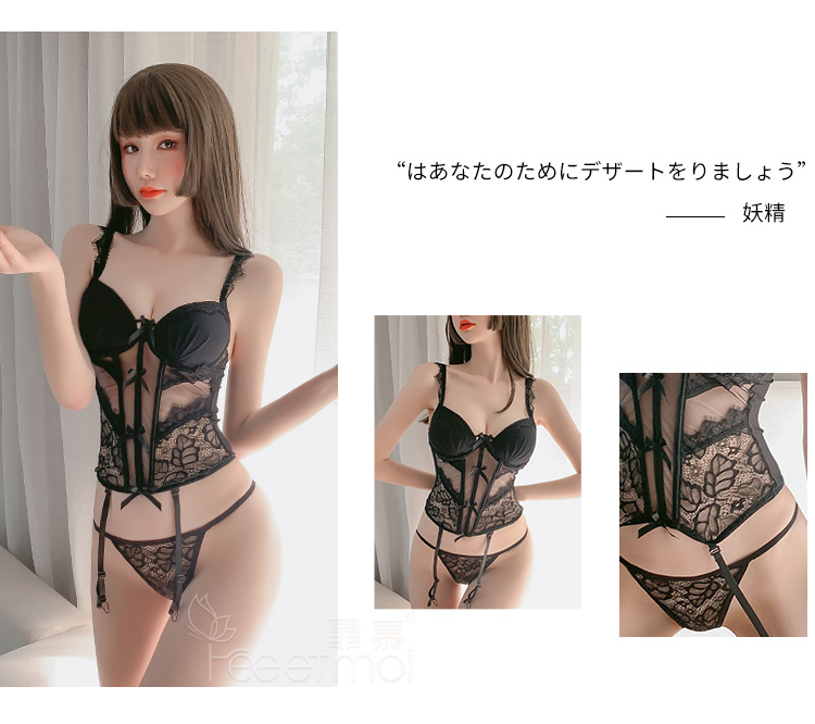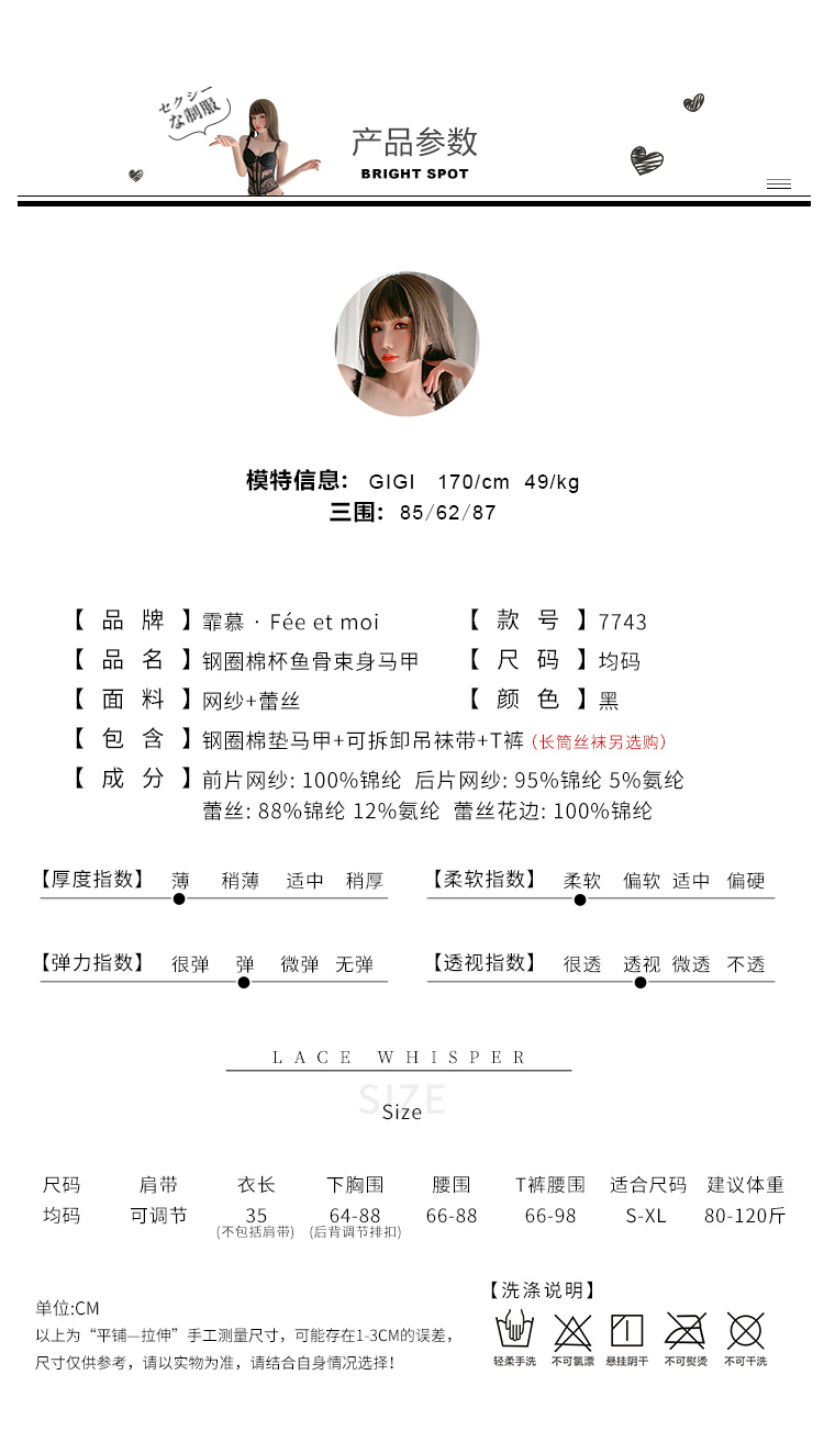 【鱼骨塑身】情趣内衣 网纱 钢圈 聚拢 立体胸垫 性感 蕾丝 马甲 套装 欧美范 型号:7743