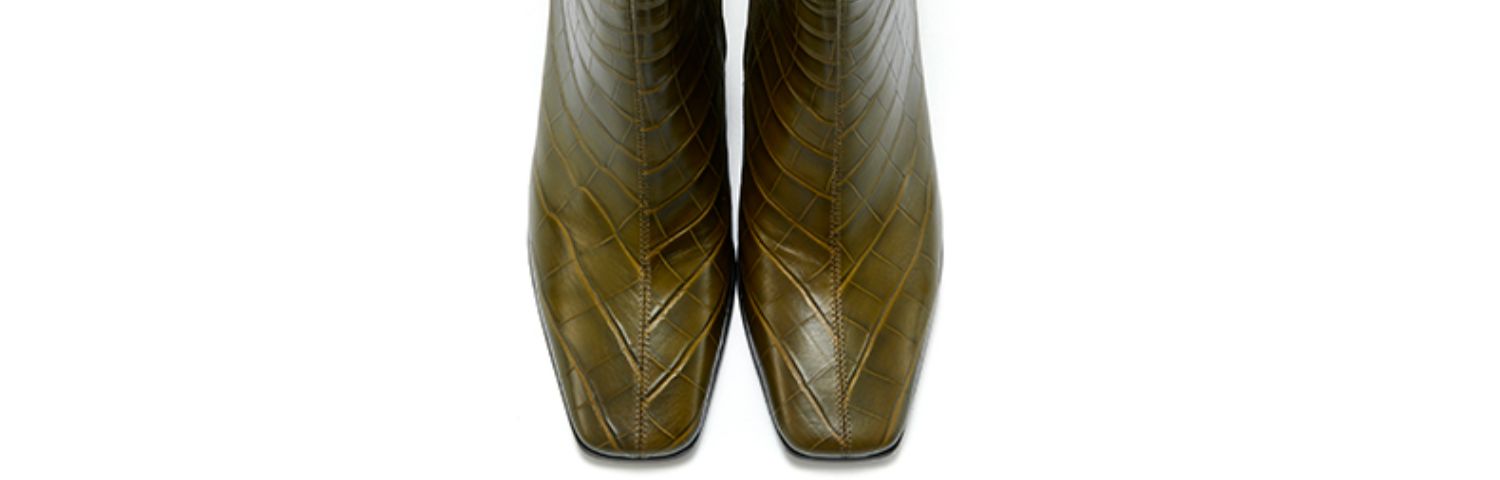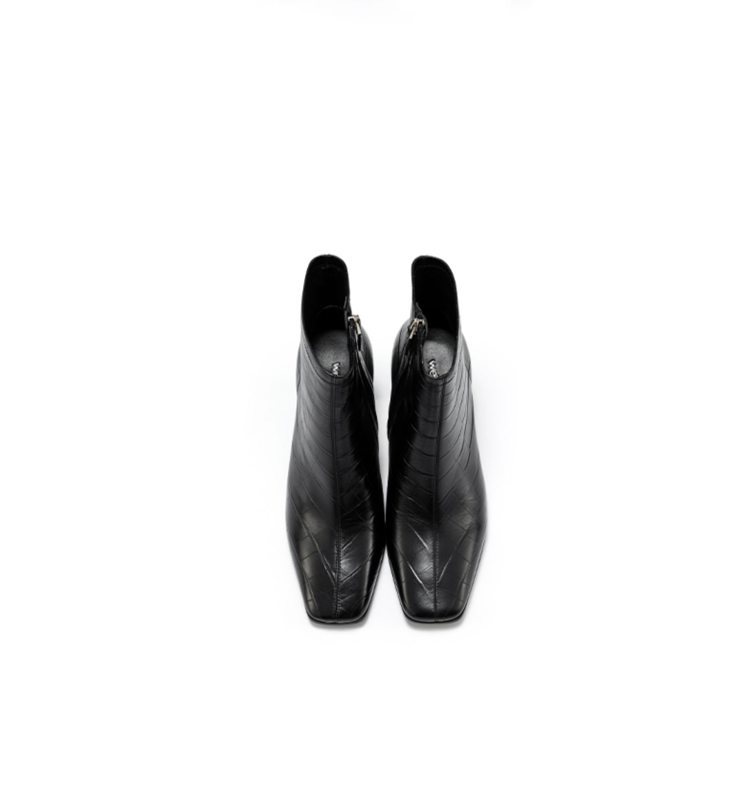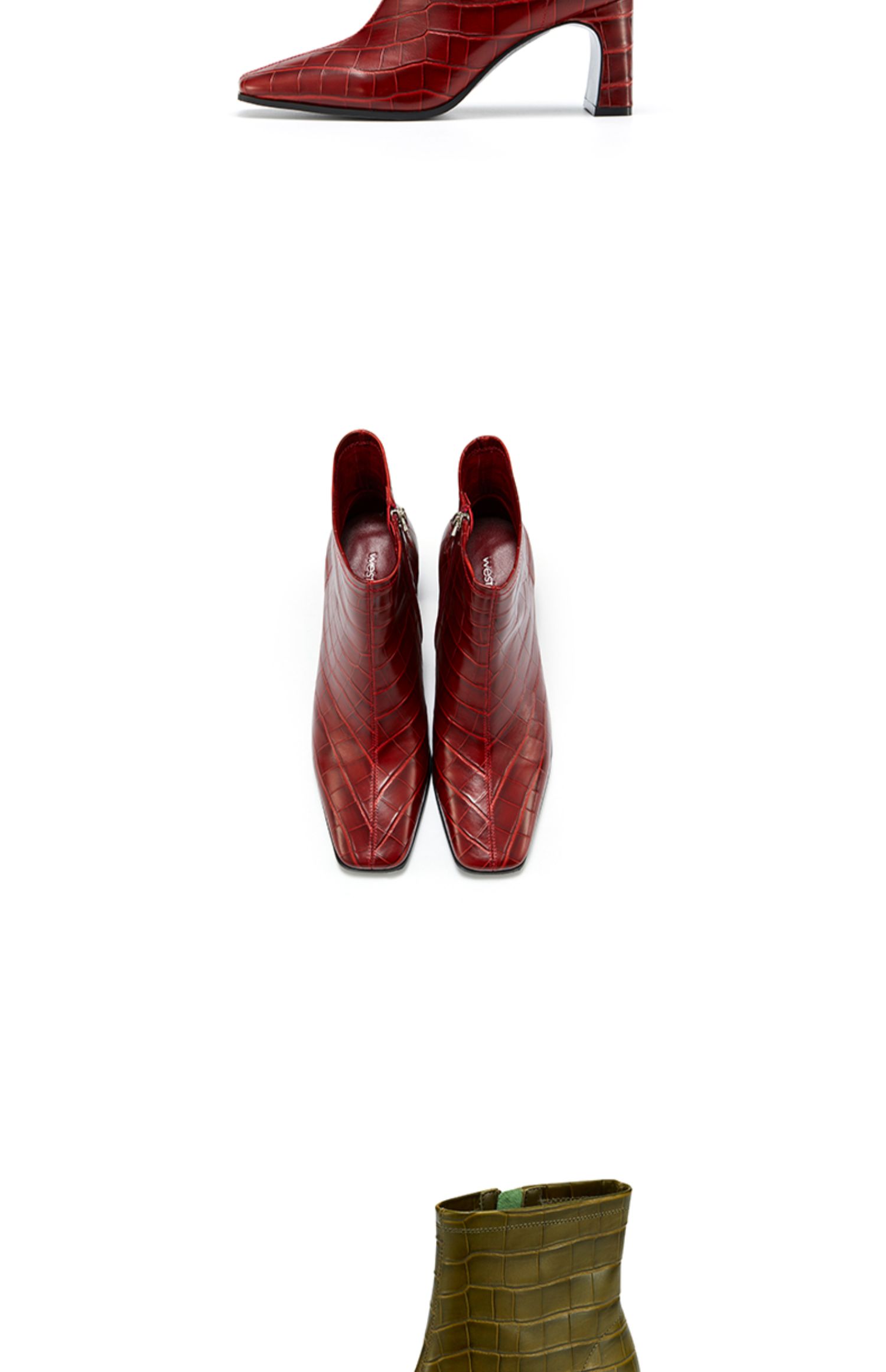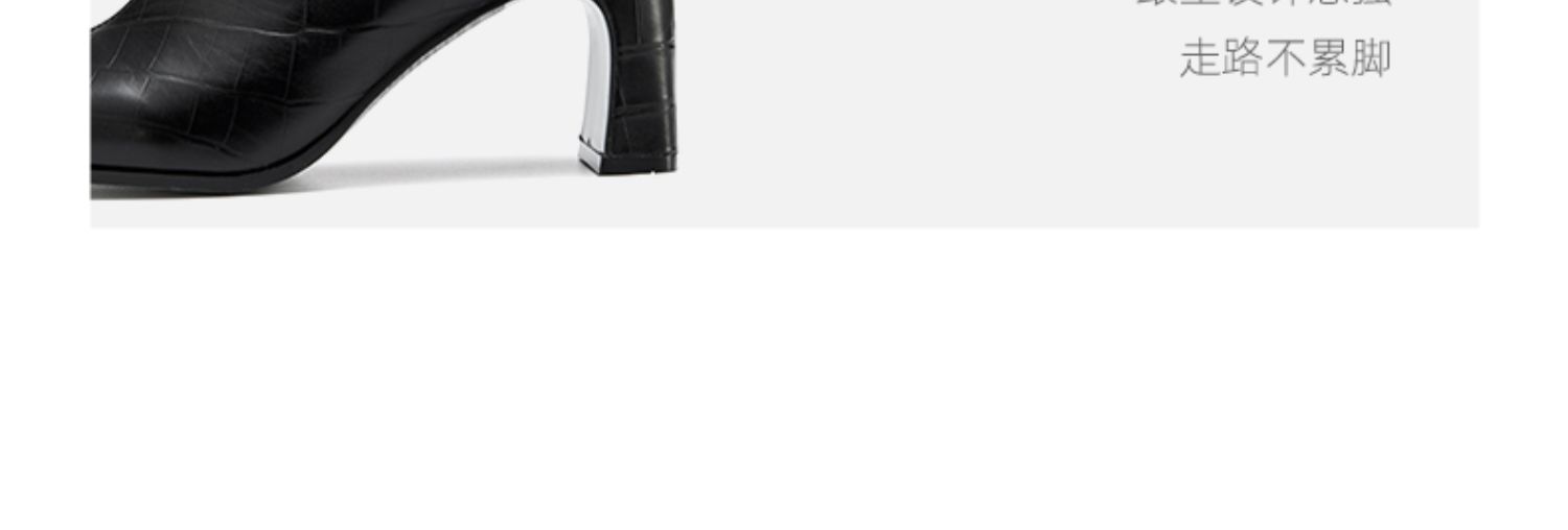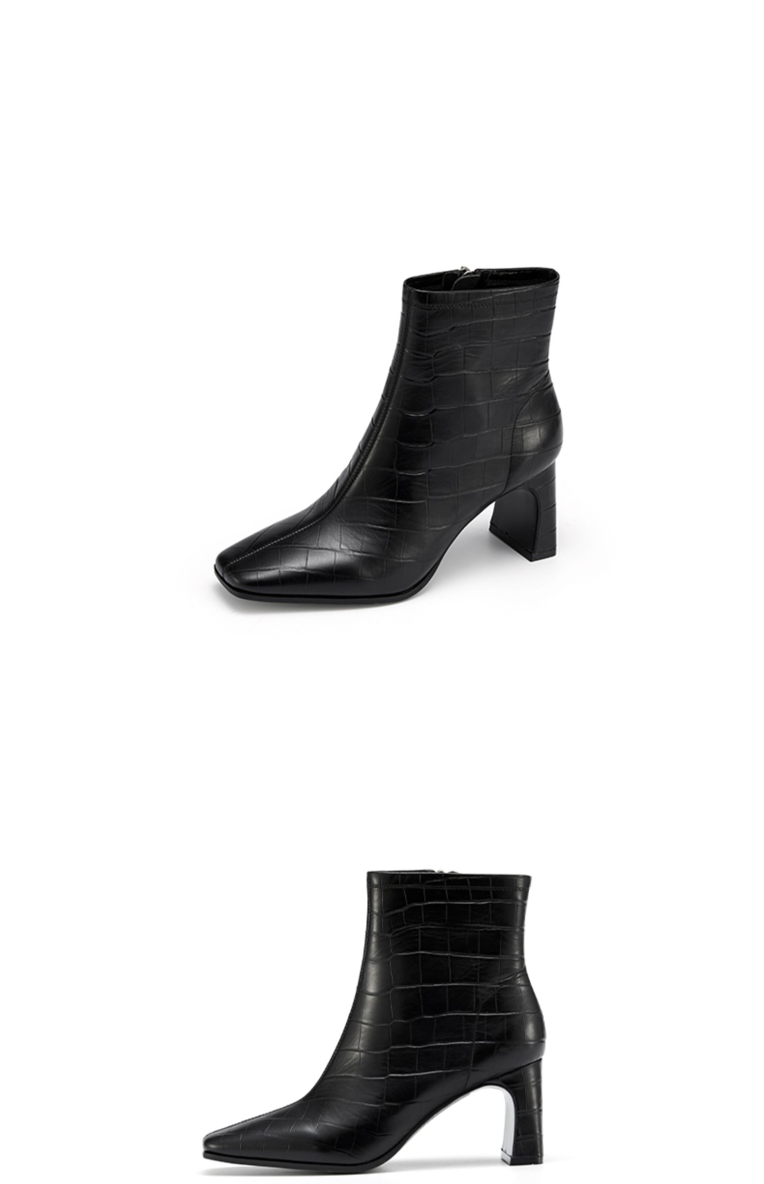 westory2021秋季新款方头粗跟短筒靴子时尚复古石纹W21DS80701