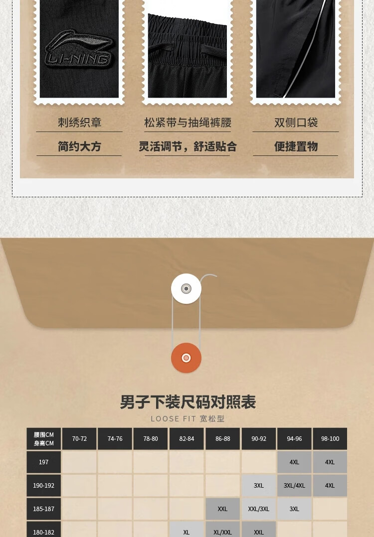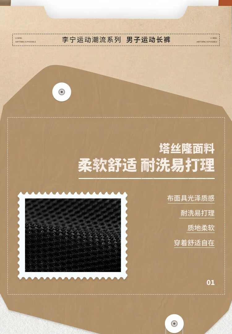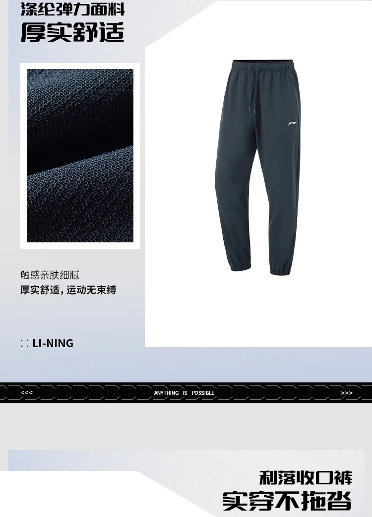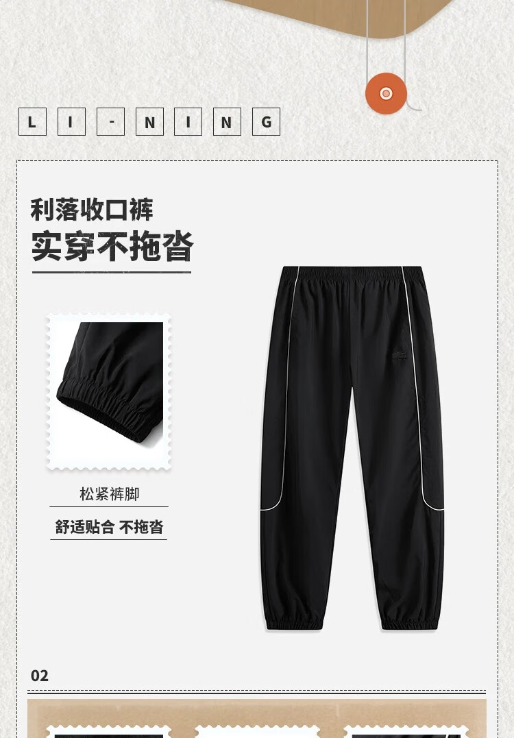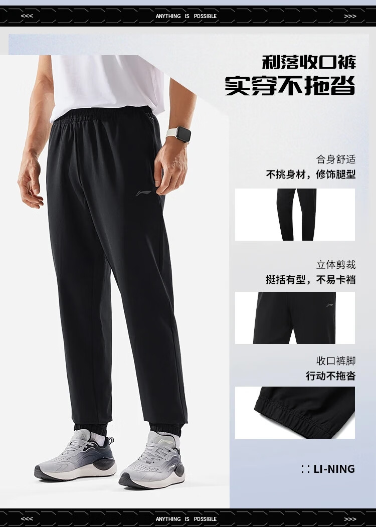 李宁束脚运动长裤男2025春季新款宽松舒适休闲时尚潮流裤子AYKV 105