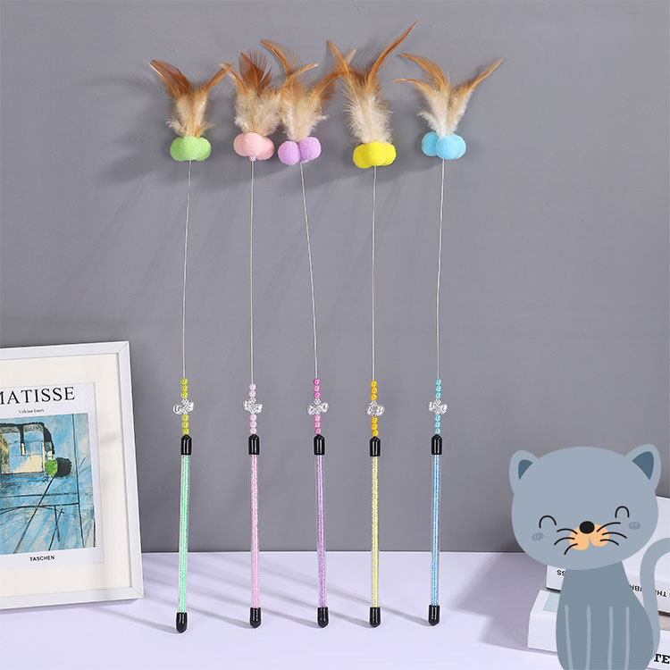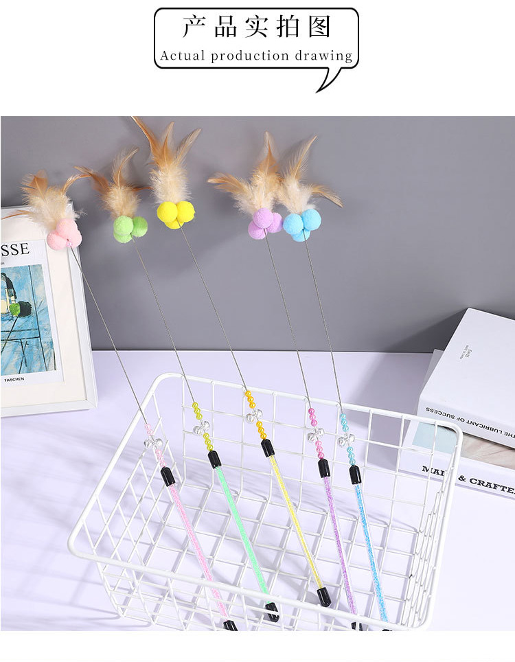 玲宠宠物猫咪逗猫棒羽毛铃铛钢丝杆互动玩具钢丝羽毛逗猫杆柔韧安全