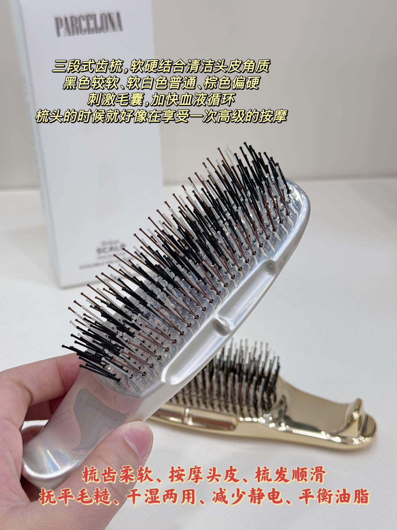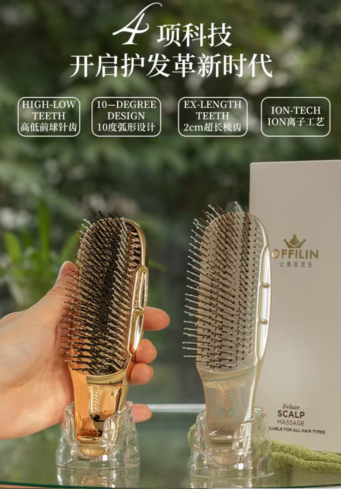 offilin防脱按摩梳 这款是真的好用,一梳即顺,干湿两用! 头发梳着梳着就蓬松起来 不管是梳造型还是打理头发干枯、毛糙、打结 干湿两用!随时随地做头皮spa! 梳头 按摩 清洁 养生 一把梳子搞定