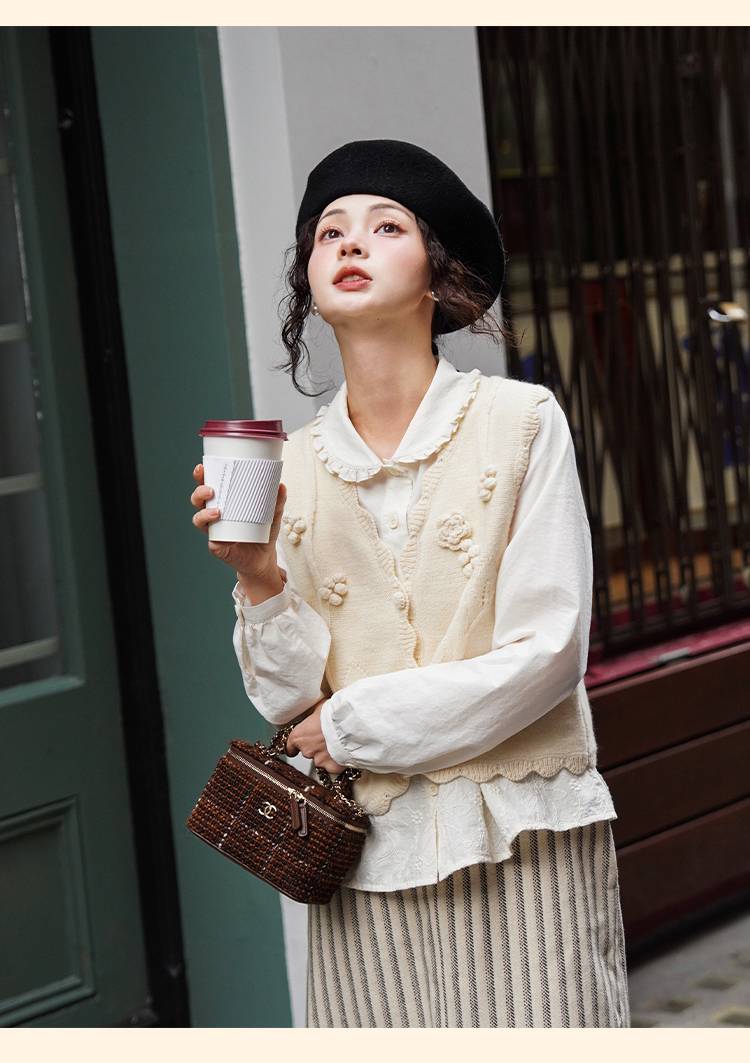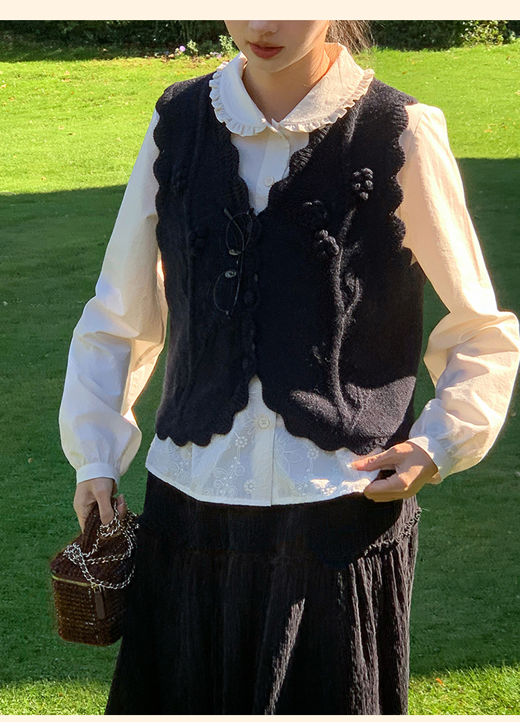 浮生八记/24D174/古典重工钩花山茶花枝蔓树叶钩针马甲