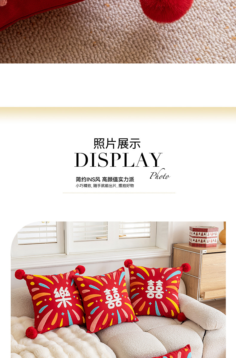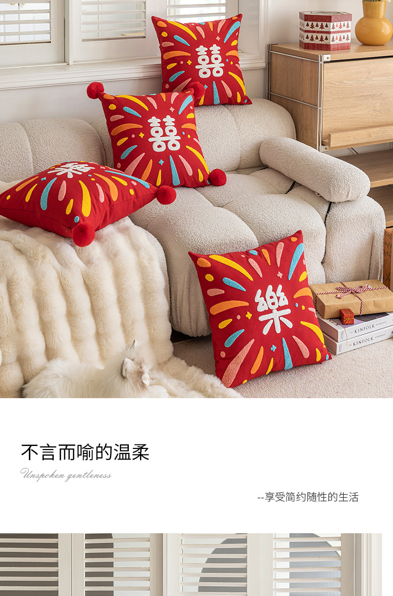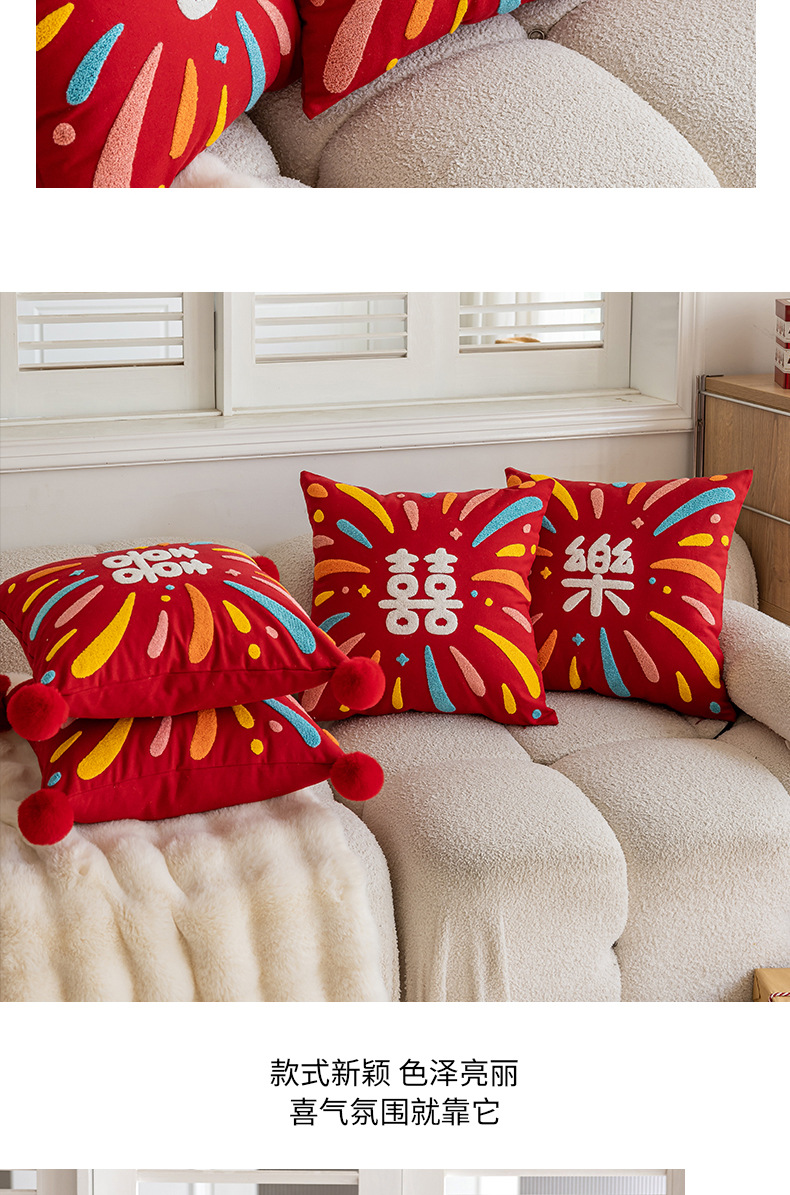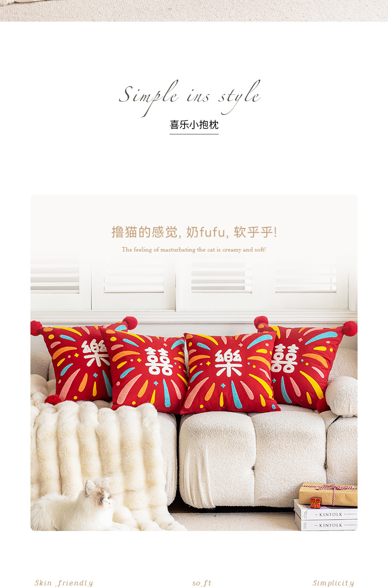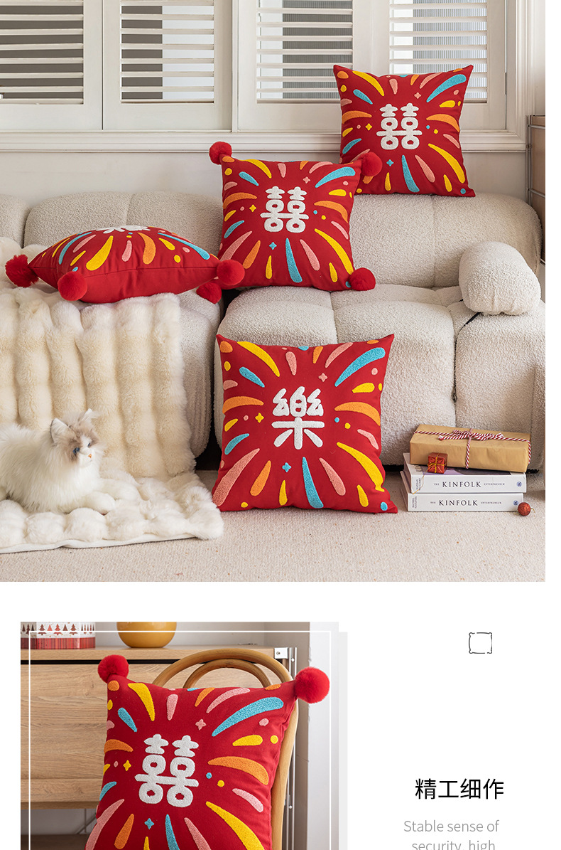 【新中式国风抱枕】喜字客厅沙发卧室枕套 新年结婚红色靠背枕套