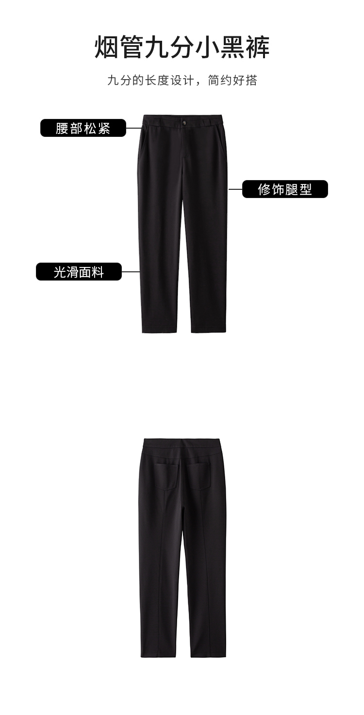 【商场同款】CNT4845 百搭夜幕黑 9分通勤烟管裤 针织罗马布面料 挺阔塑形 易打理 回弹性好