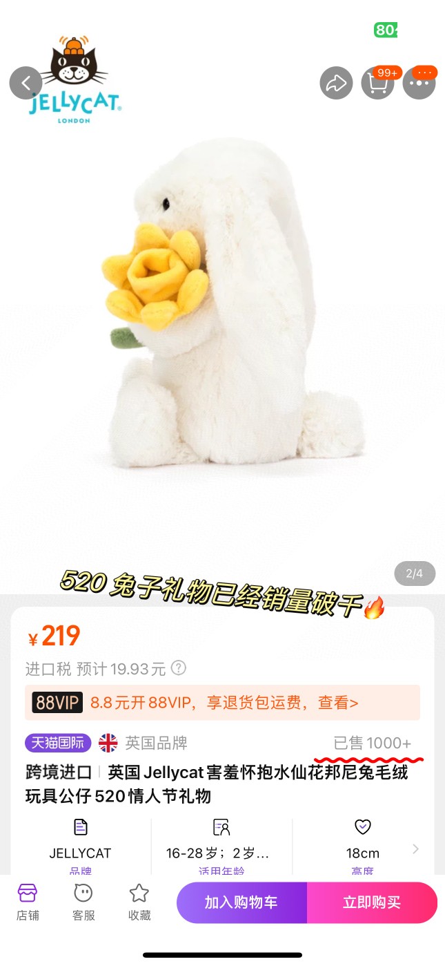jellycat新品怀抱胡萝卜和怀抱水仙花邦尼兔六一礼盒