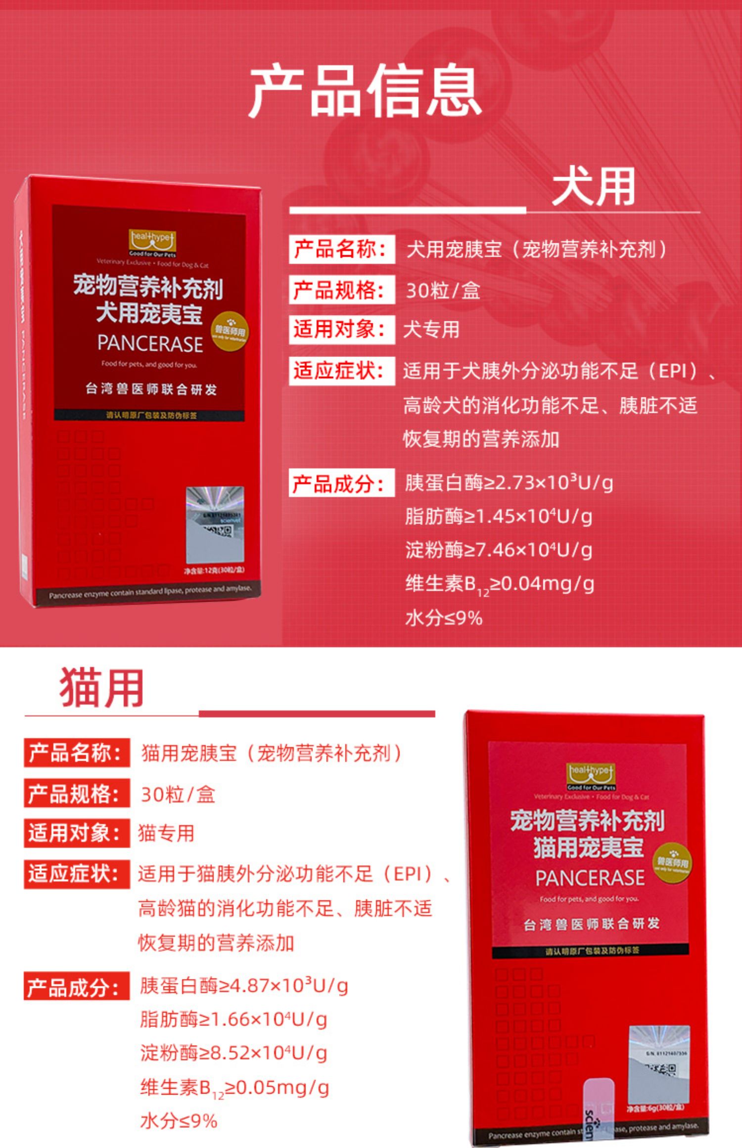 宠物营养补充剂犬猫用宠夷宝30粒(台湾)