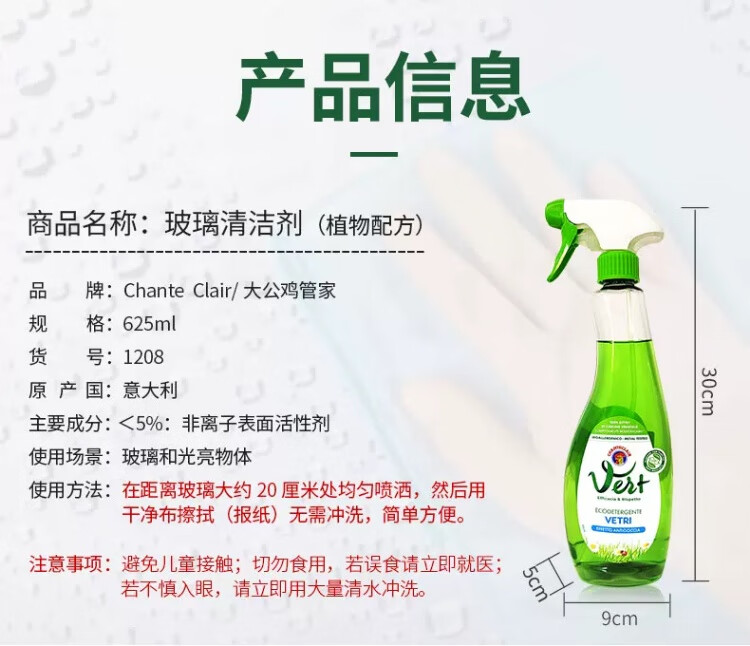 【1件包邮】大公鸡管家玻璃清洁剂625ml*2瓶/118133 一喷一擦玻璃光亮如新 新疆西藏港澳台不发货
