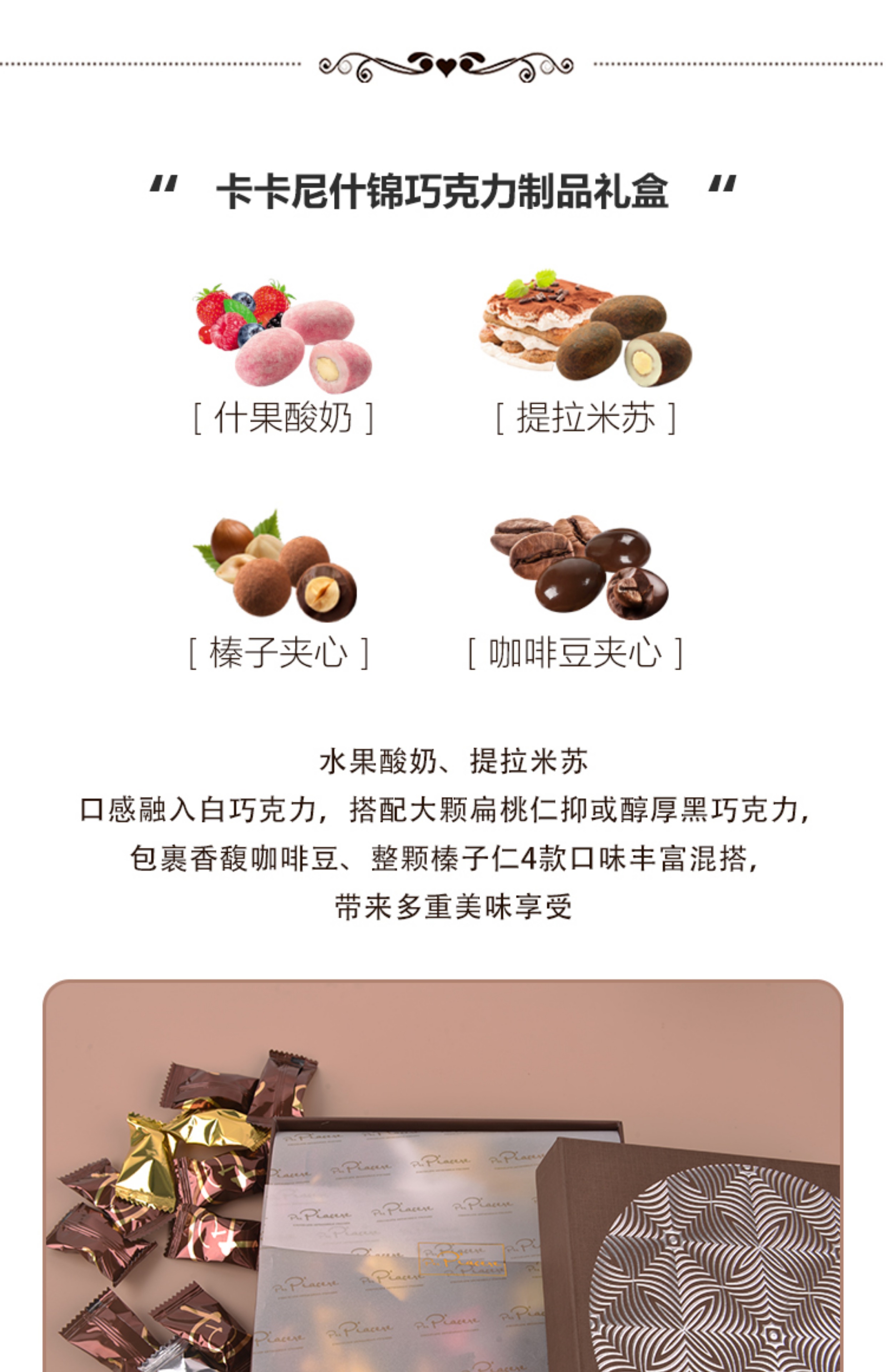 卡卡尼什锦巧克力/扁桃仁夹心提拉米苏味白巧克力制品礼盒160g 多重美味享受细腻柔滑 041614/041613