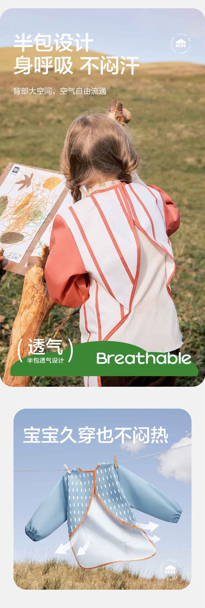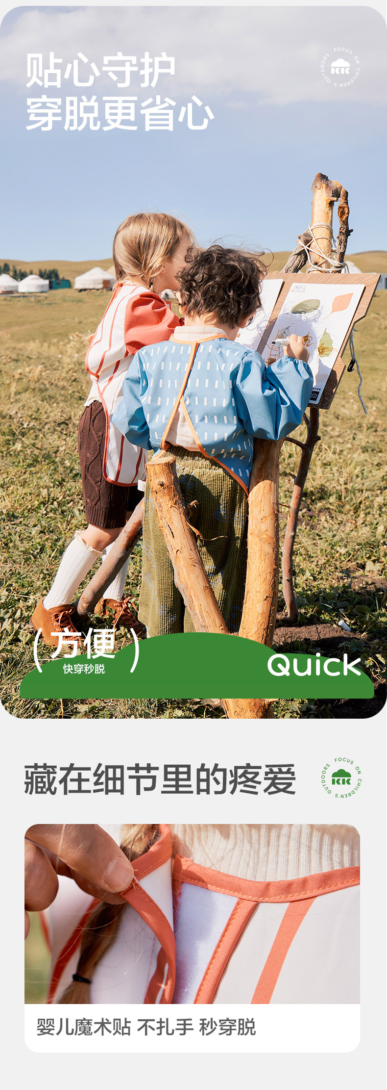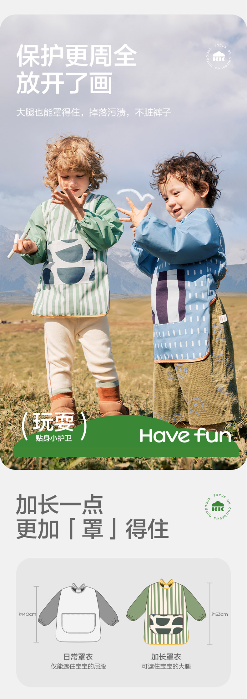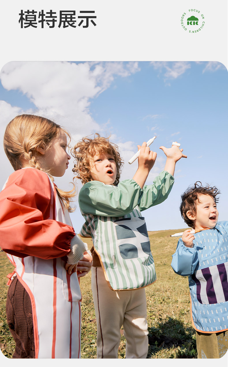 KK树儿童画画罩衣幼儿园围裙宝宝吃饭围兜防水防脏反穿美术生专用抽象艺术画画罩衣