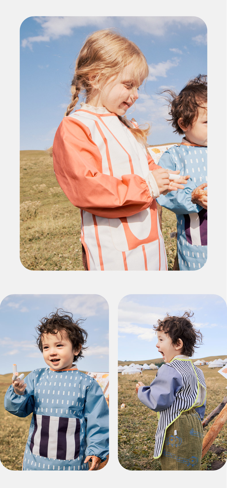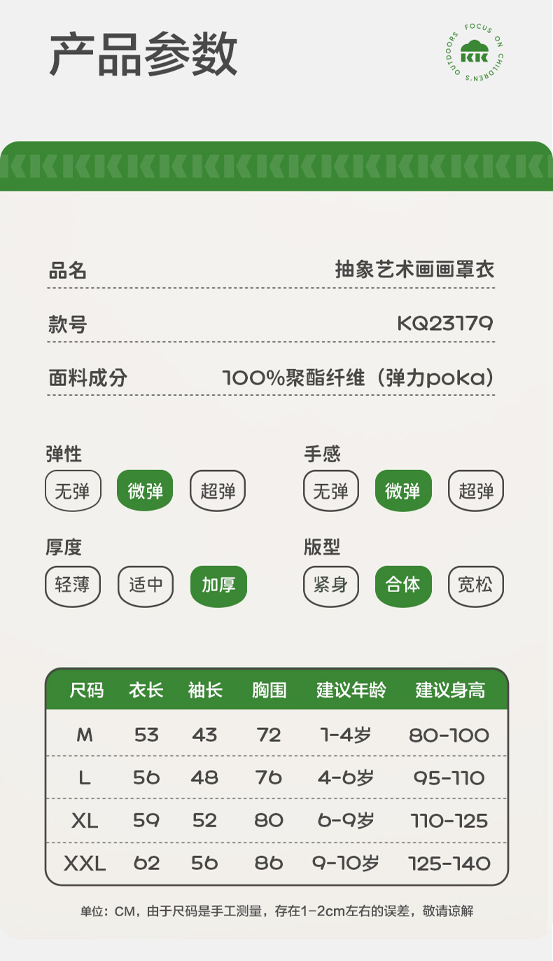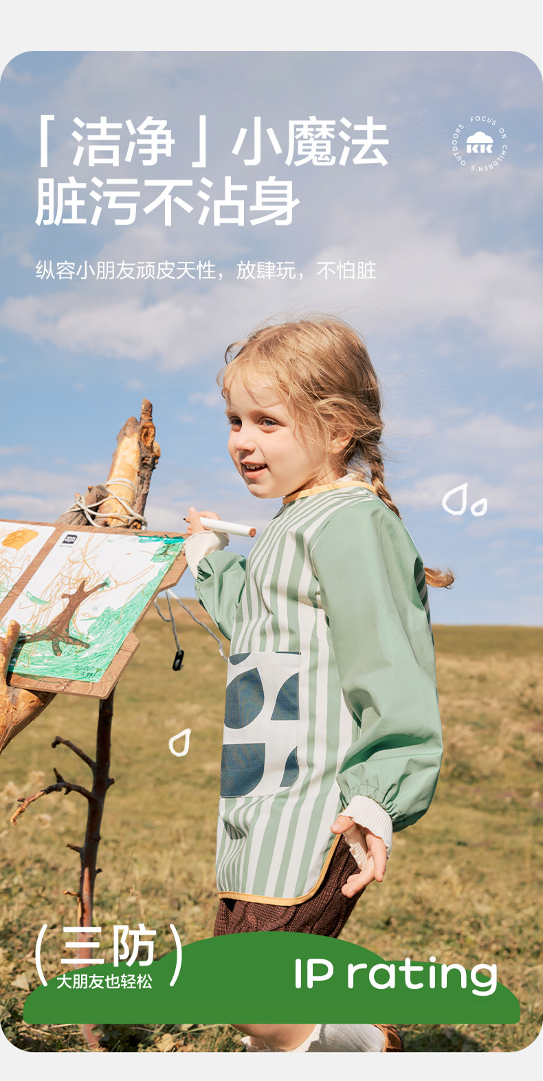 KK树儿童画画罩衣幼儿园围裙宝宝吃饭围兜防水防脏反穿美术生专用抽象艺术画画罩衣