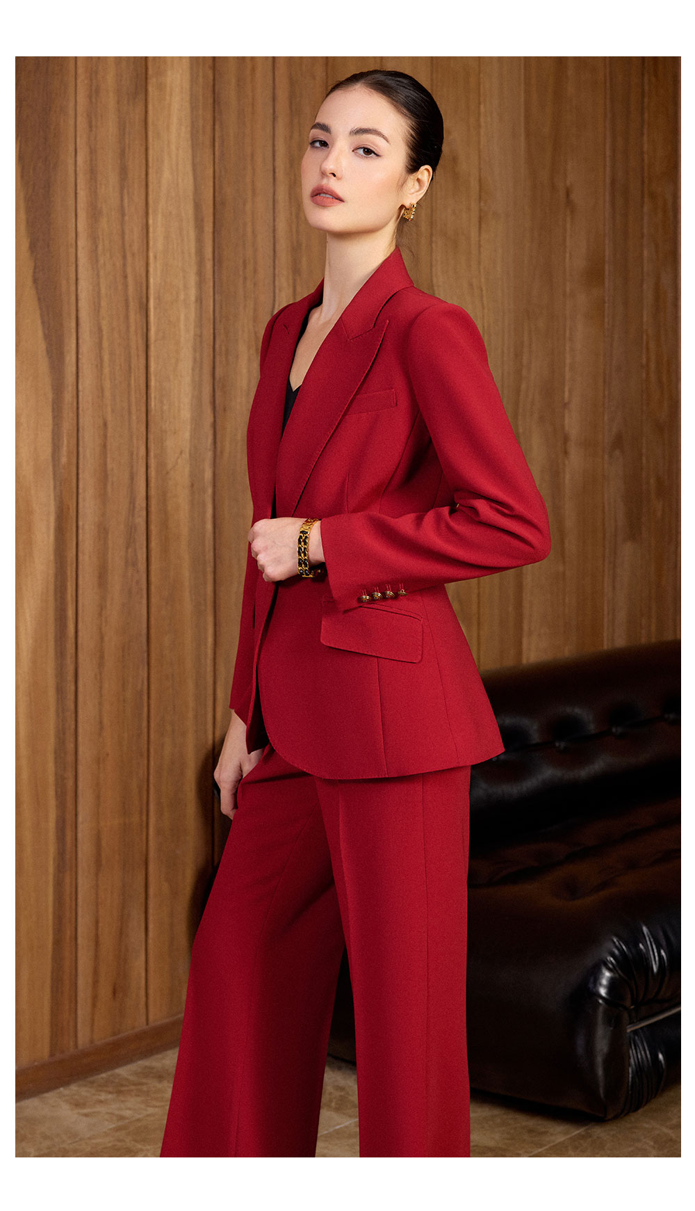 IWY/红色西装套装女职业装阔腿裤两件套商务轻熟风高智感正装CP2565