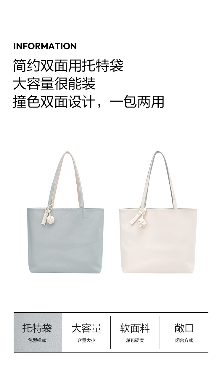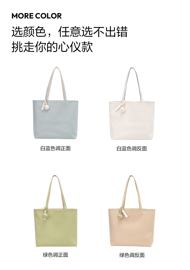 森马包包托特包女新款大容量单肩包简约通勤手提包撞色双面包